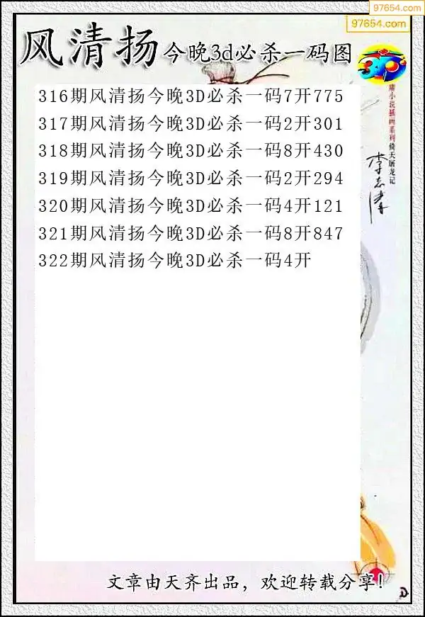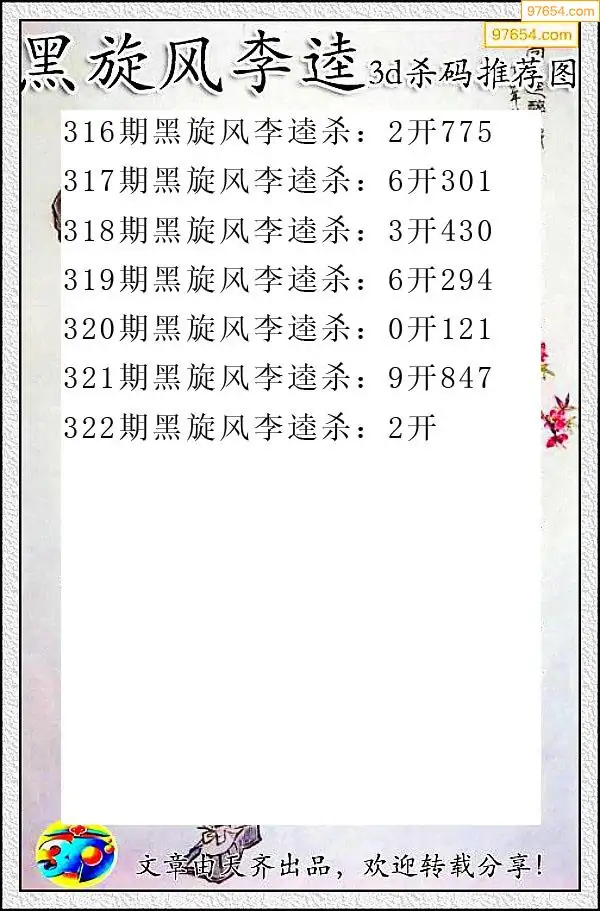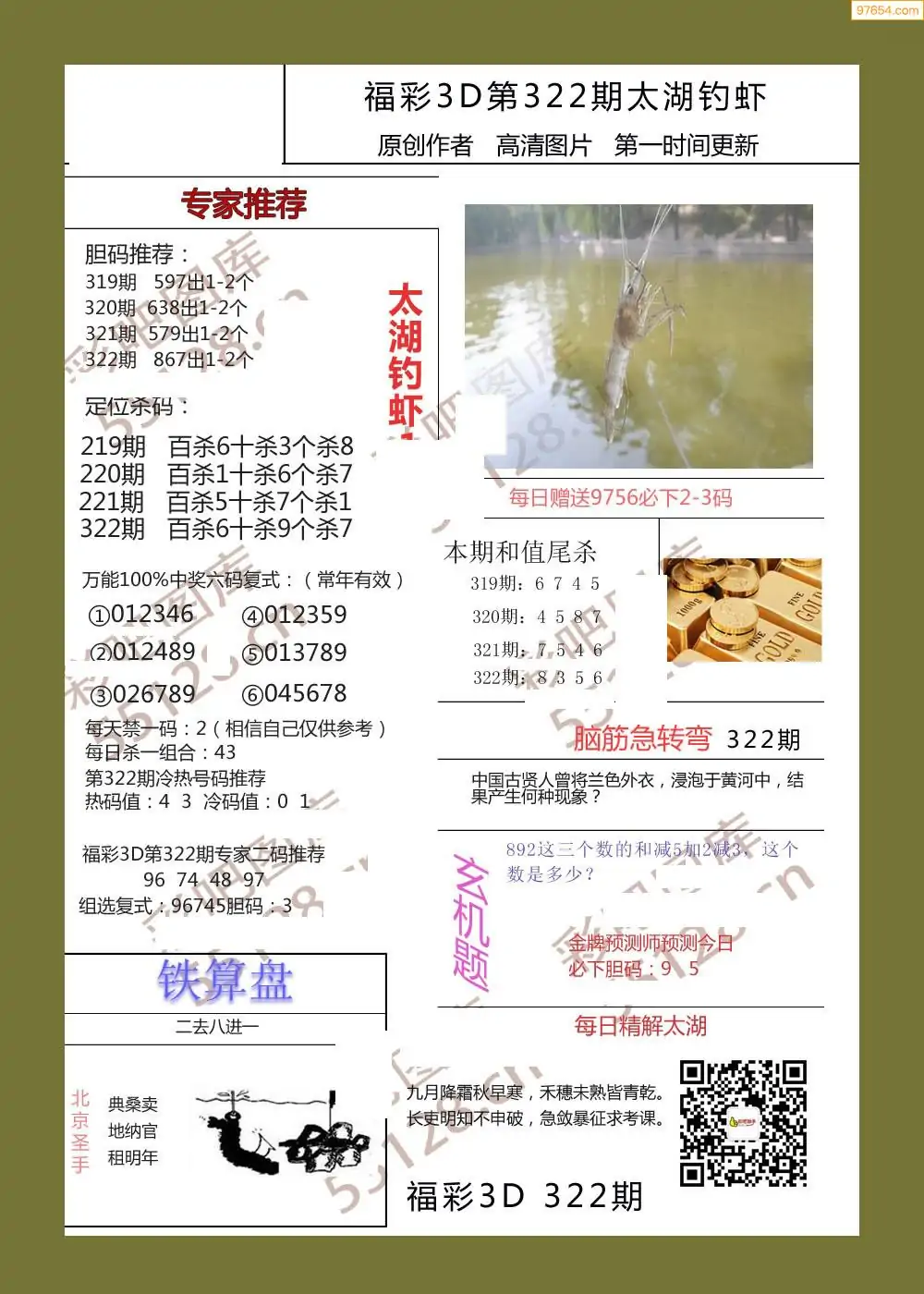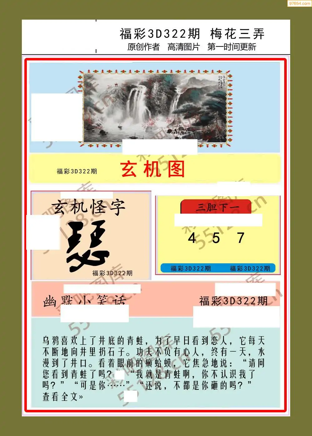 (8)25年322期今日3d各类彩报汇总