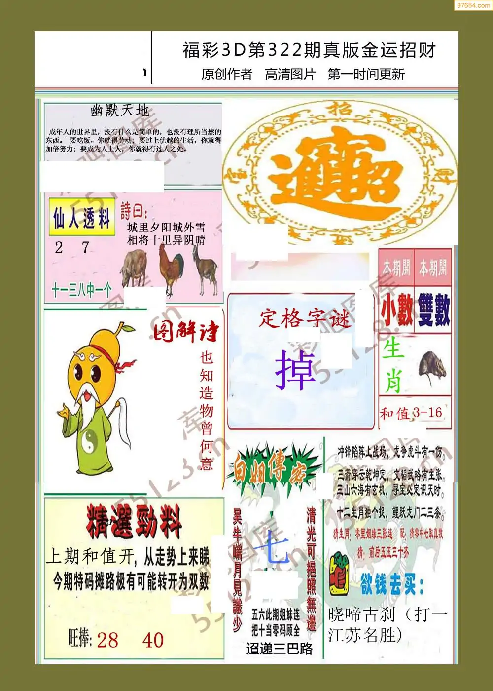 (5)25年322期福彩字谜图谜总汇