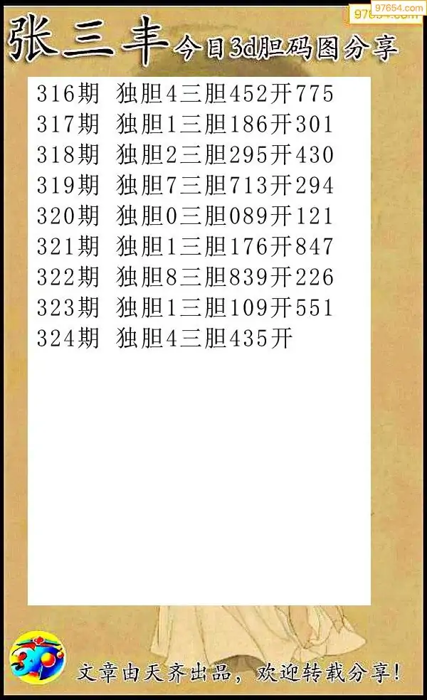 (8)25年324期今日3d各类彩报汇总