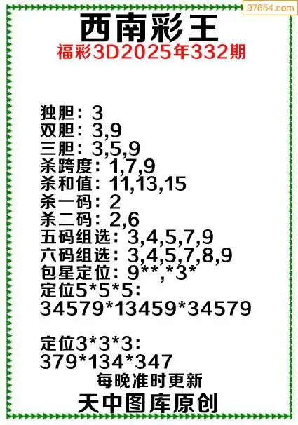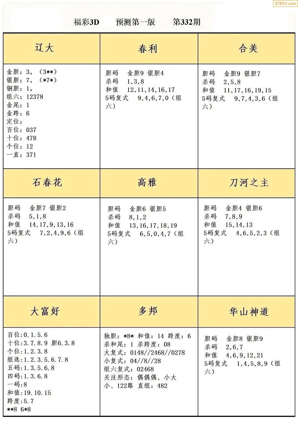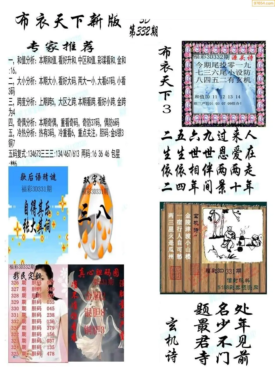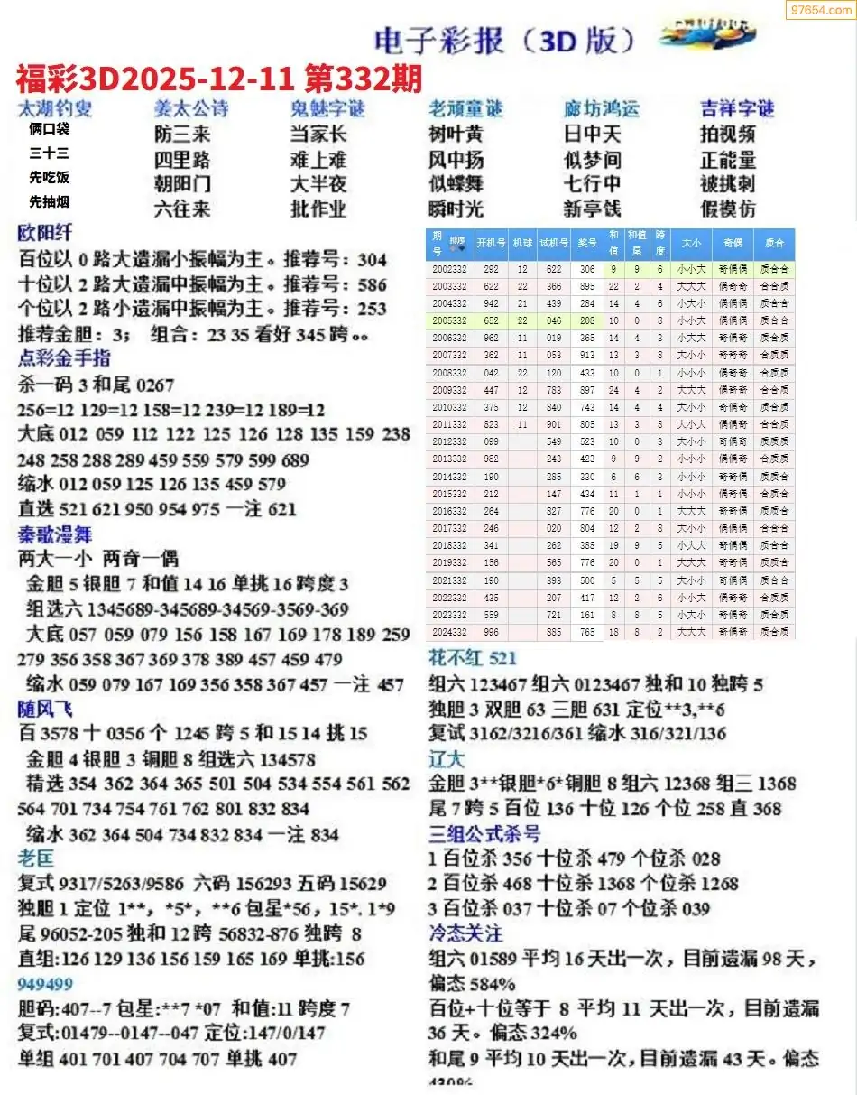 (8)25年332期今日3d各类彩报汇总