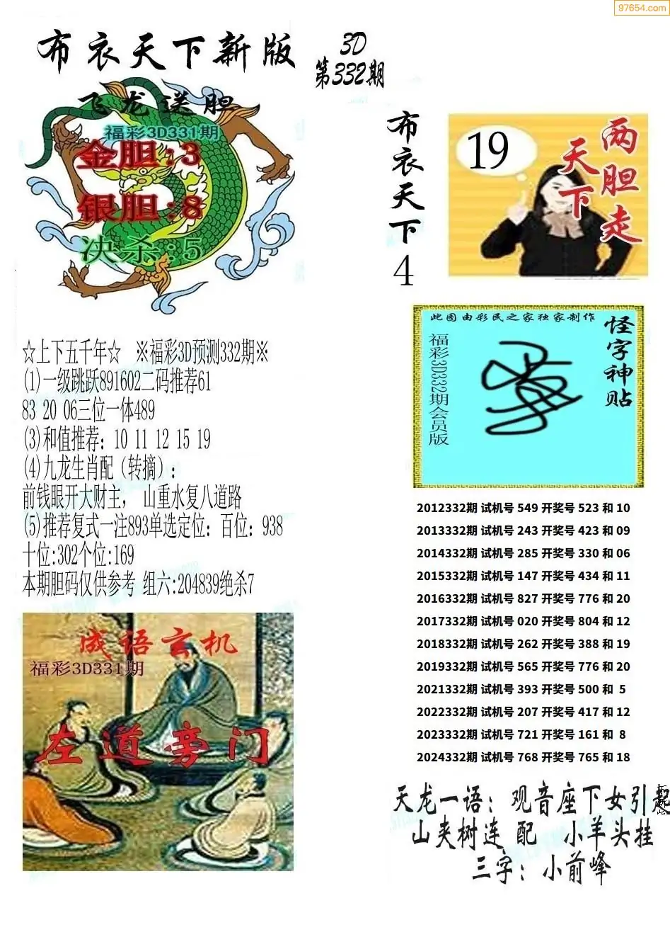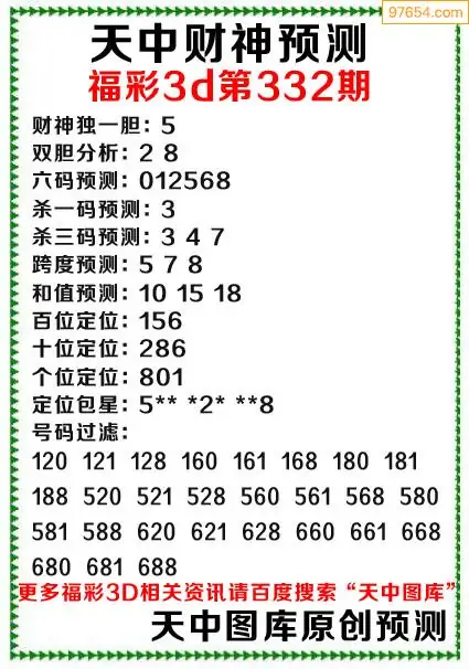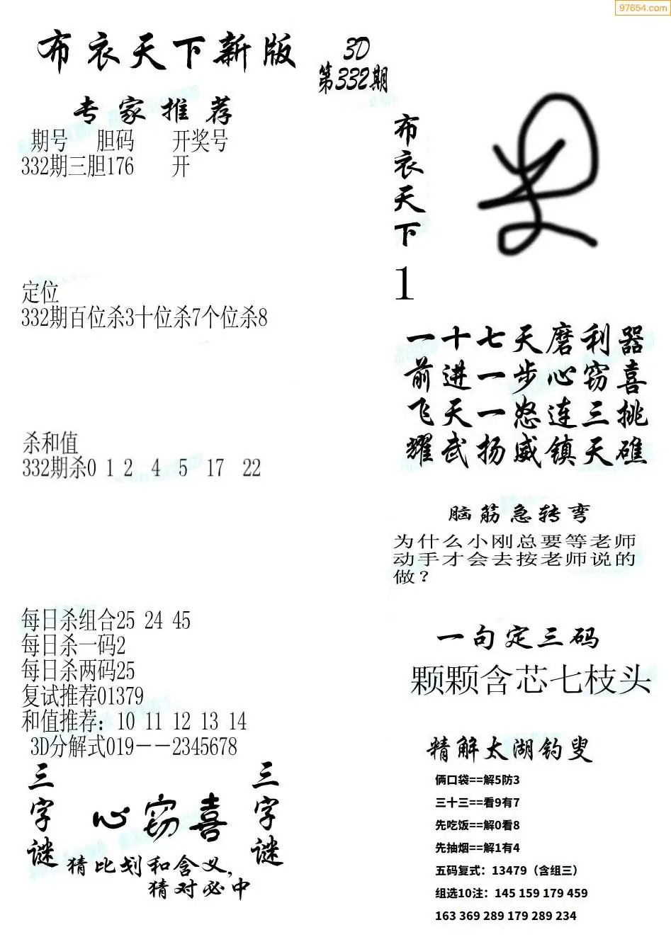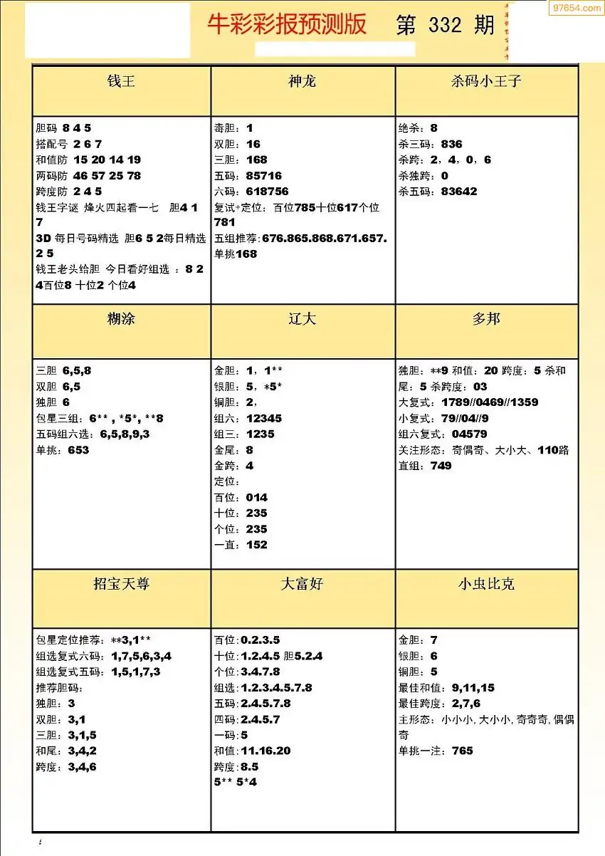 (8)25年332期今日3d各类彩报汇总