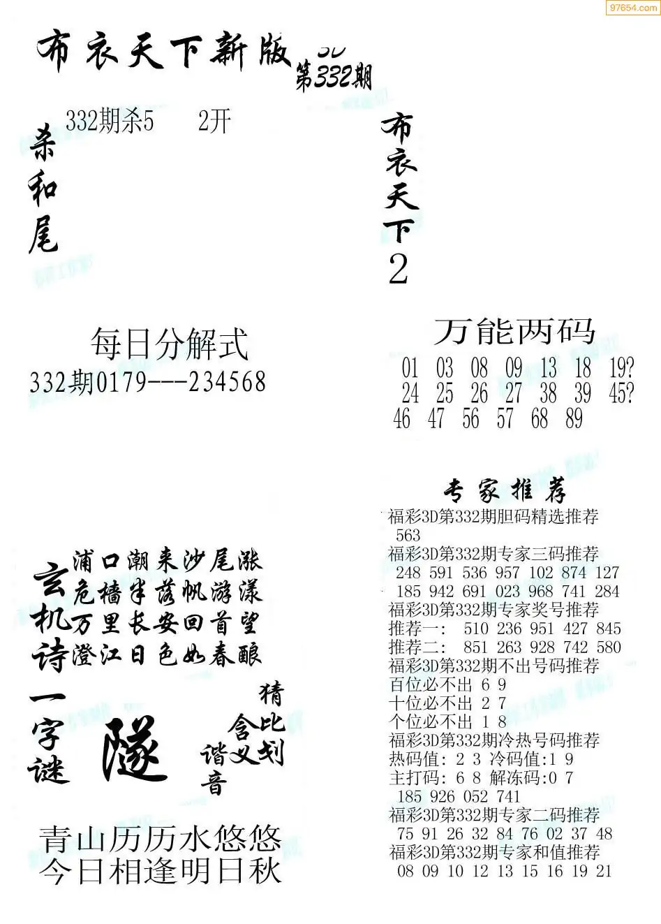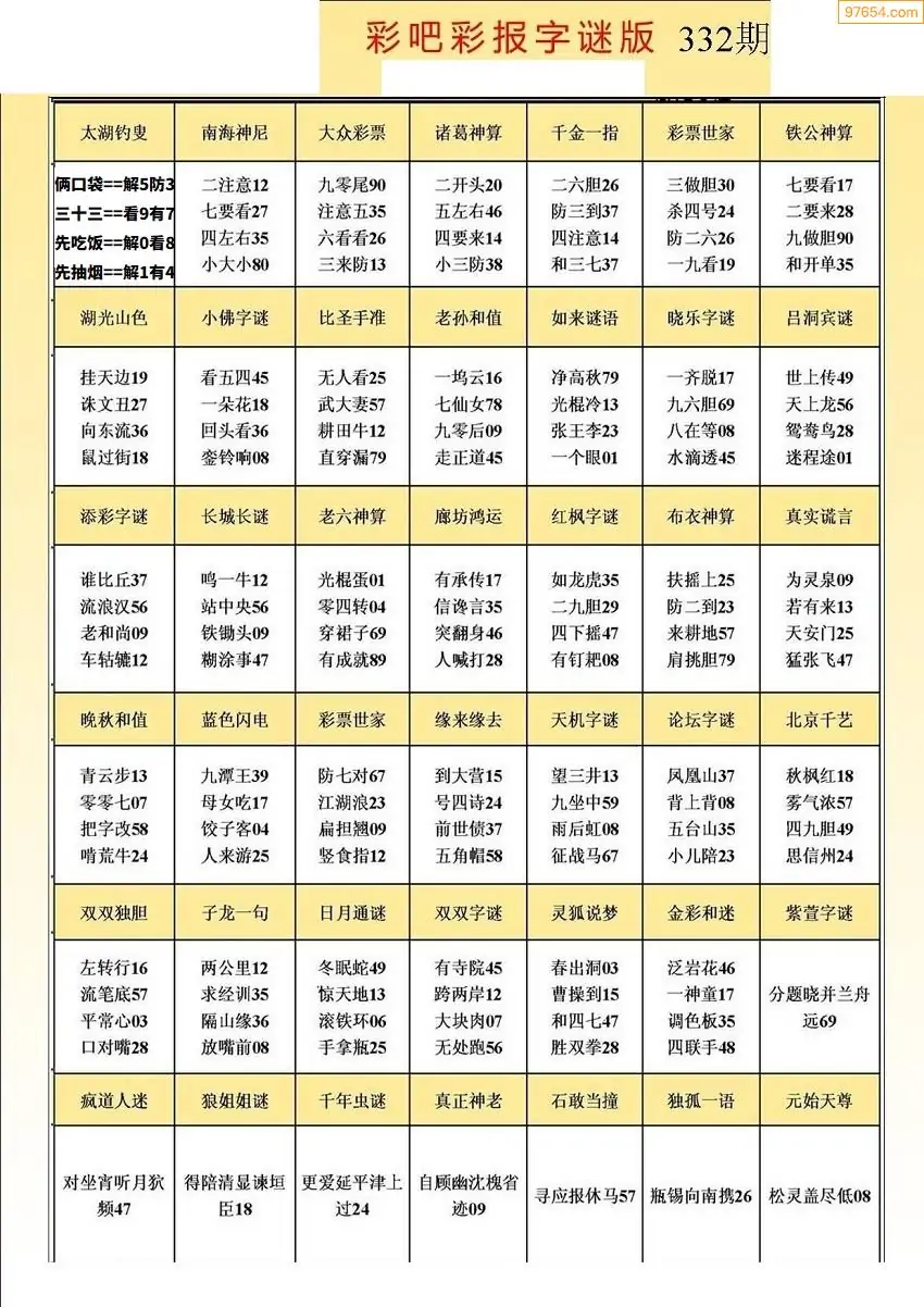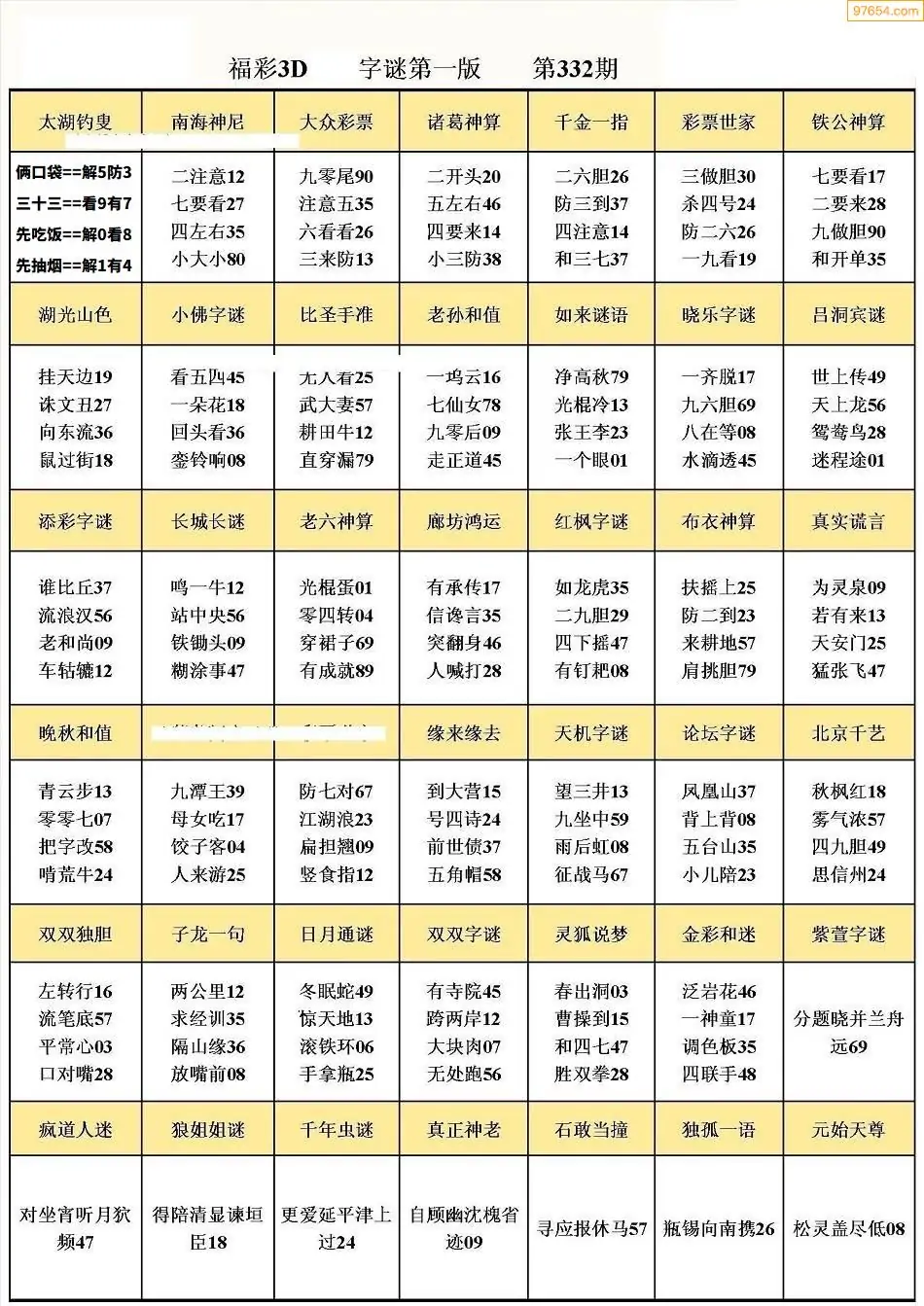 (5)25年332期福彩字谜图谜总汇
