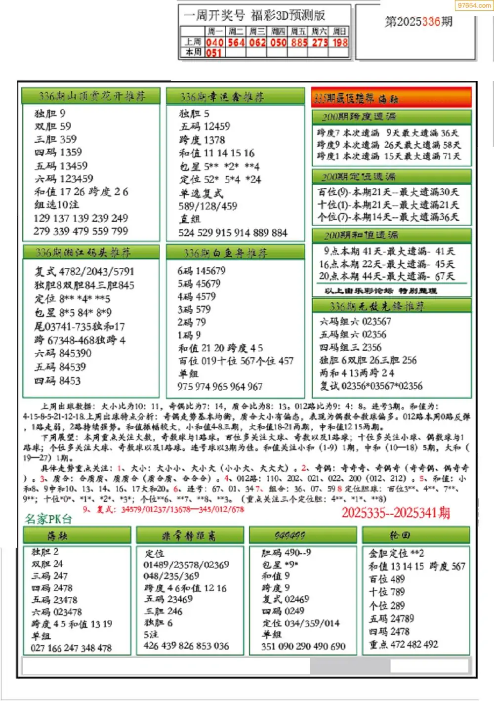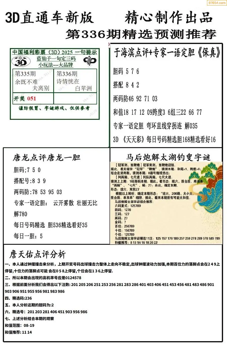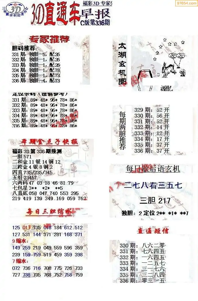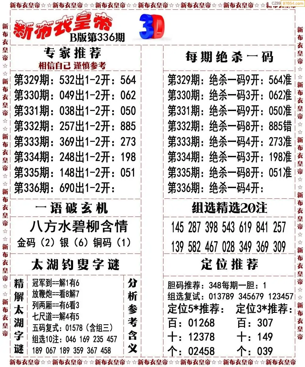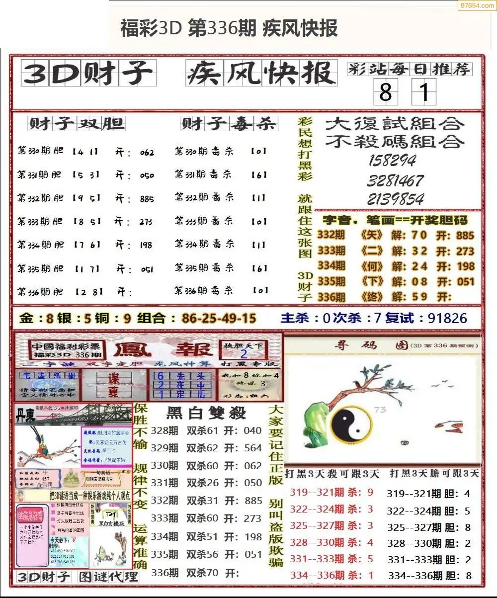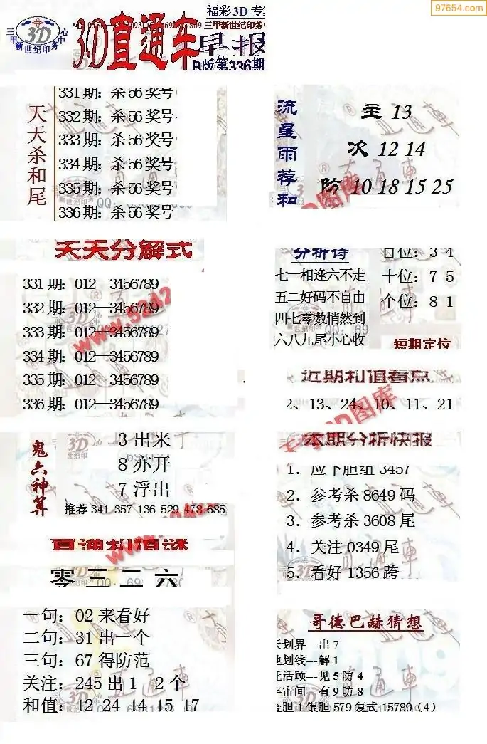 (8)25年337期今日3d各类彩报汇总