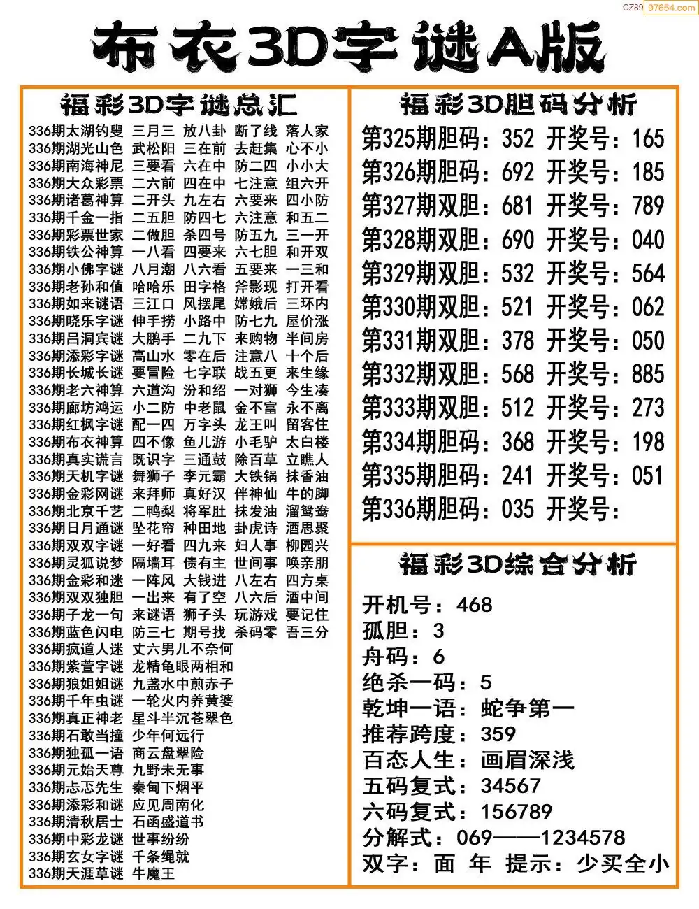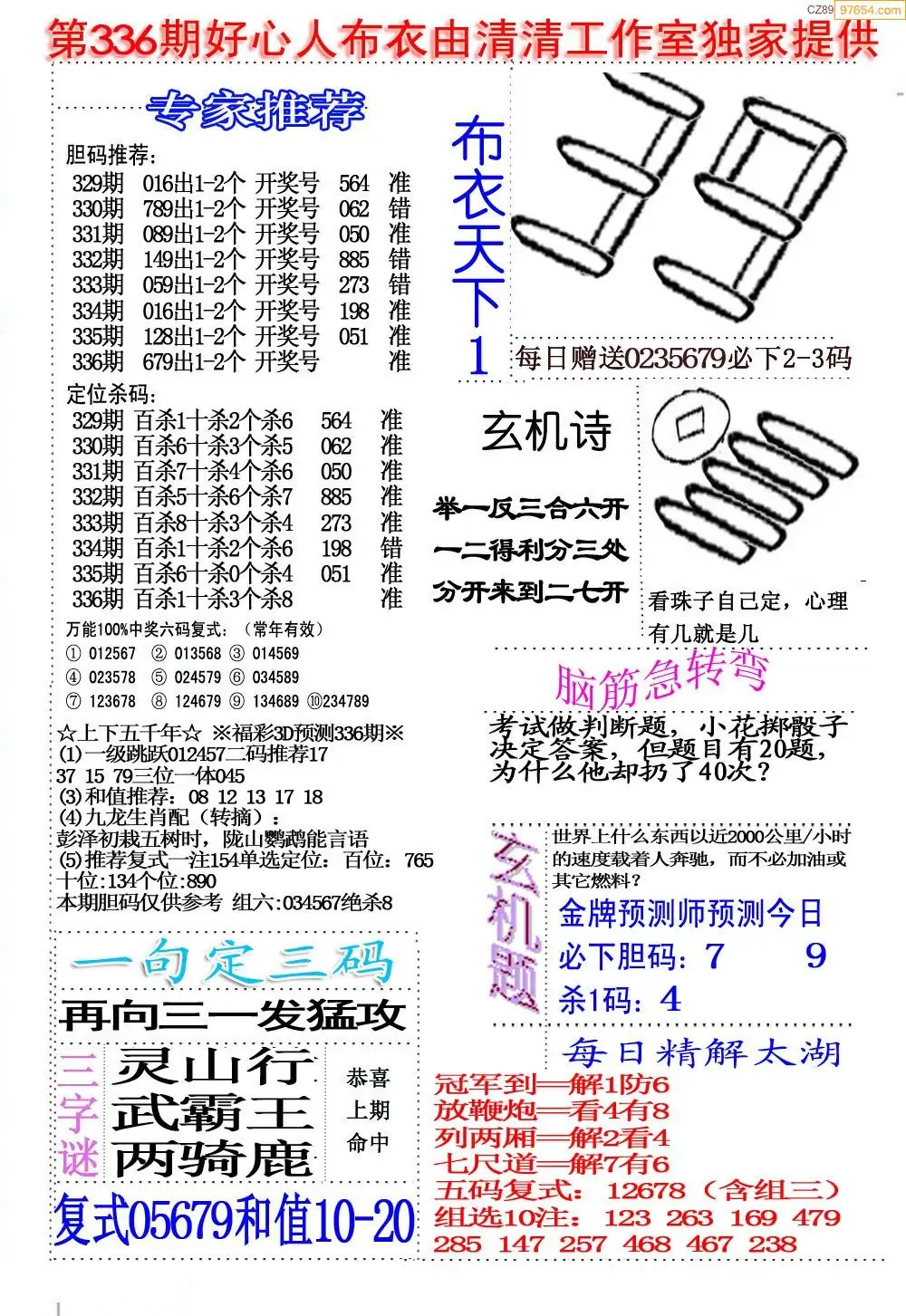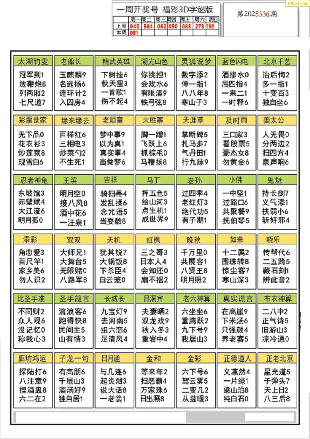(5)25年337期福彩字谜图谜总汇