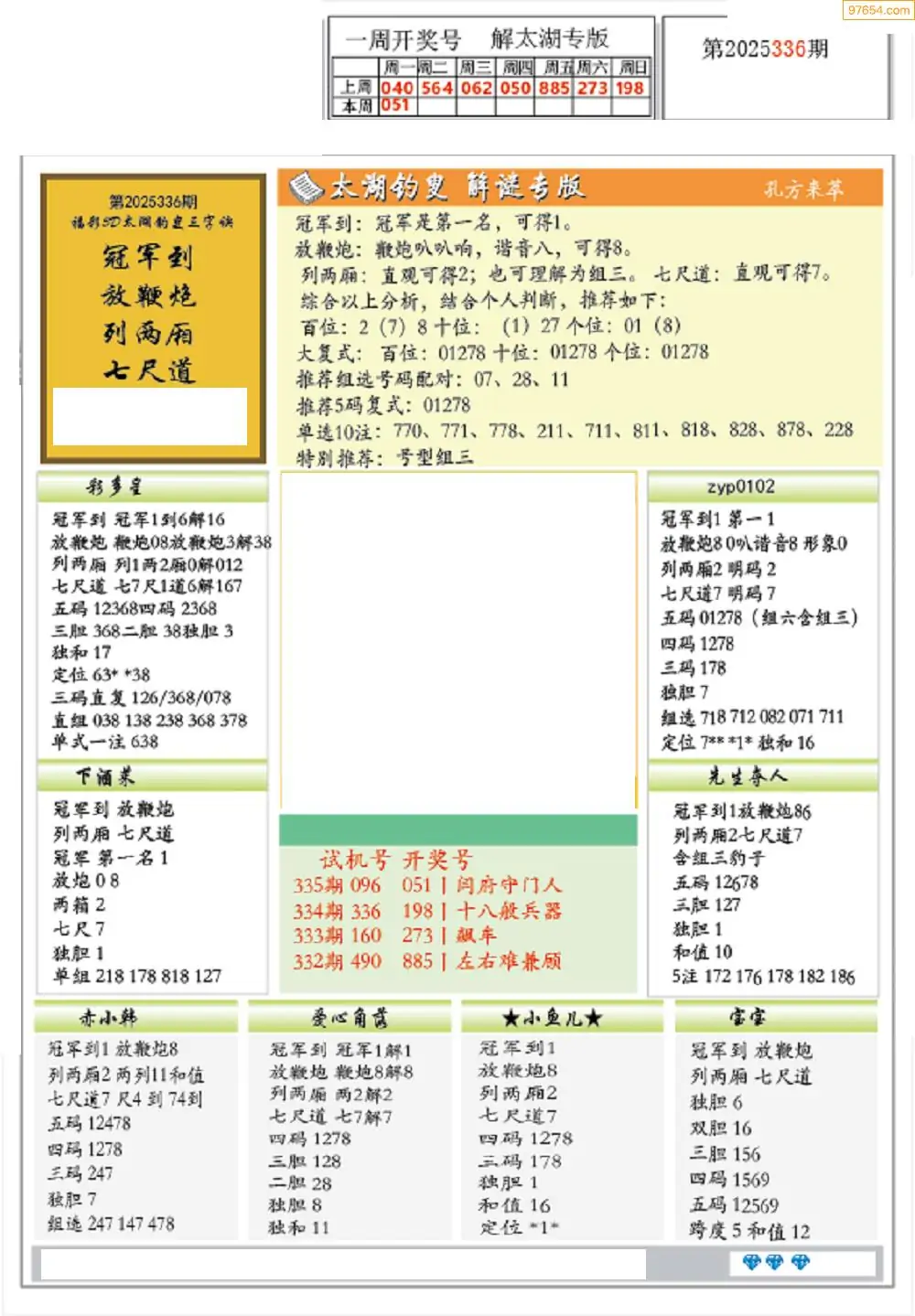 (7)25336期3D太湖图库图谜汇总
