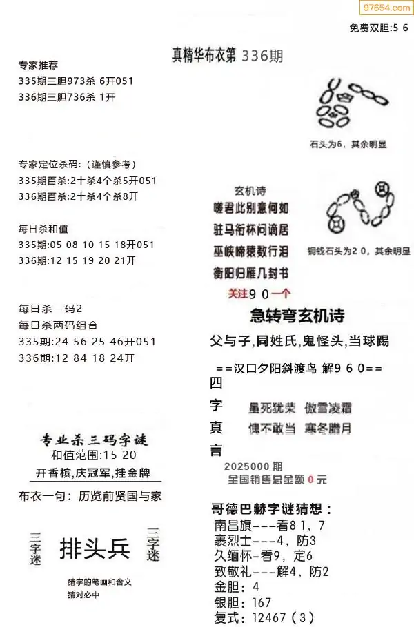 今晚免费独胆五码