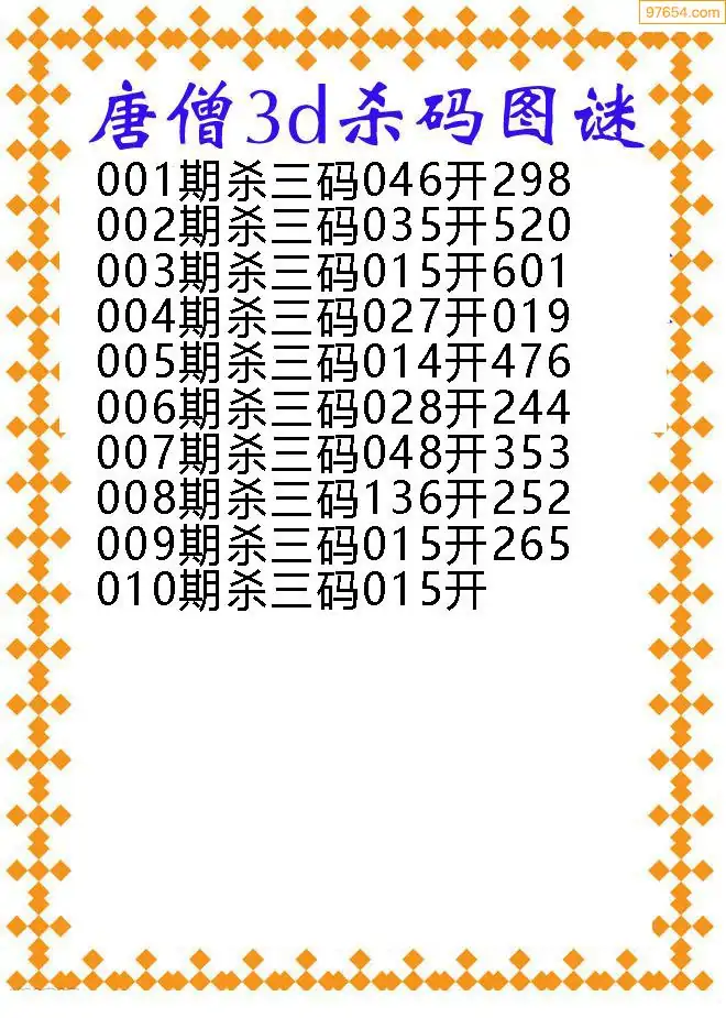(9)26年010期当期全站杀号定胆图