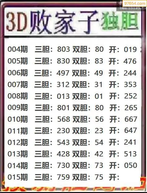 (8)26年015期今日3d各类彩报汇总