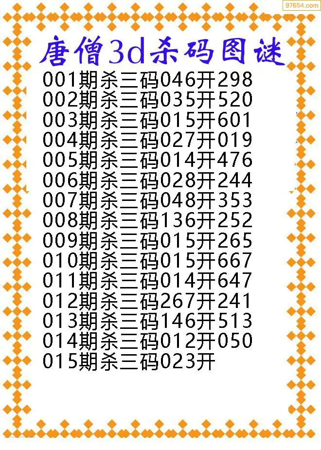 (9)26年015期当期全站杀号定胆图