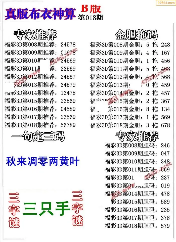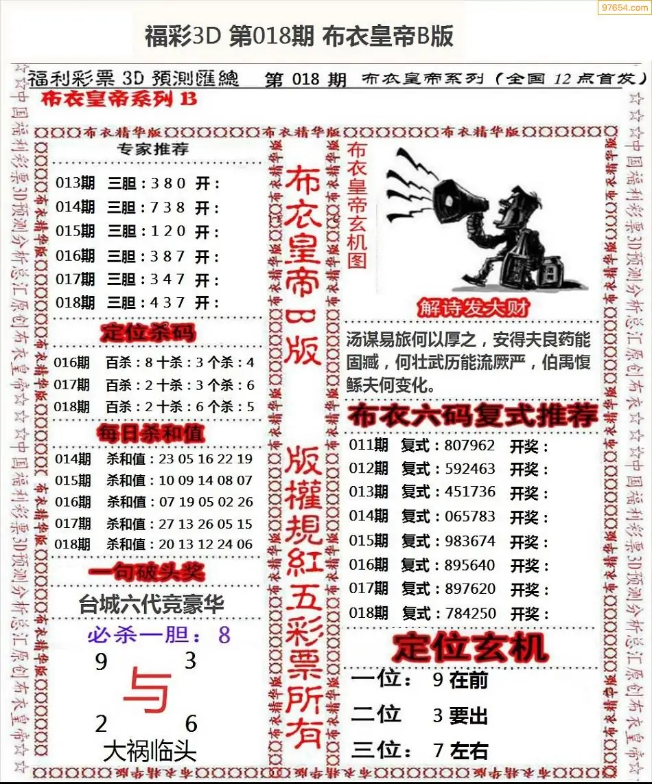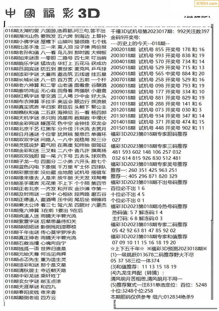 (3)2026018期3D预测总汇全图_福彩3d图谜字谜总汇