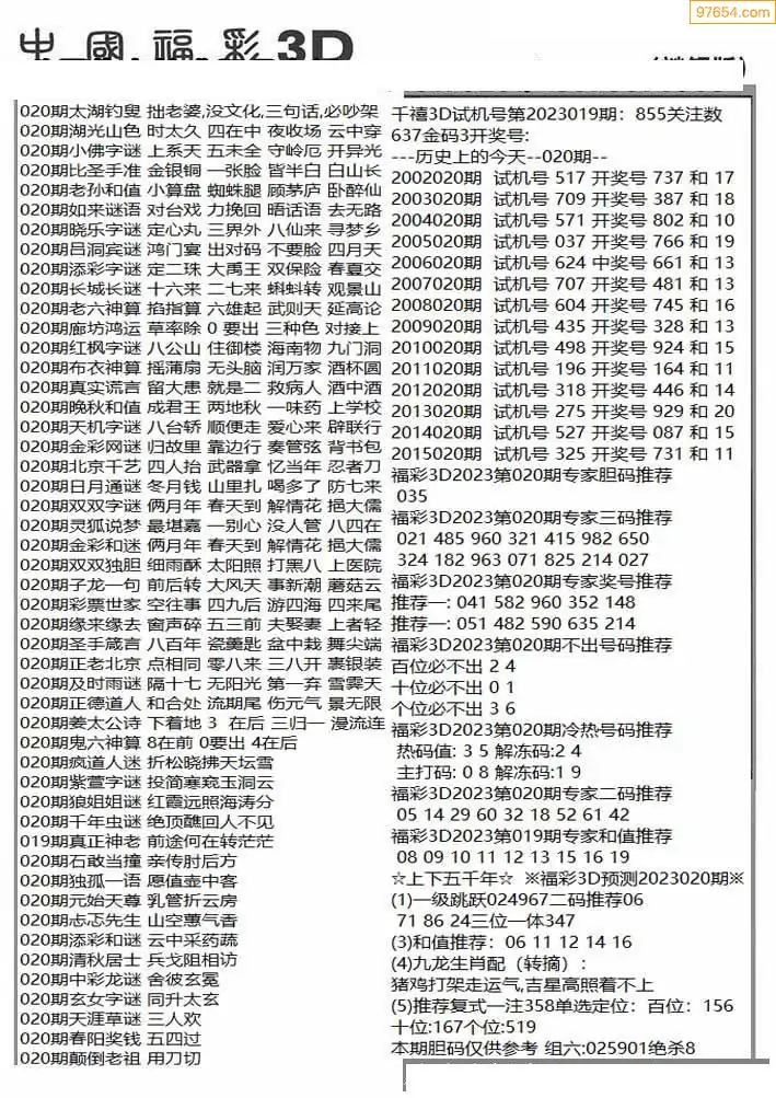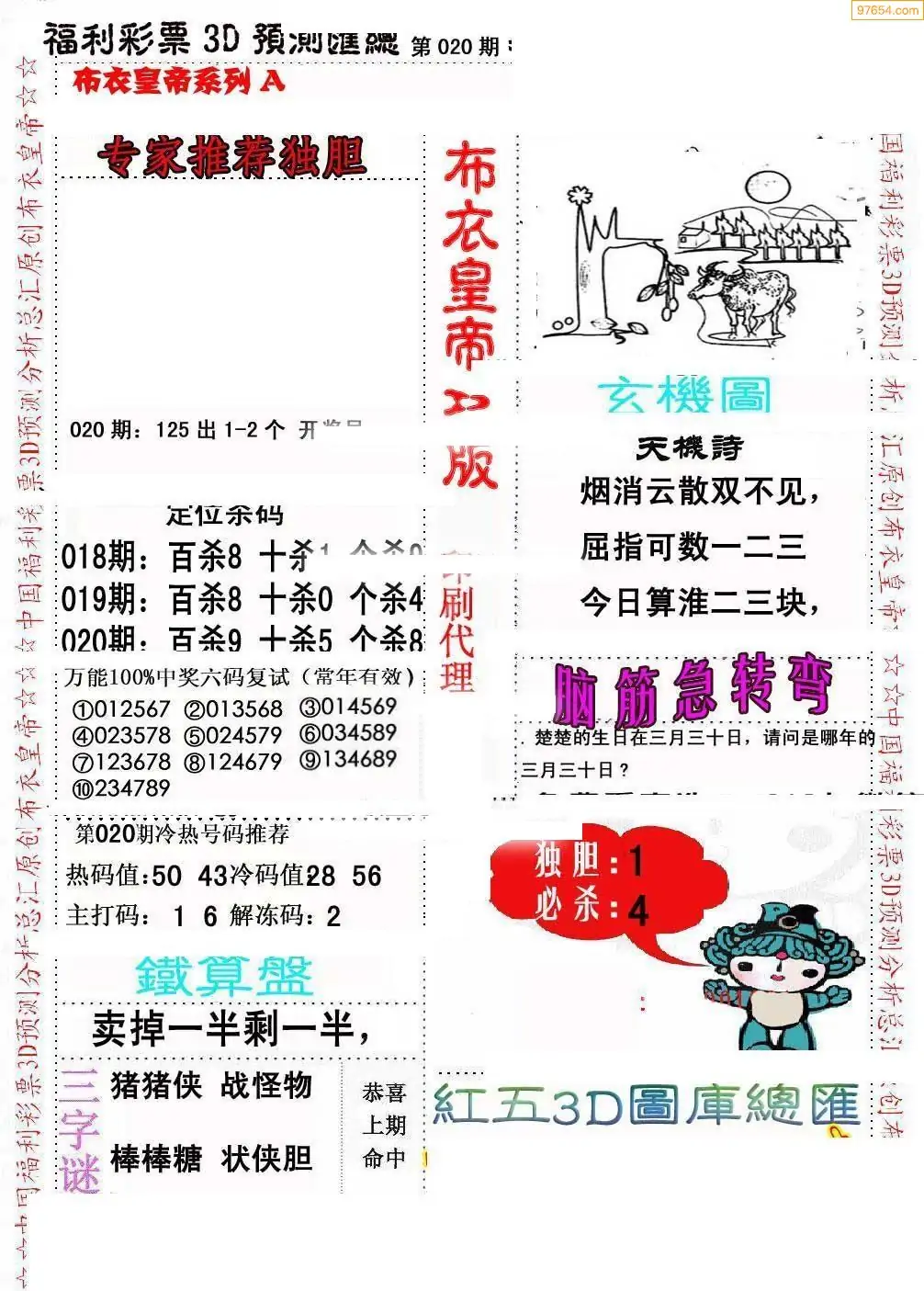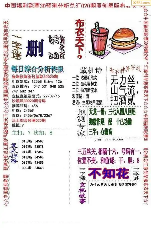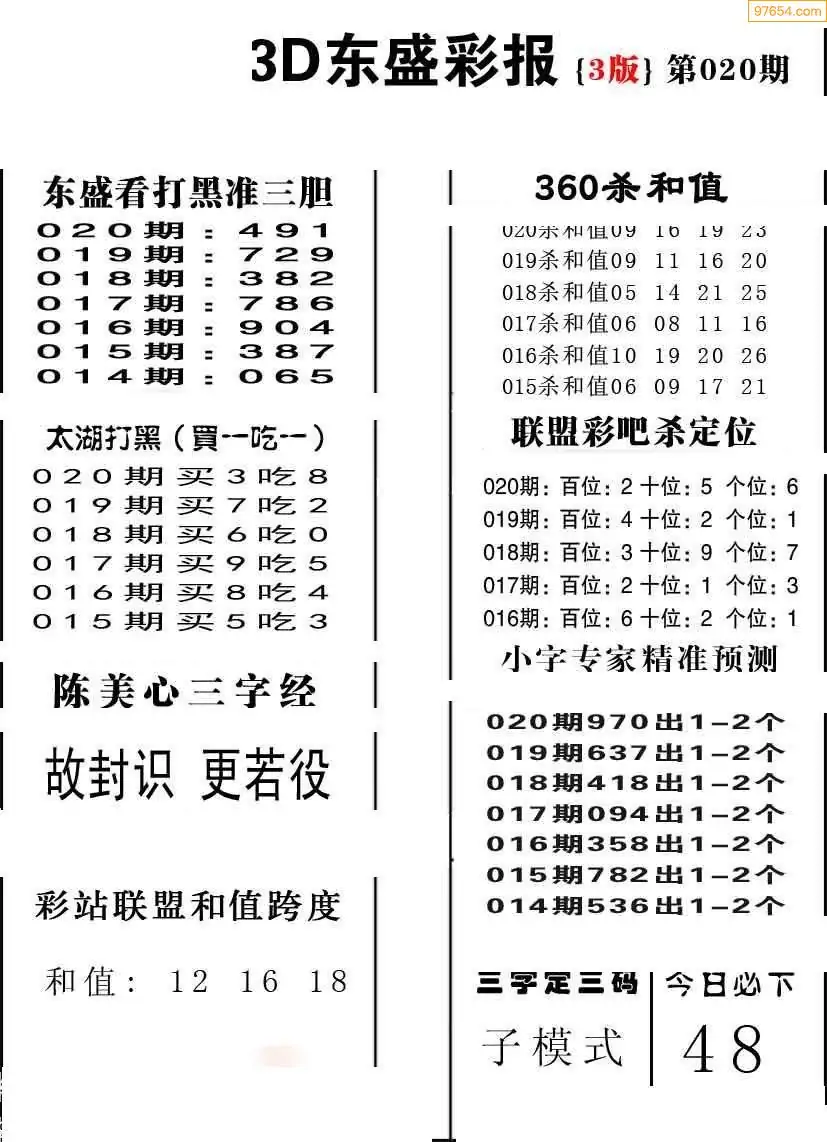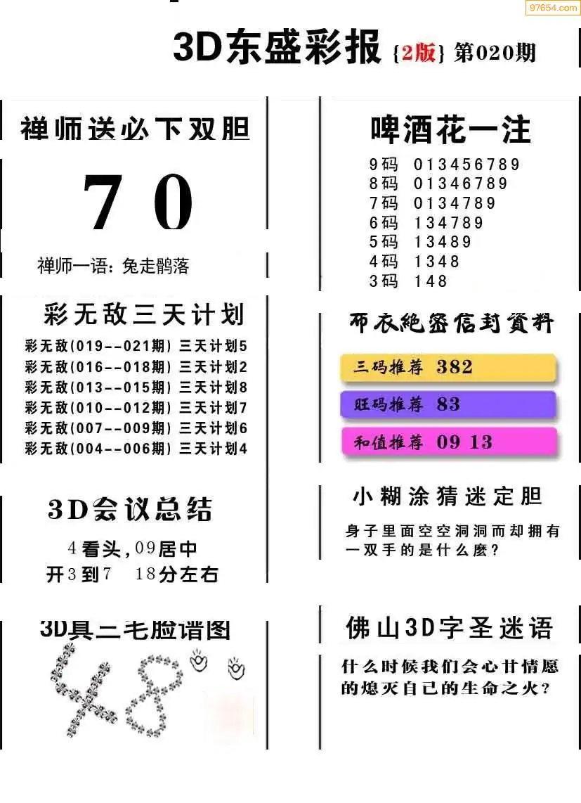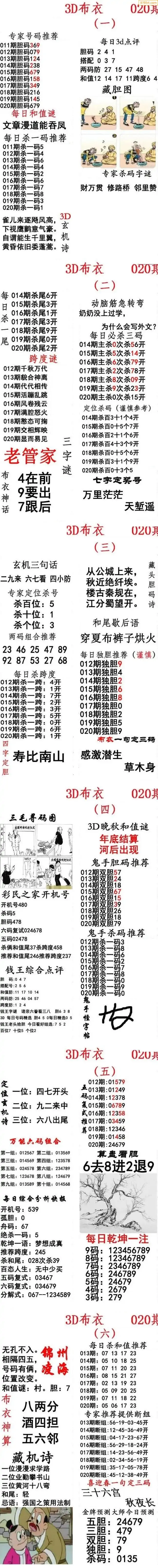 (8)26年020期今日3d各类彩报汇总