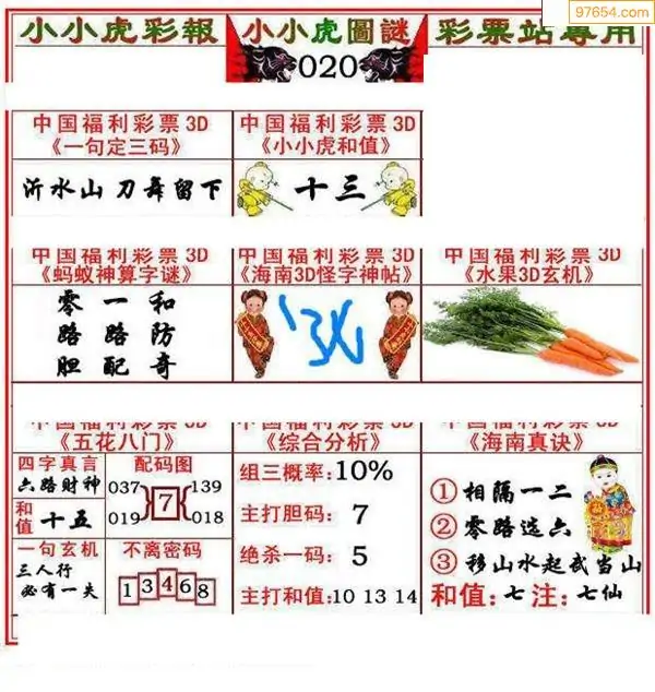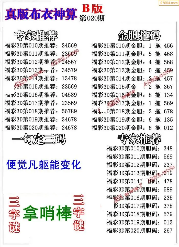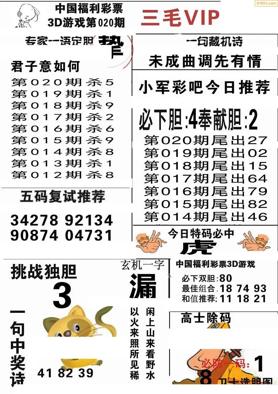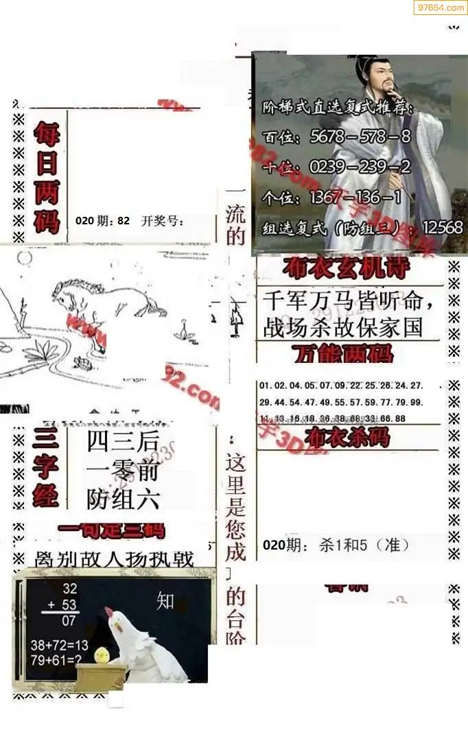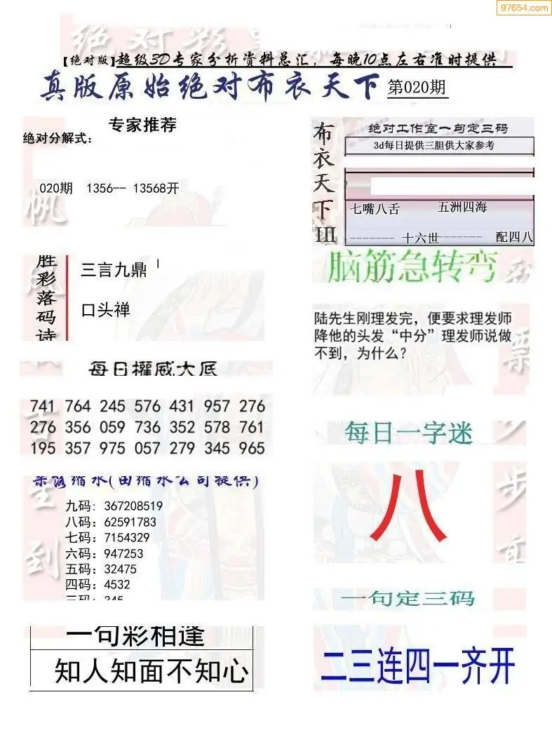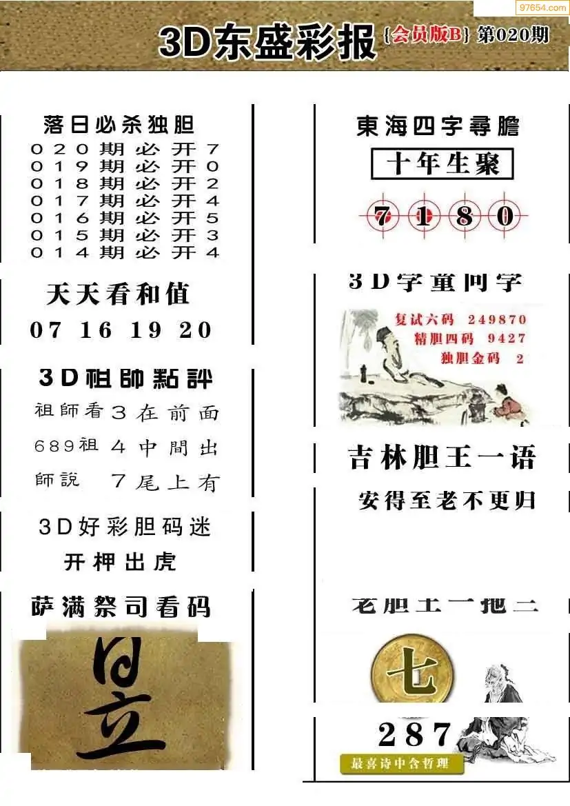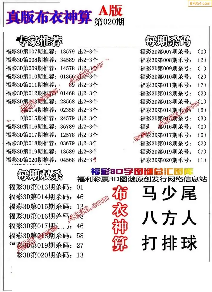 (8)26年020期今日3d各类彩报汇总