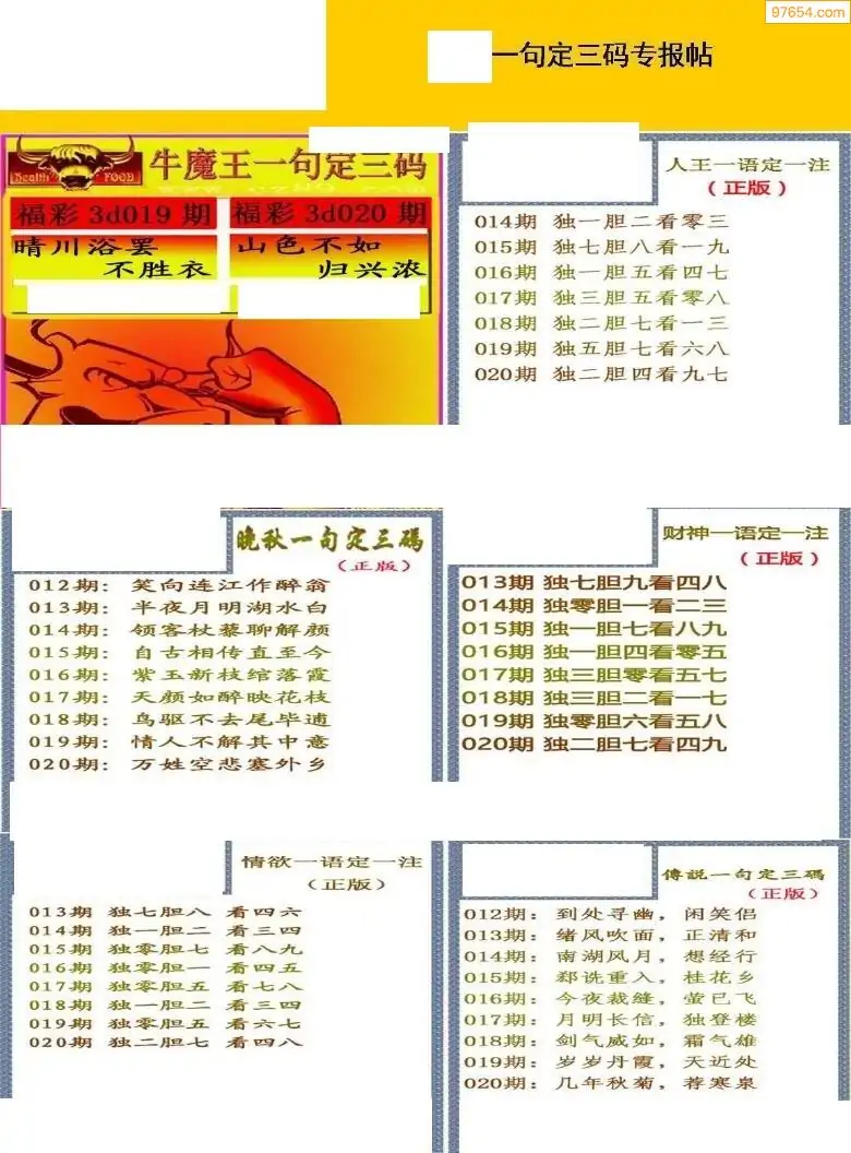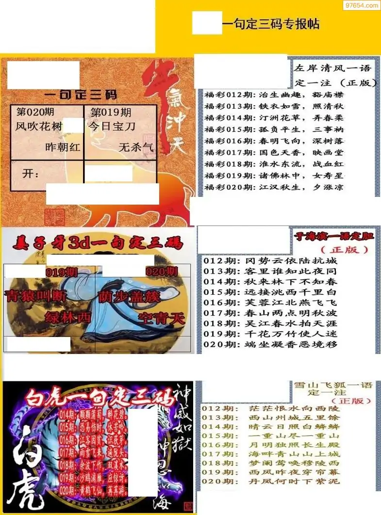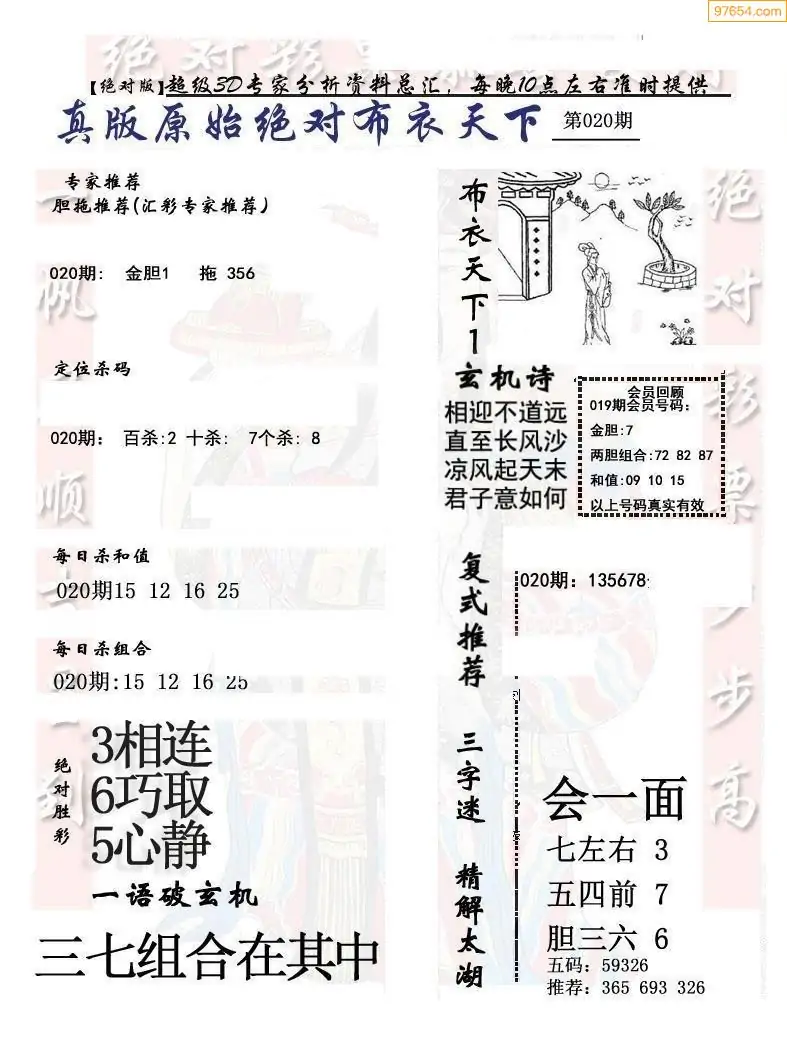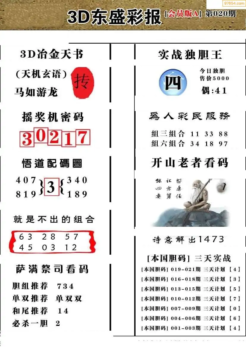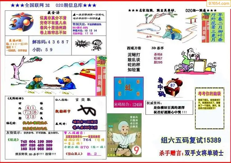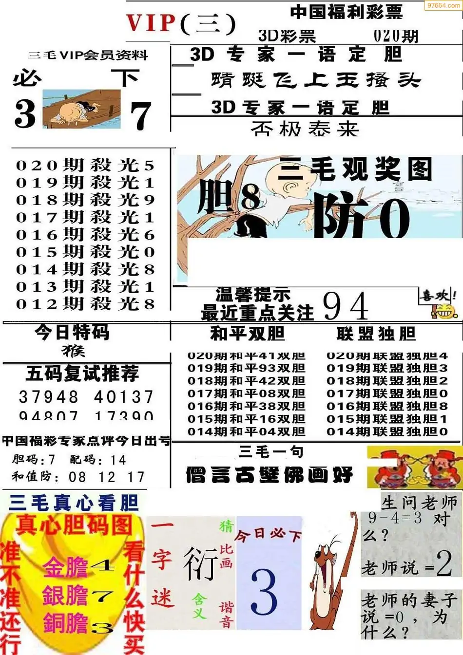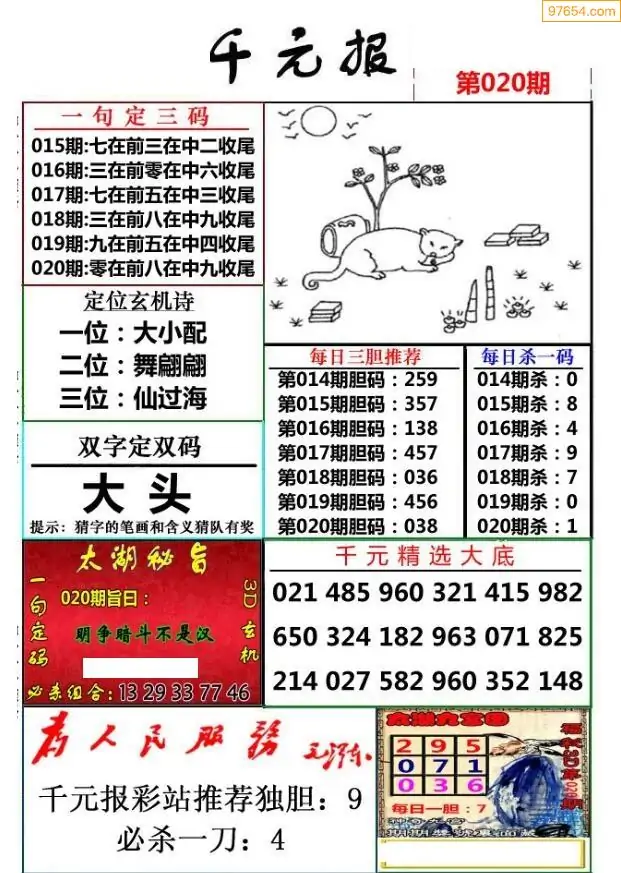 (8)26年020期今日3d各类彩报汇总