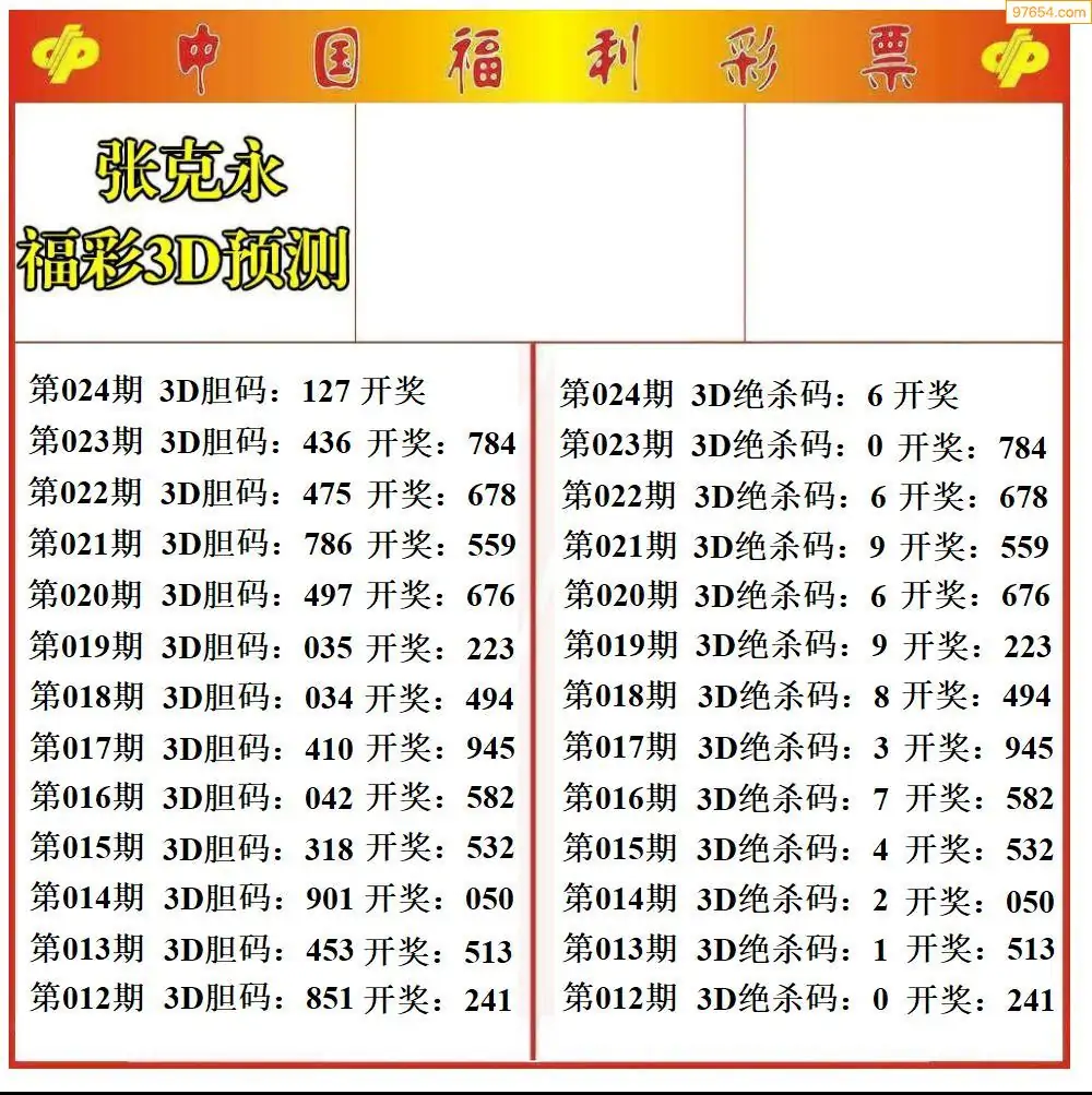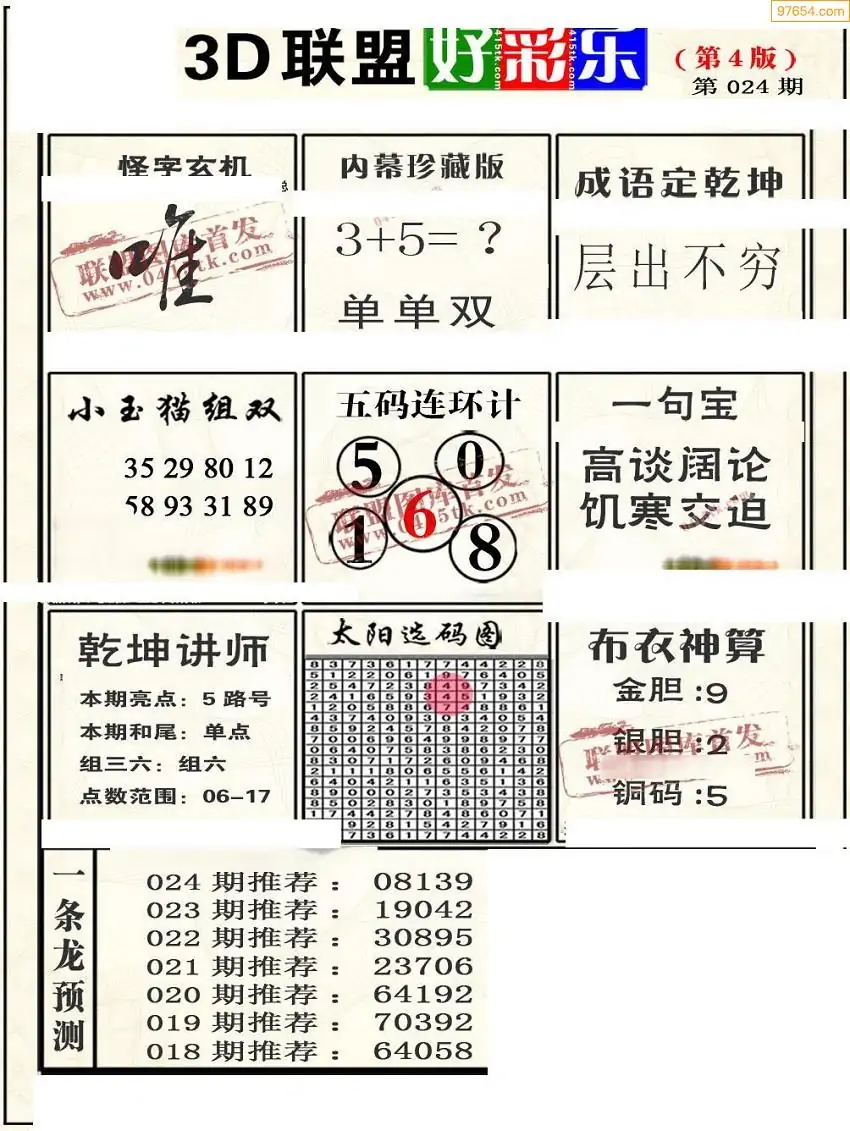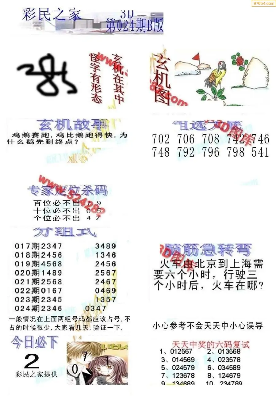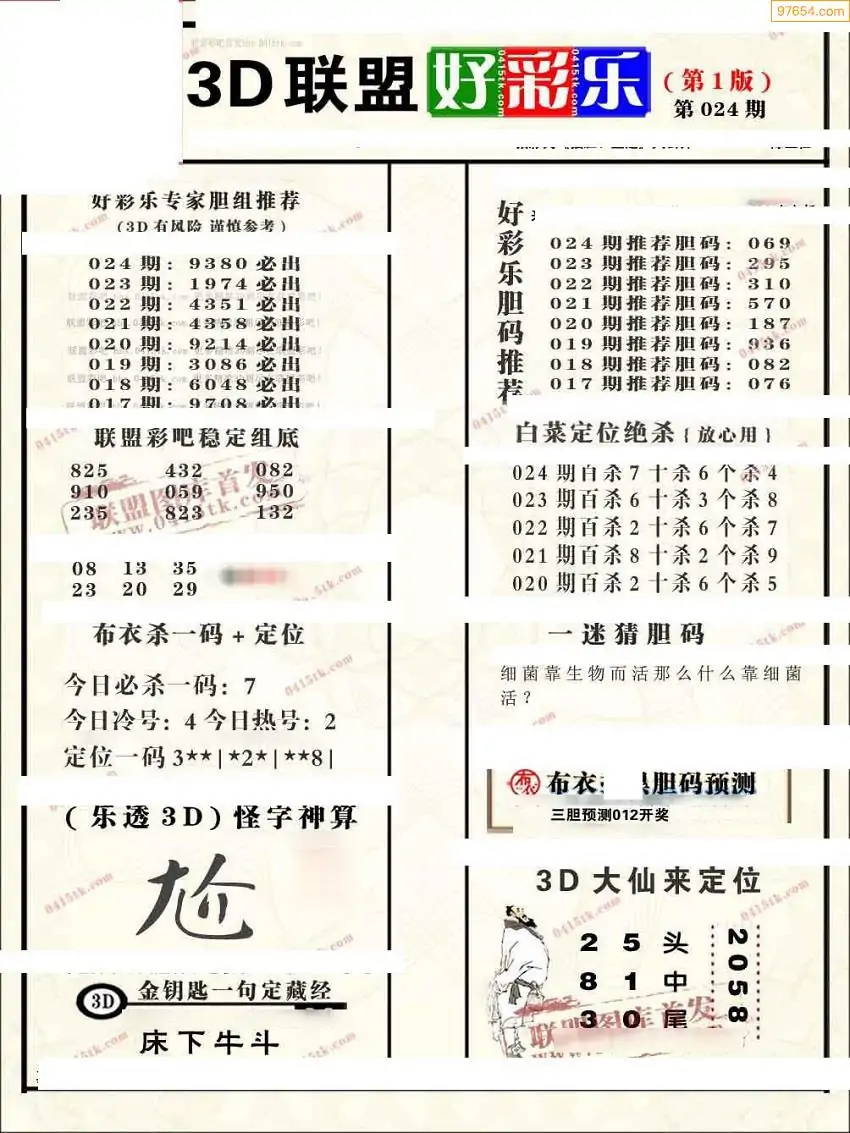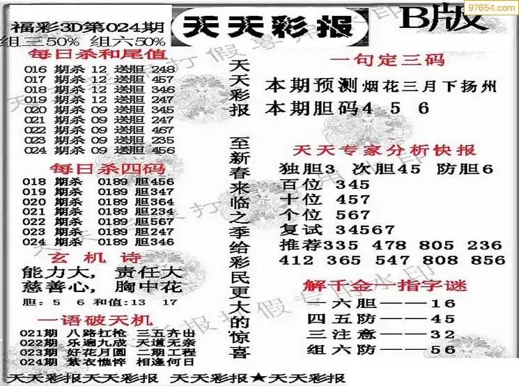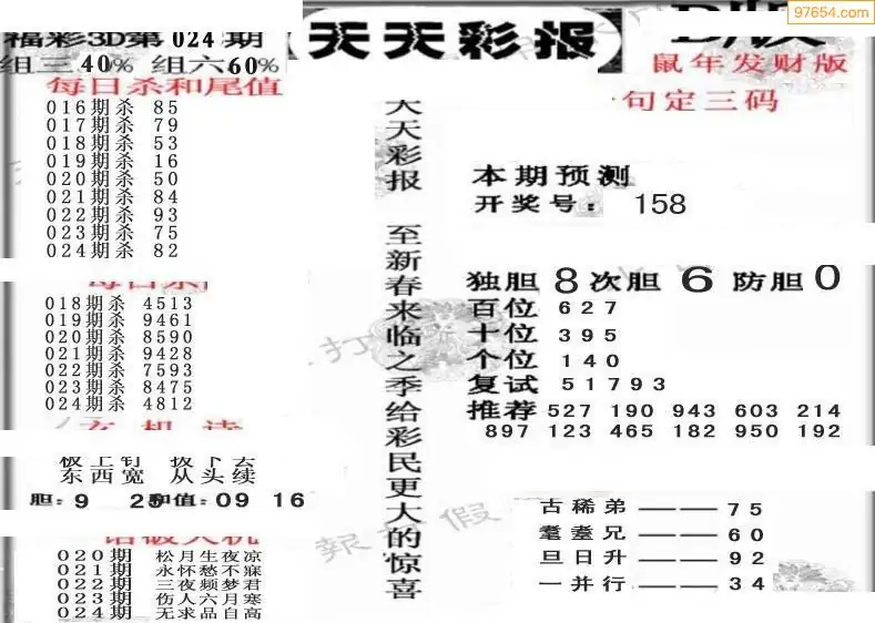 (8)26年024期今日3d各类彩报汇总