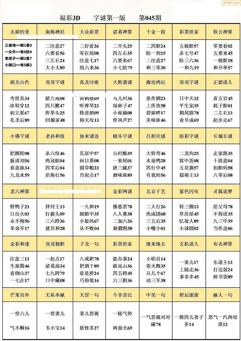(4)26年045期本站原创总汇全图_福彩图谜字谜总汇大全