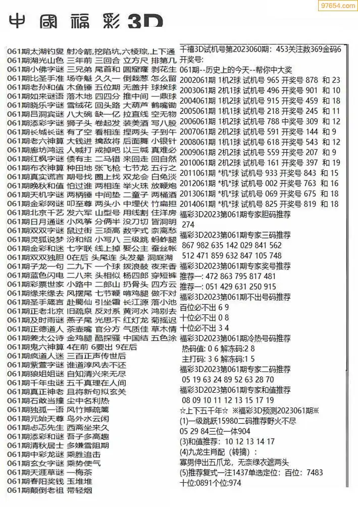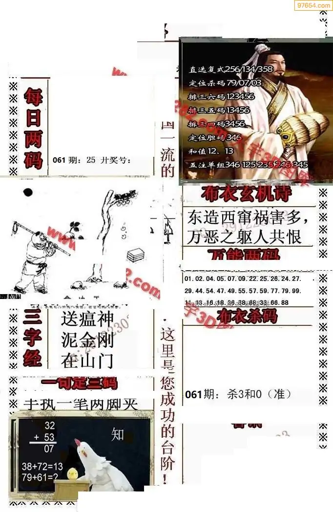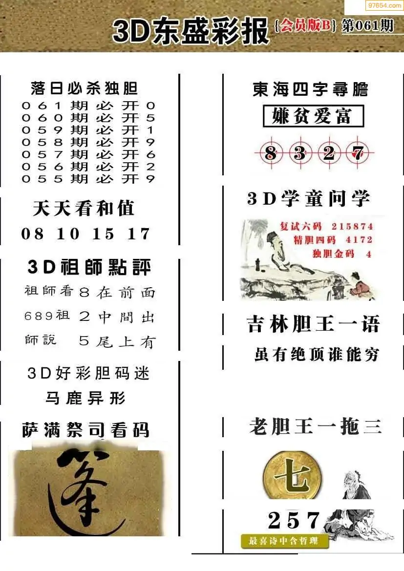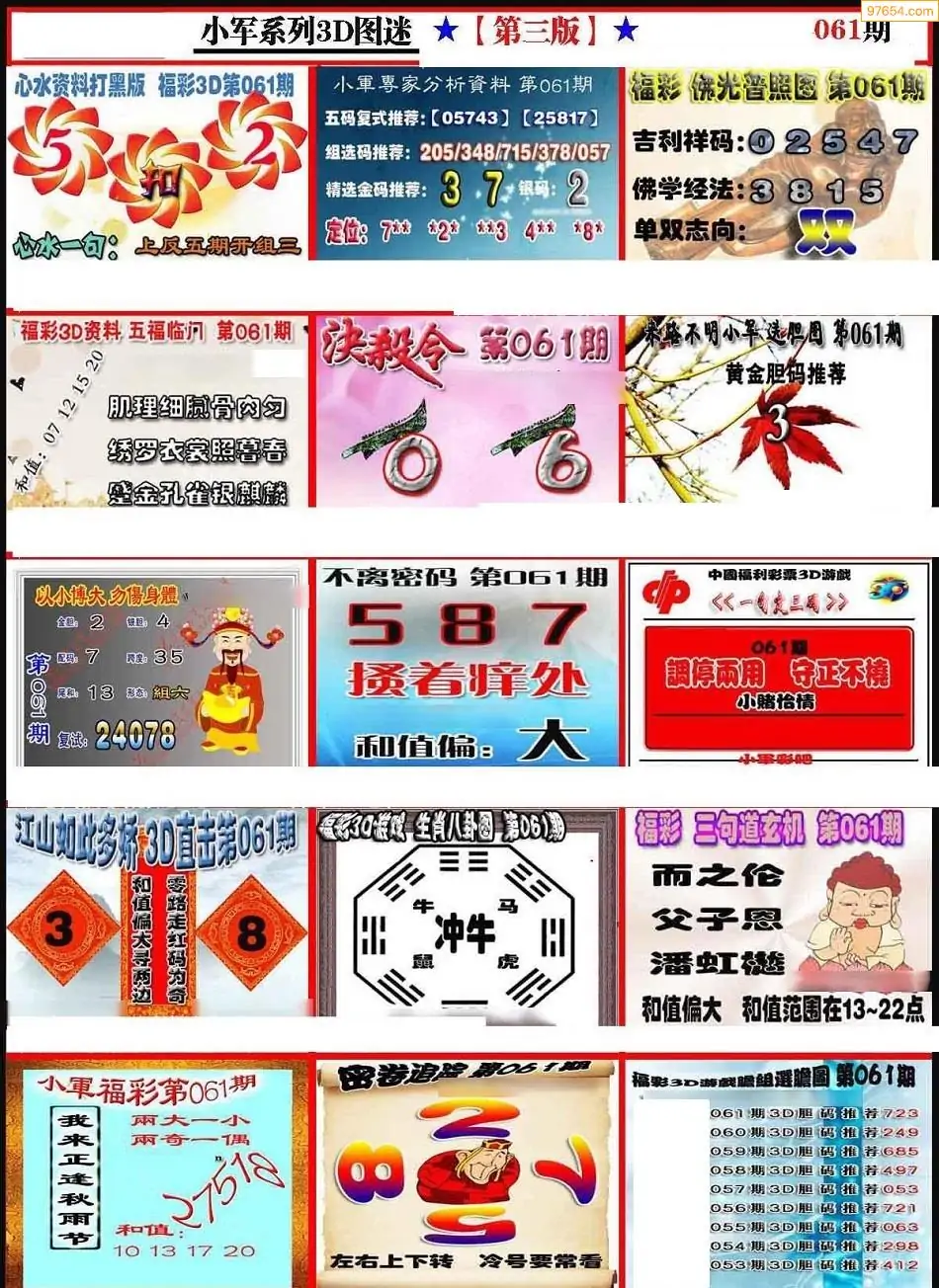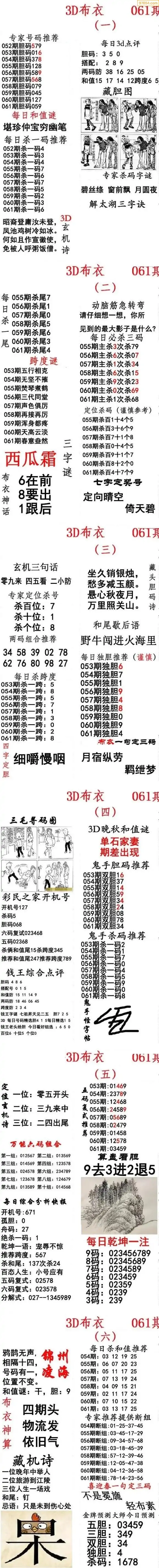(8)26年061期今日3d各类彩报汇总