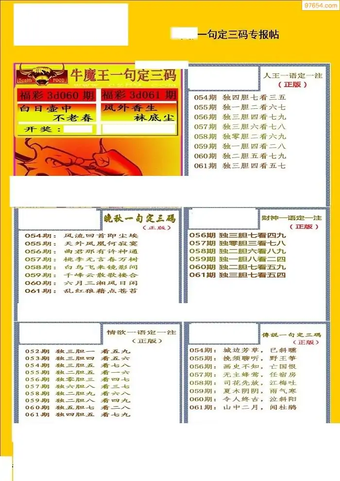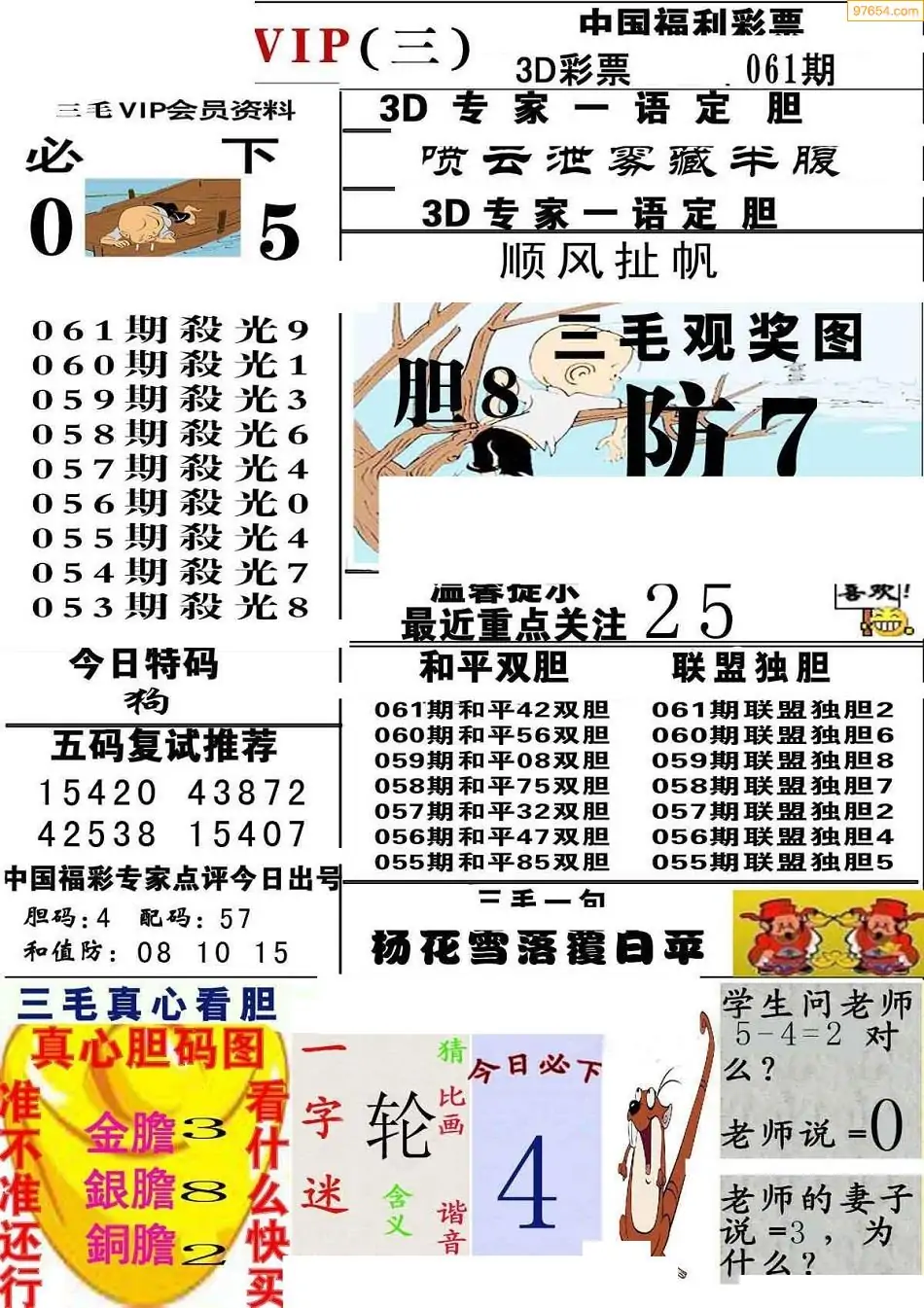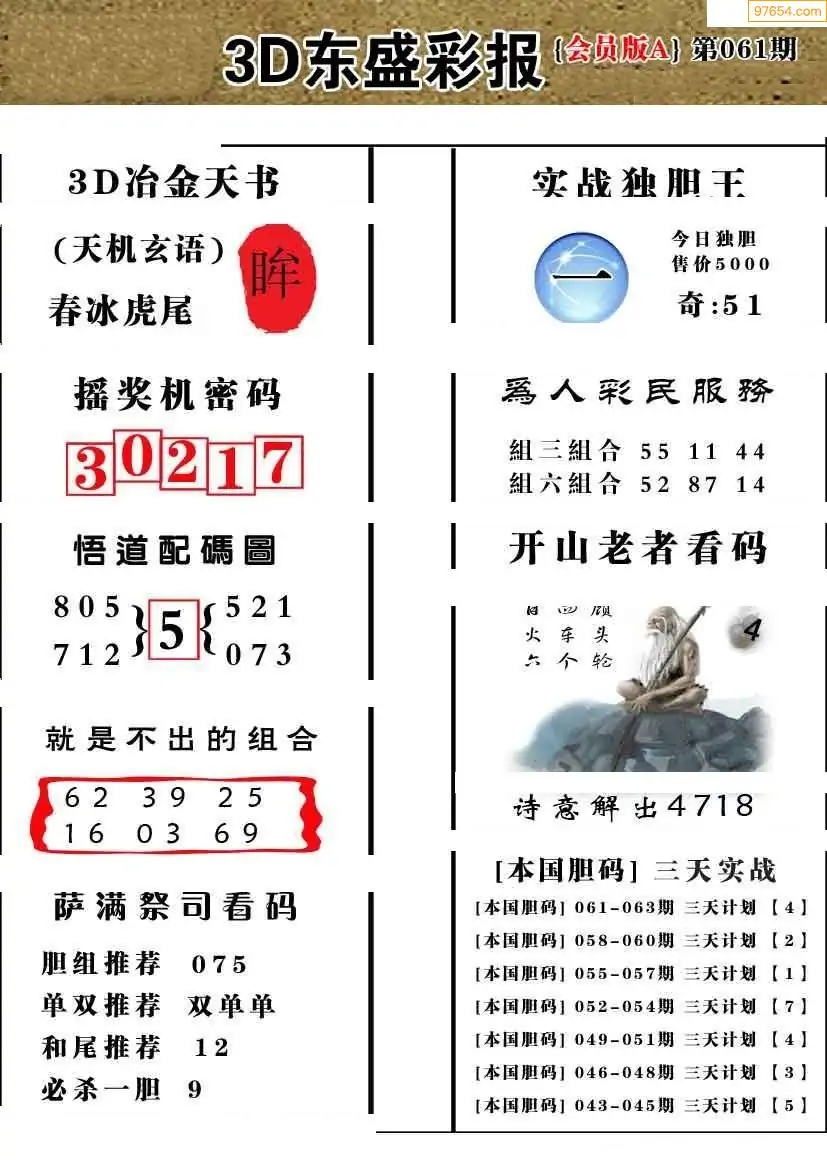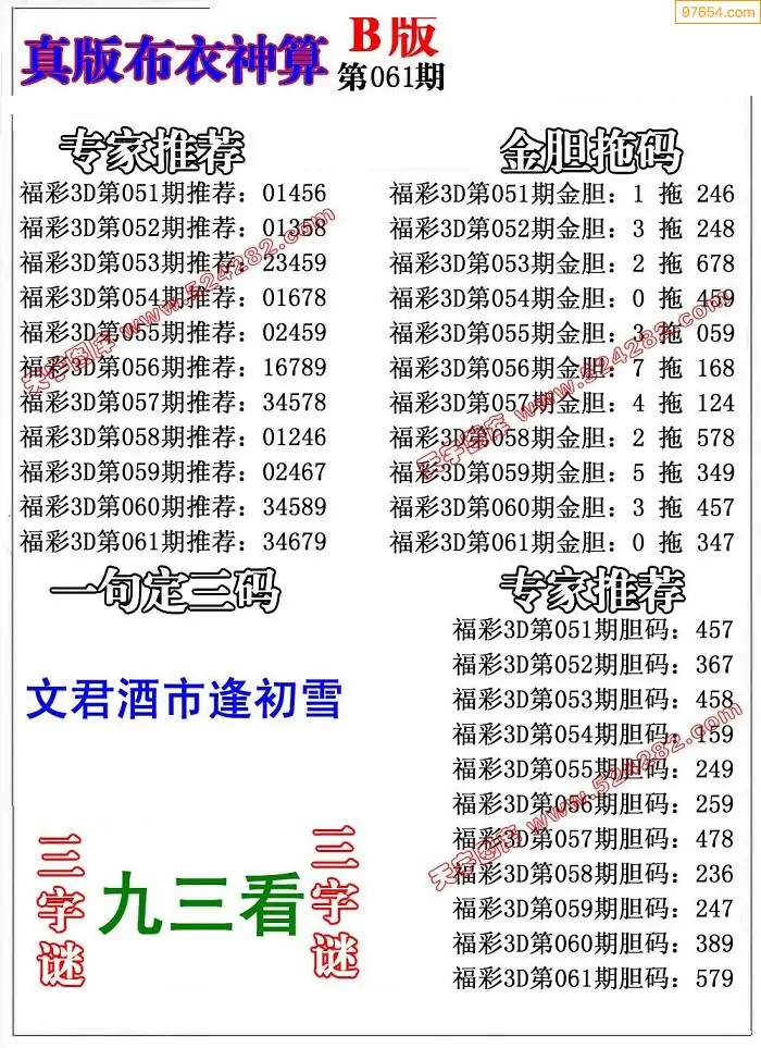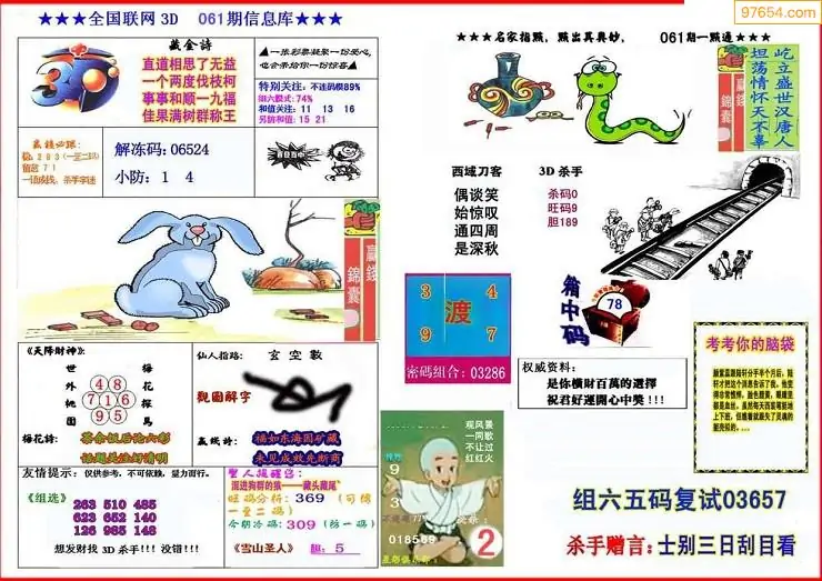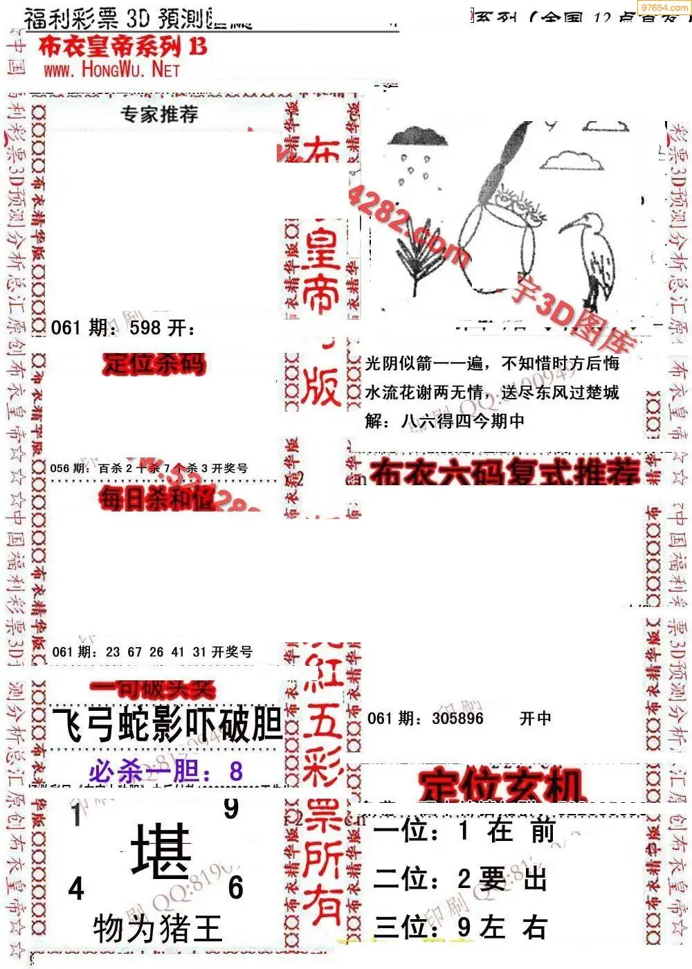 (8)26年061期今日3d各类彩报汇总