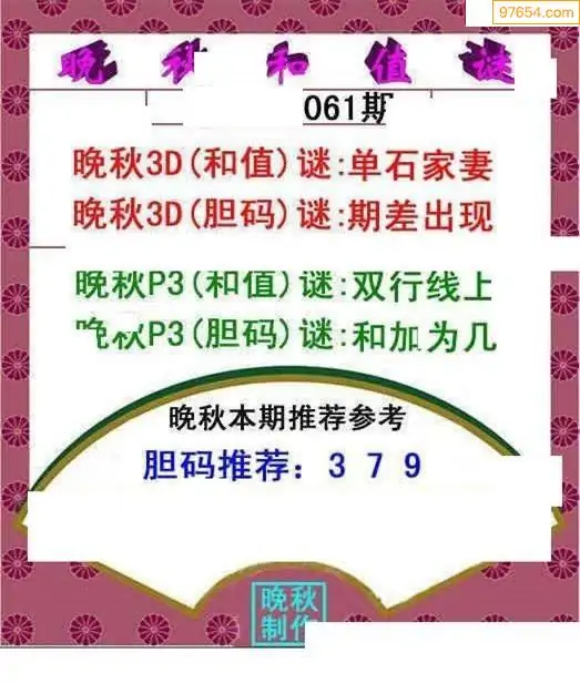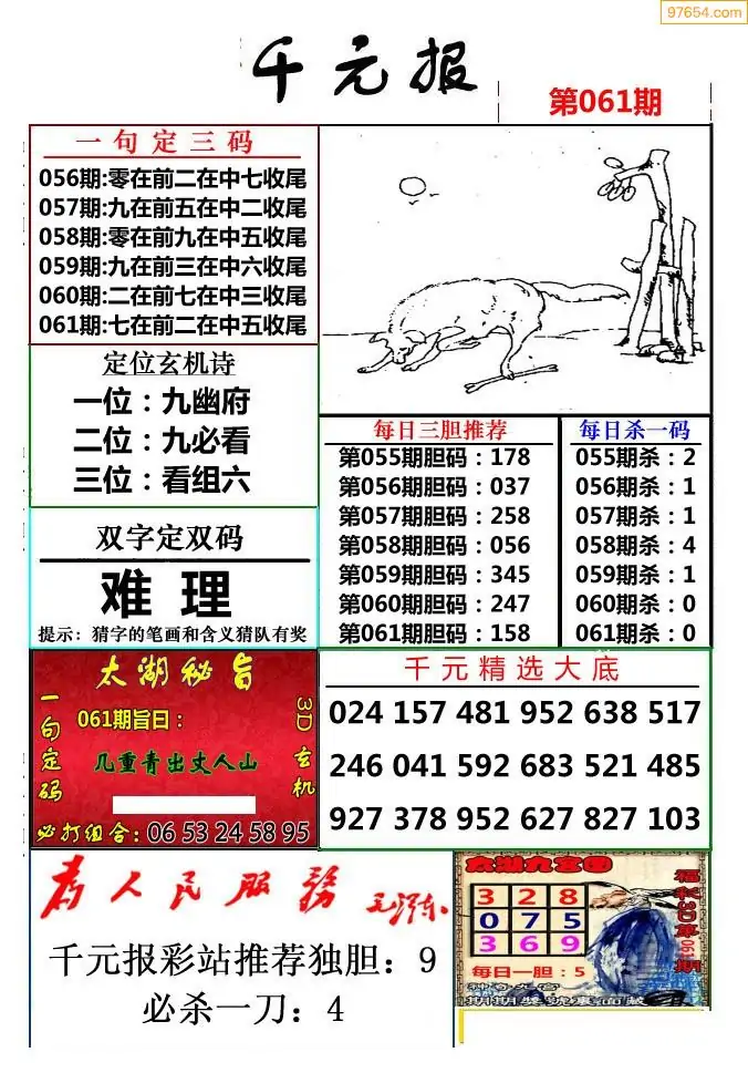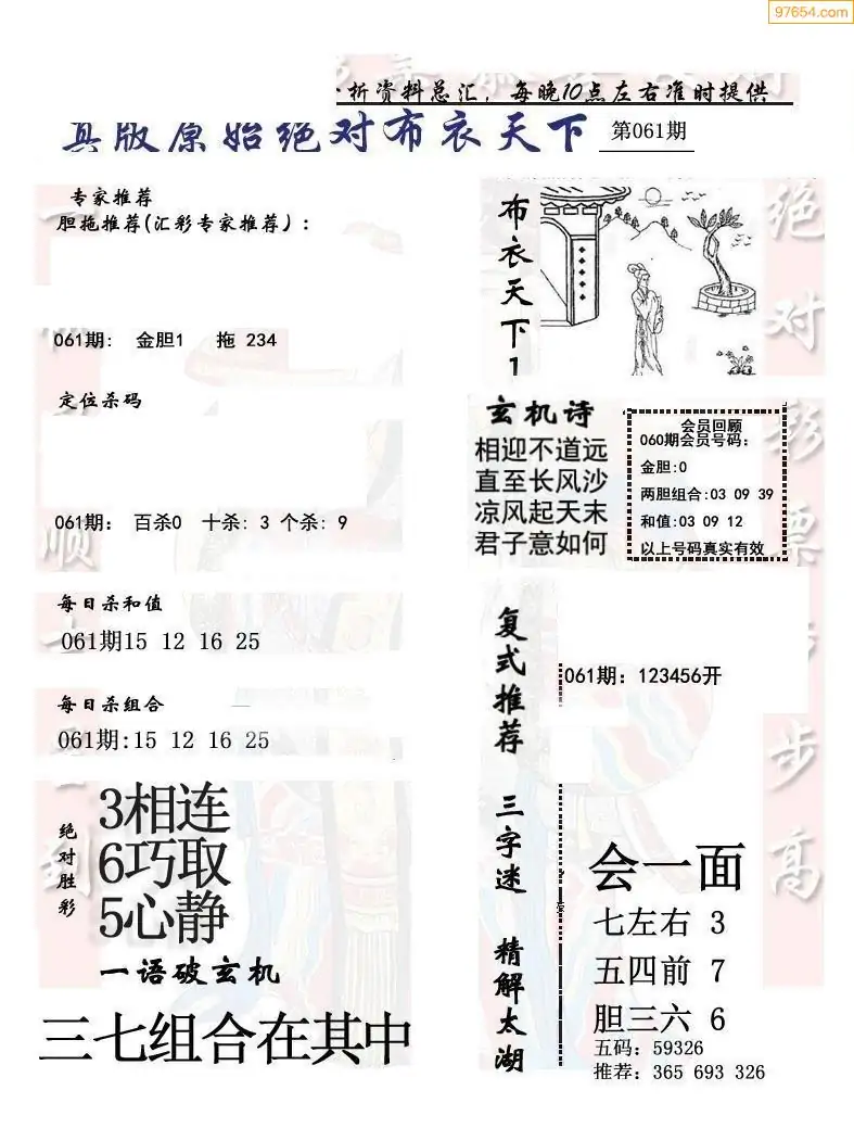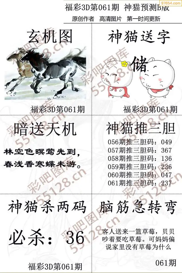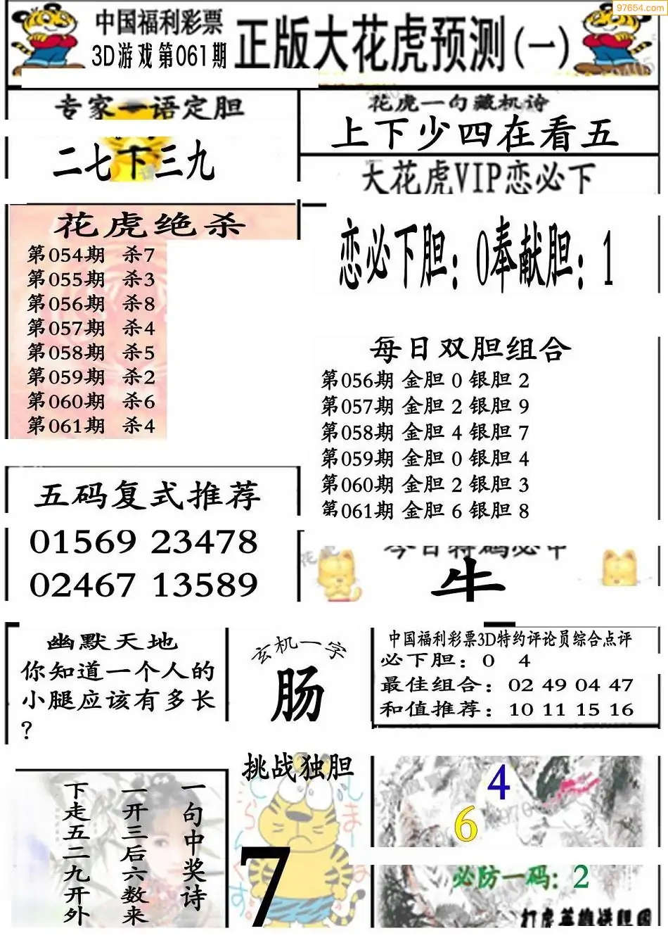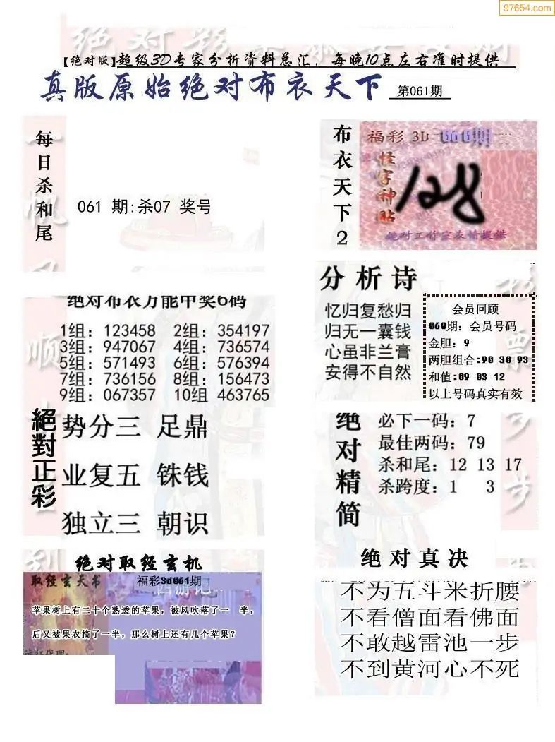 (8)26年061期今日3d各类彩报汇总