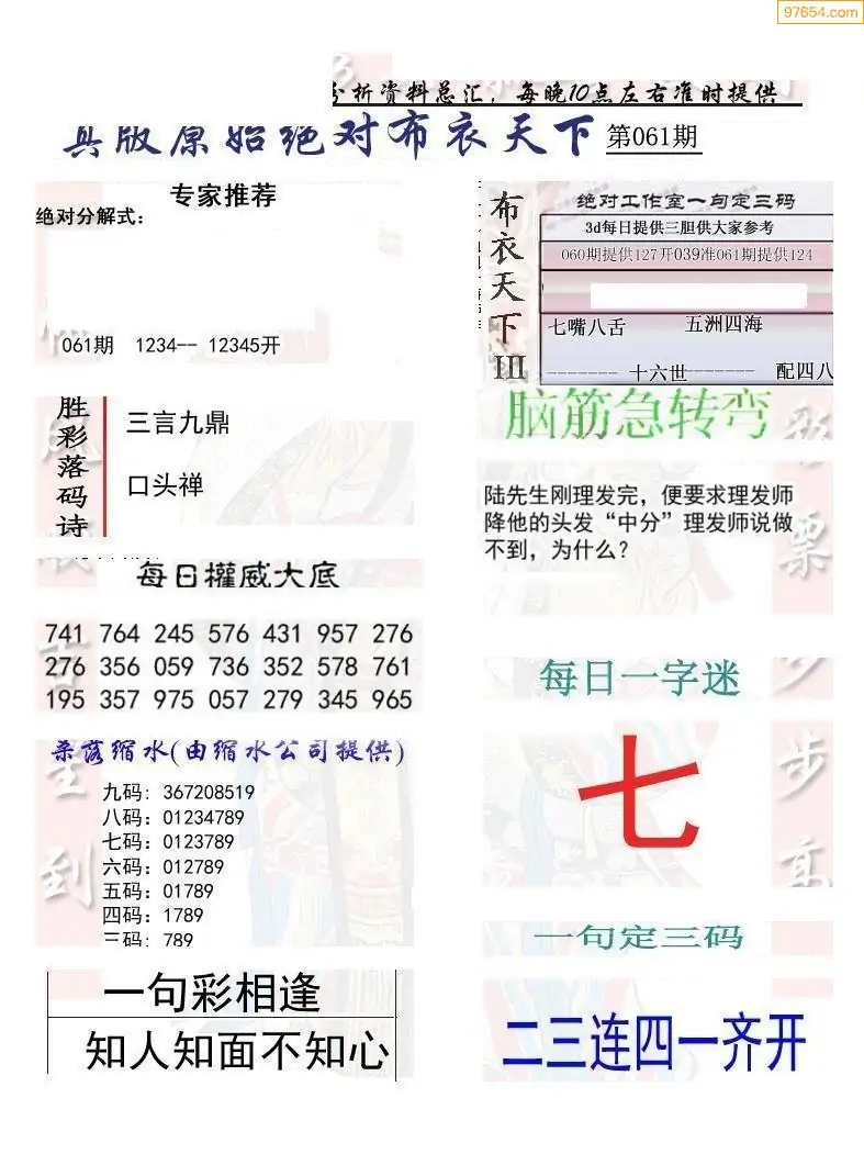 (5)26年061期福彩字谜图谜总汇