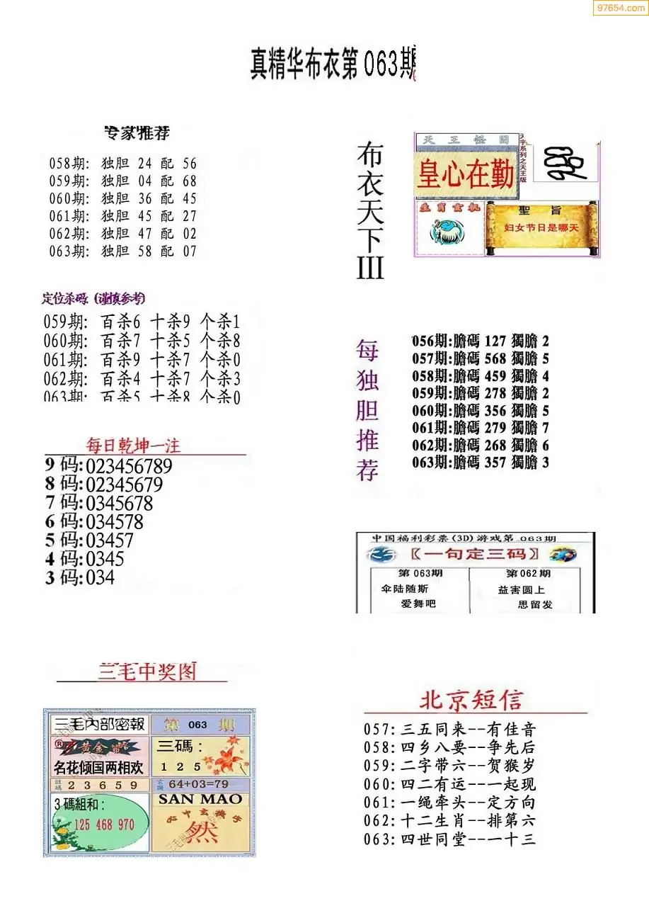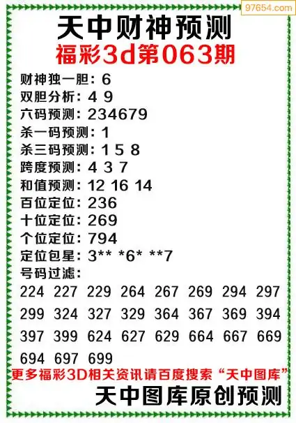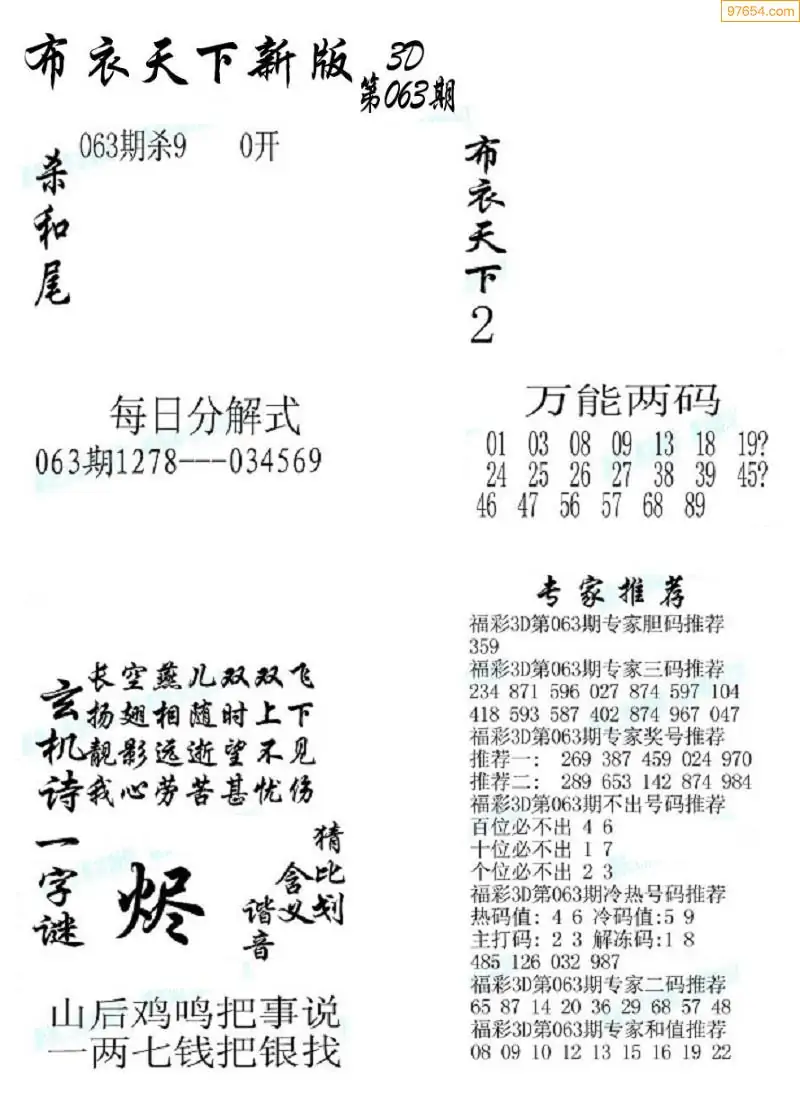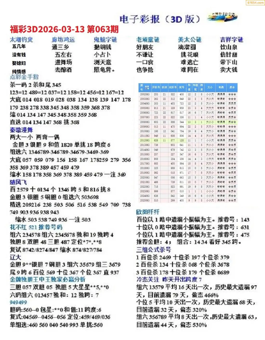(8)26年063期今日3d各类彩报汇总