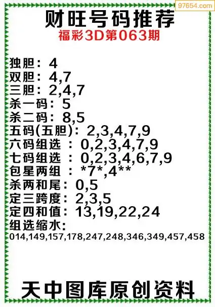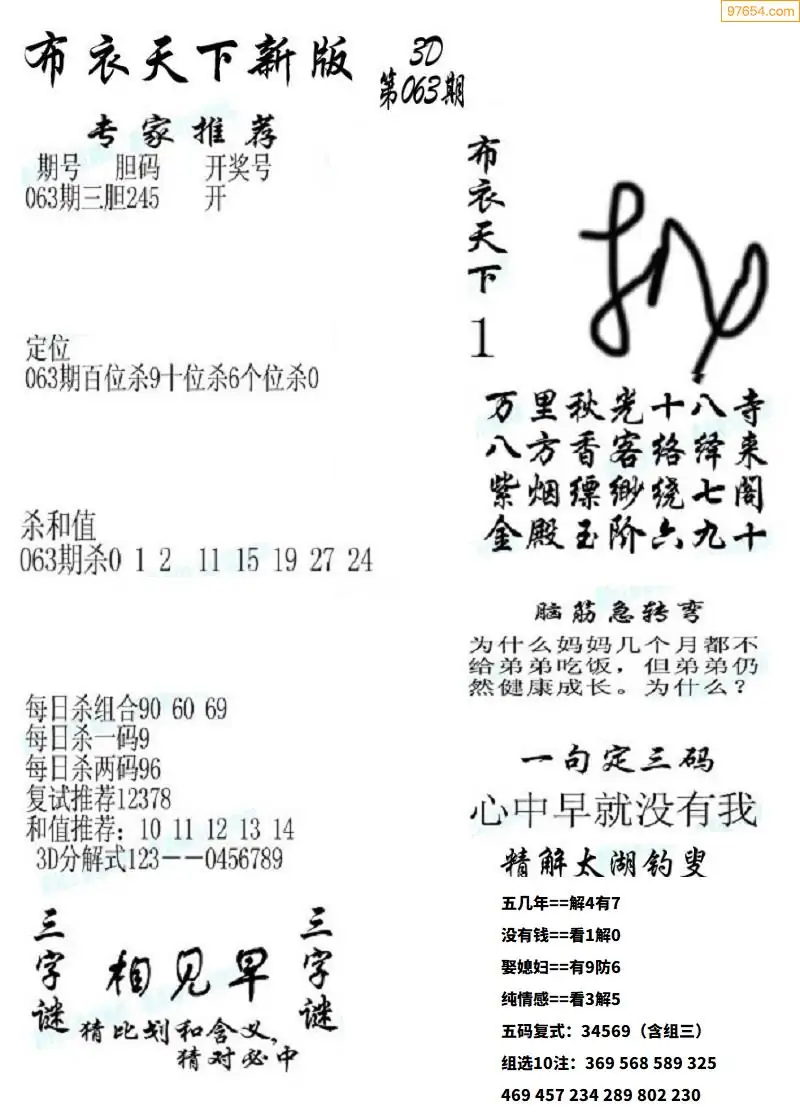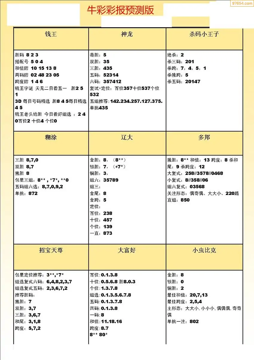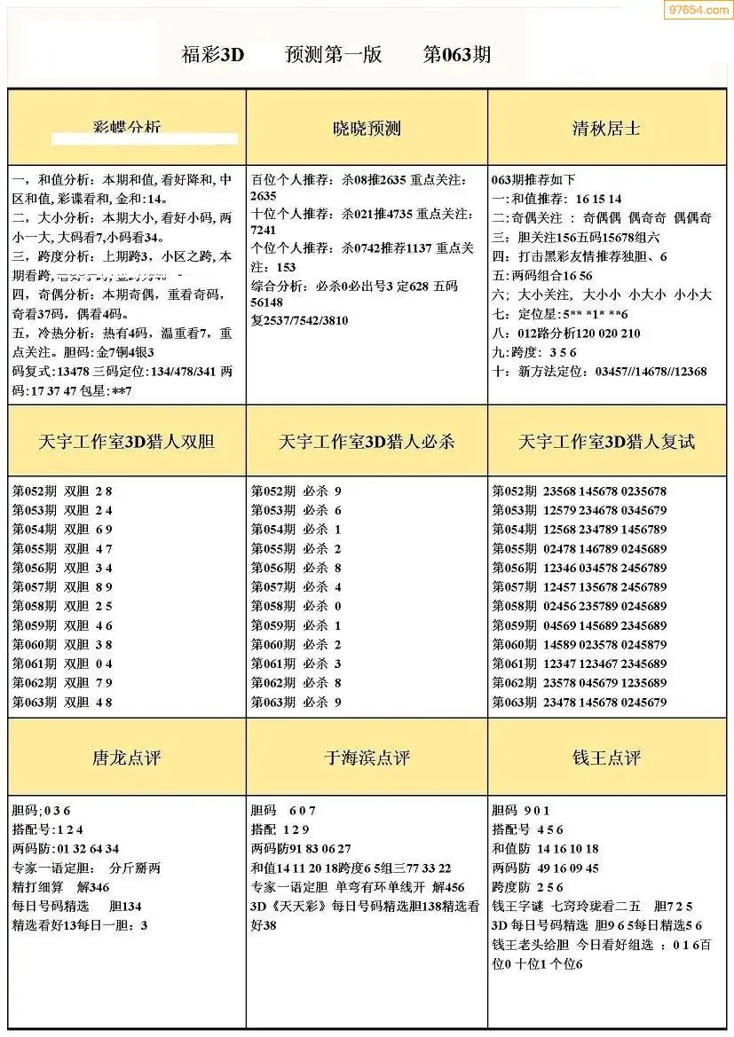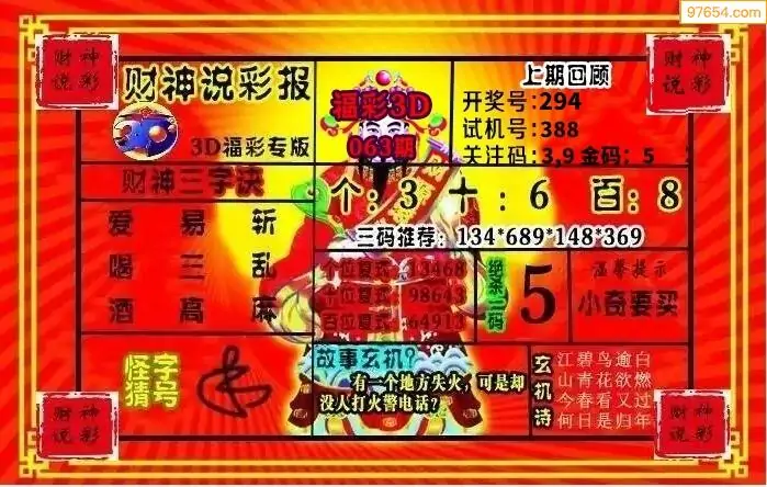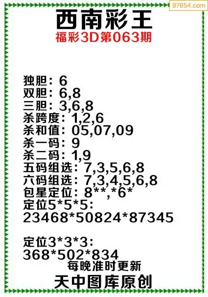 (8)26年063期今日3d各类彩报汇总