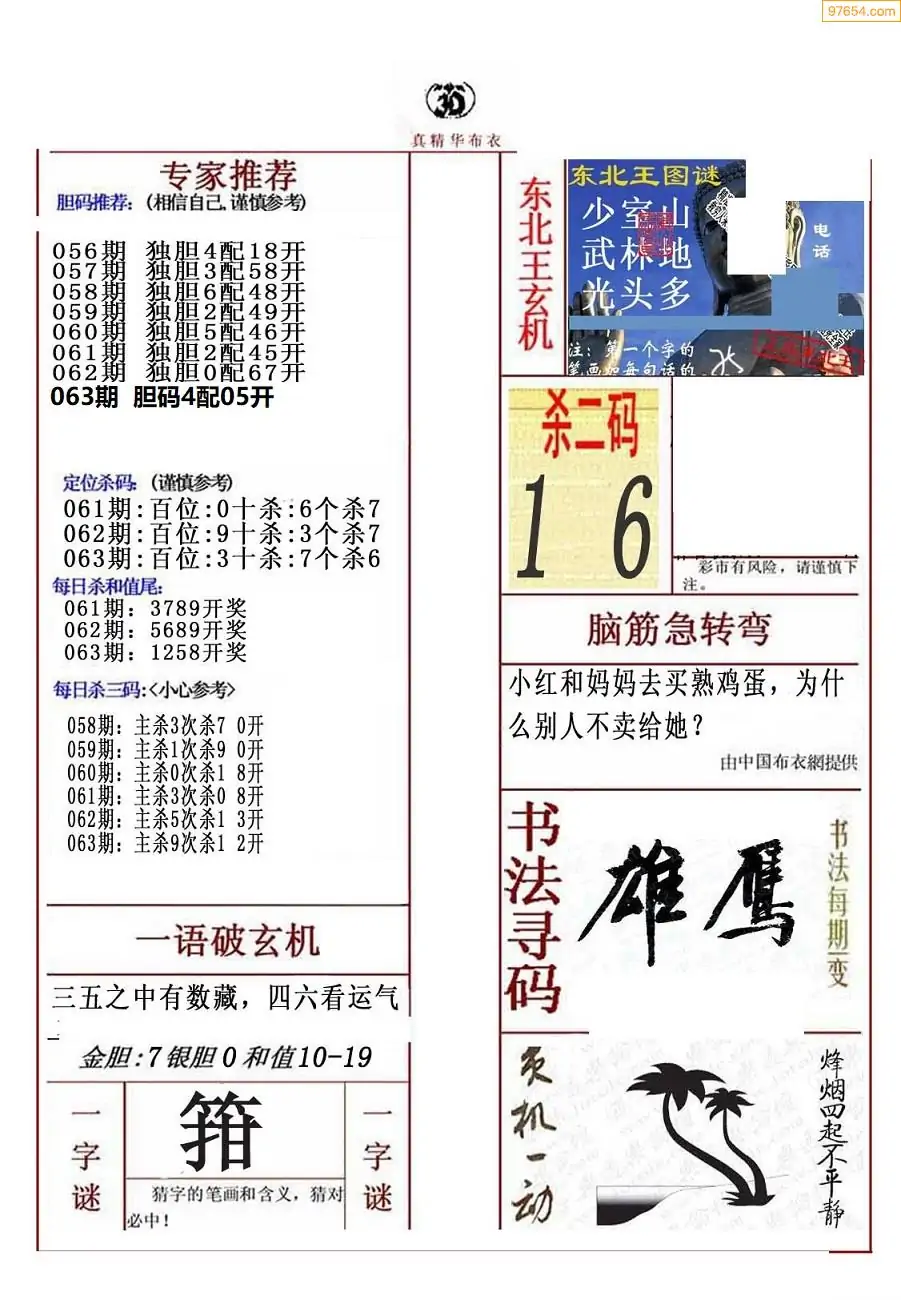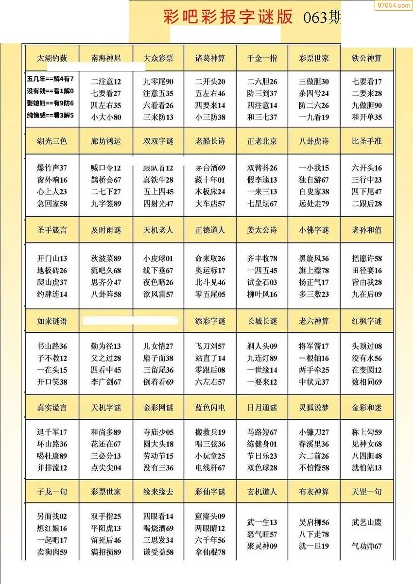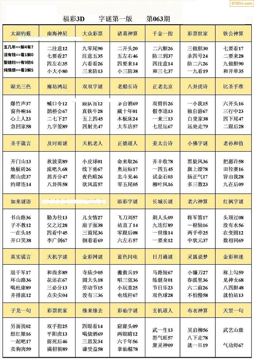 (5)26年063期福彩字谜图谜总汇