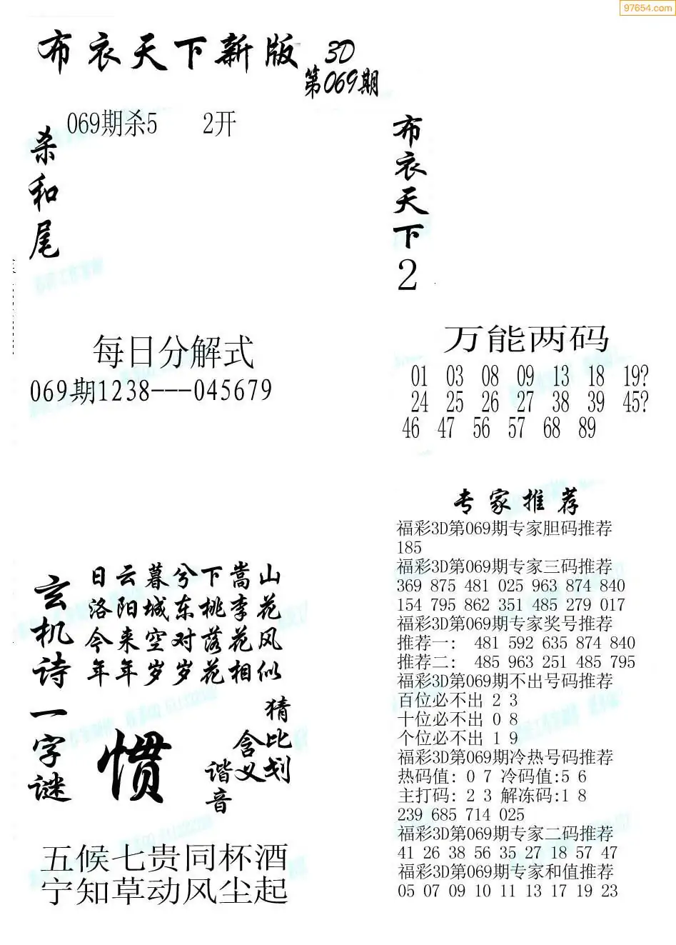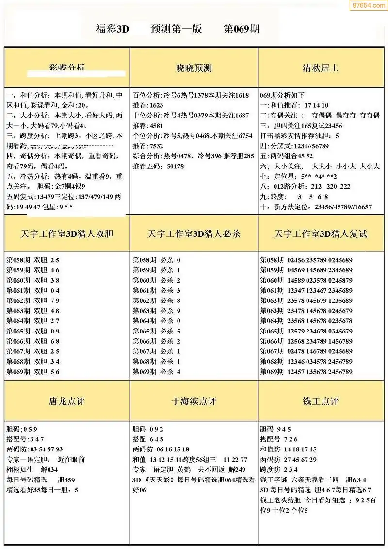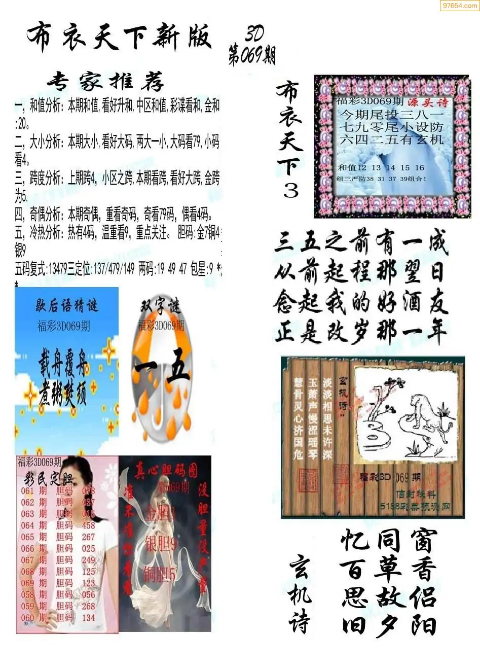 (8)26年069期今日3d各类彩报汇总