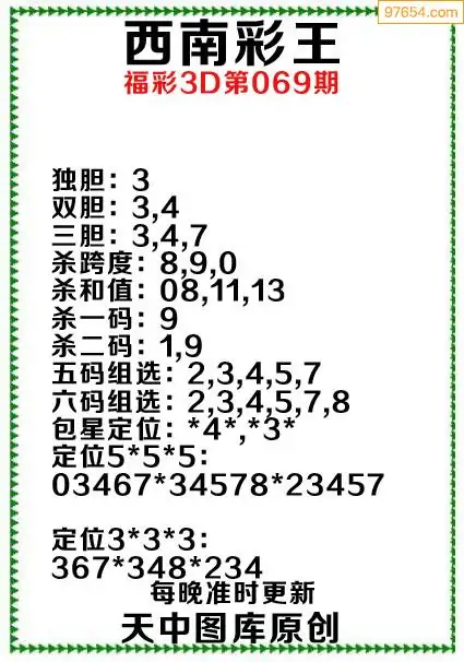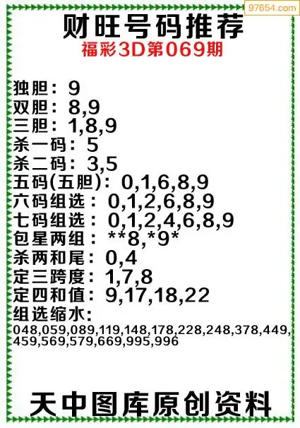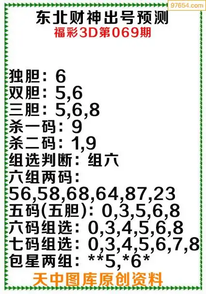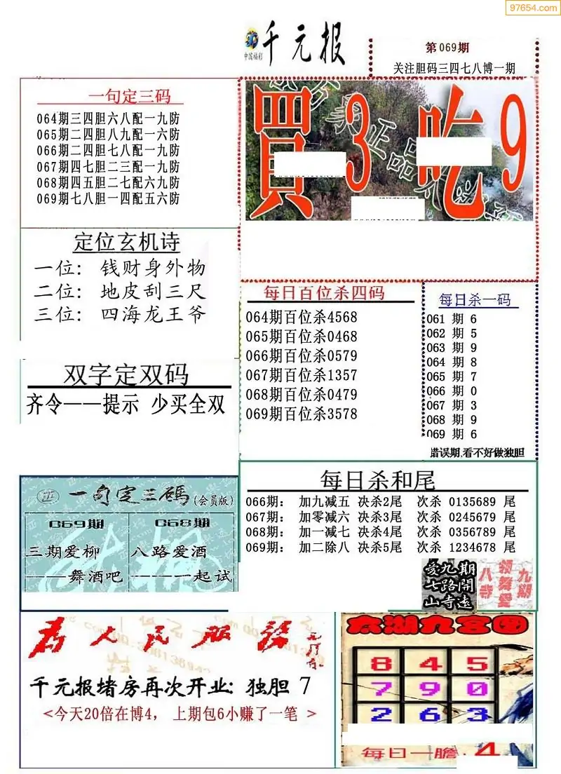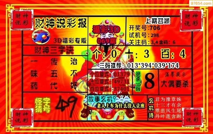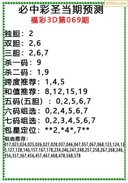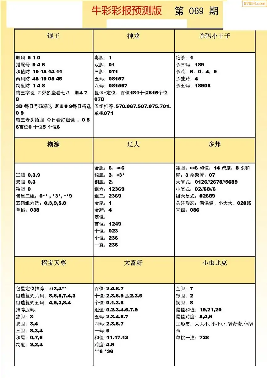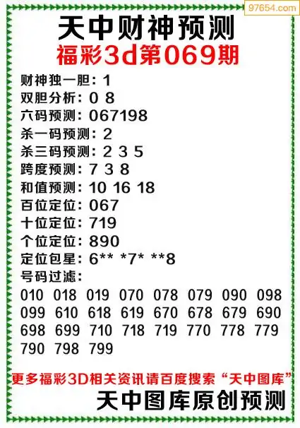 (8)26年069期今日3d各类彩报汇总
