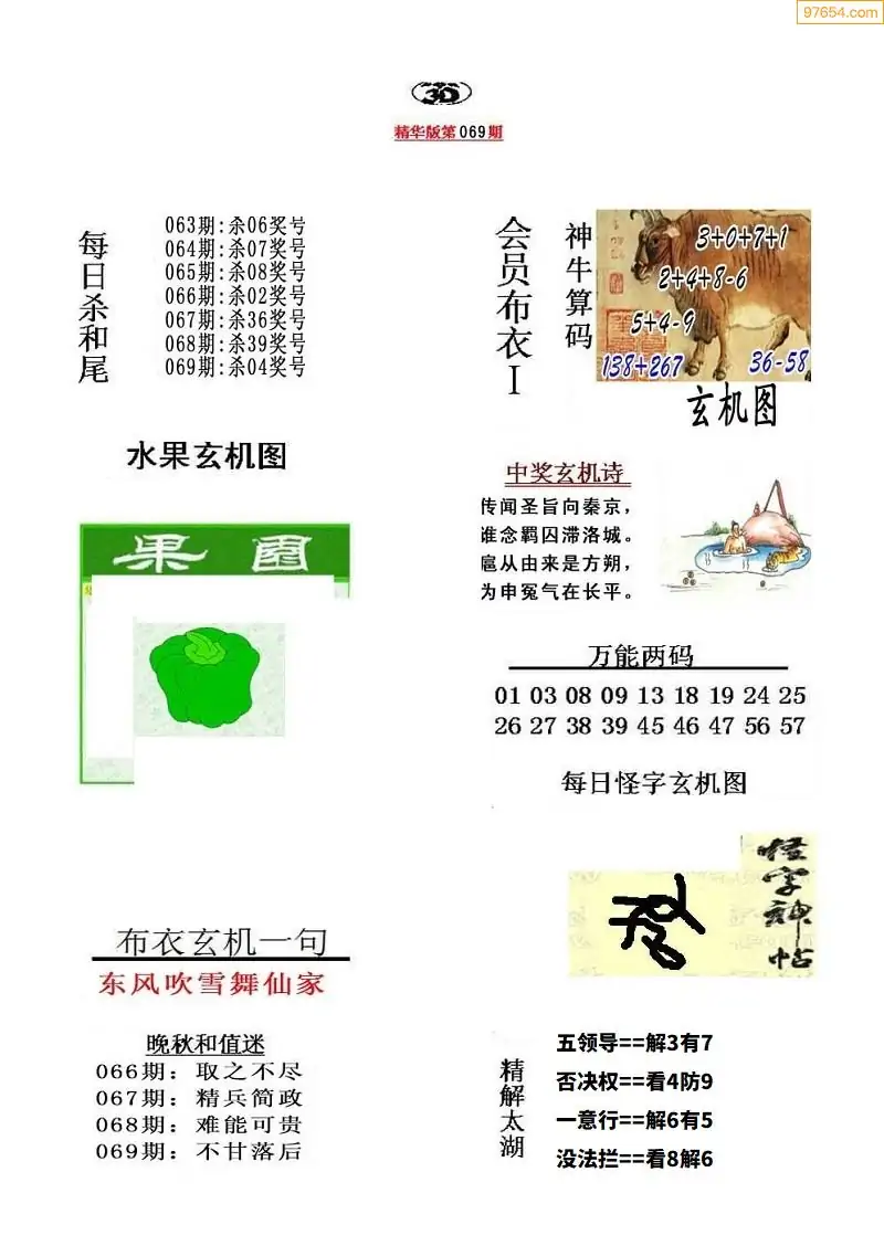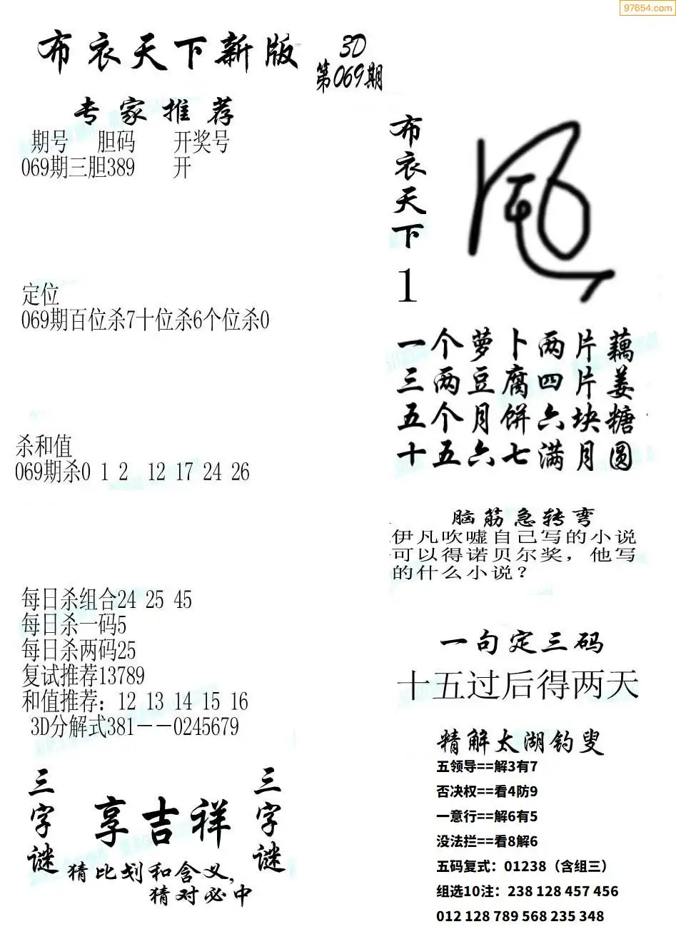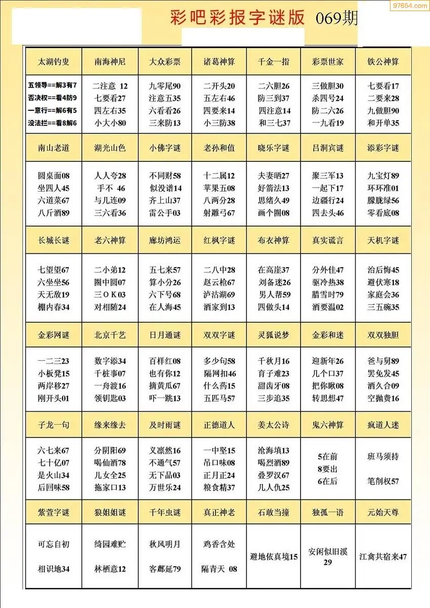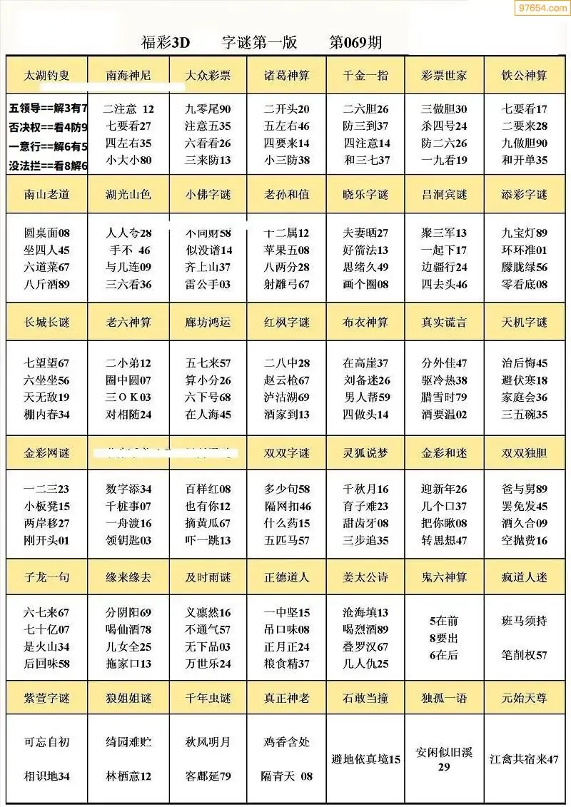 (5)26年069期福彩字谜图谜总汇