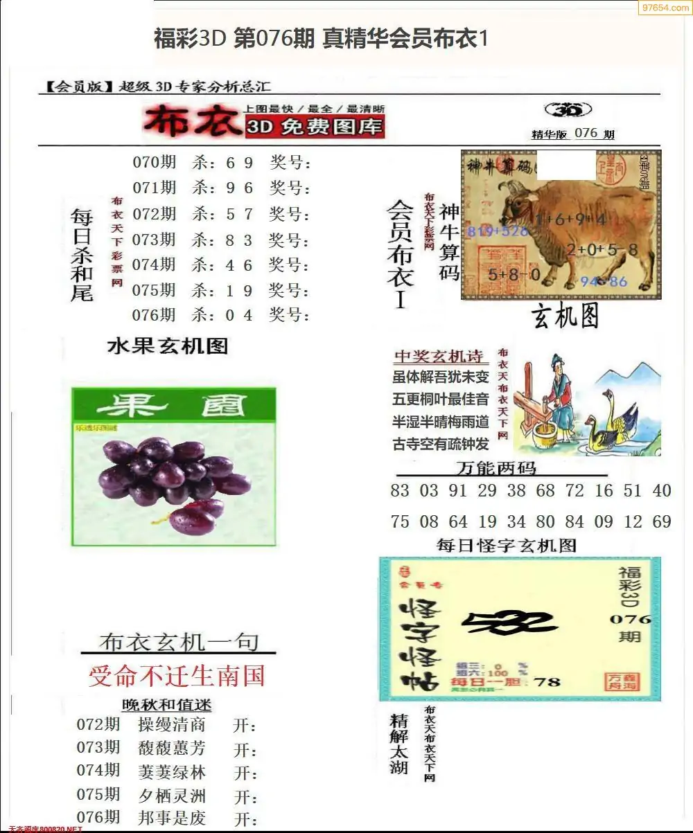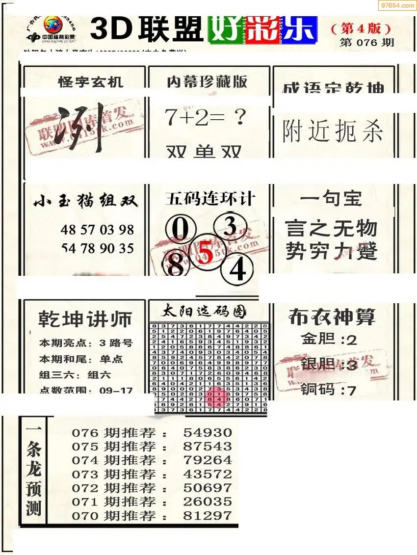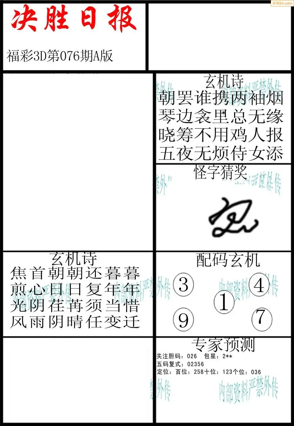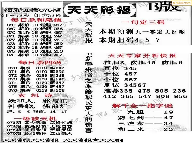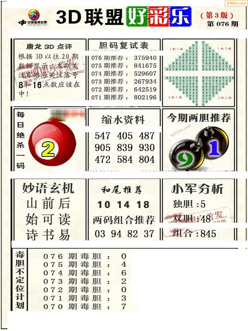(8)26年076期今日3d各类彩报汇总