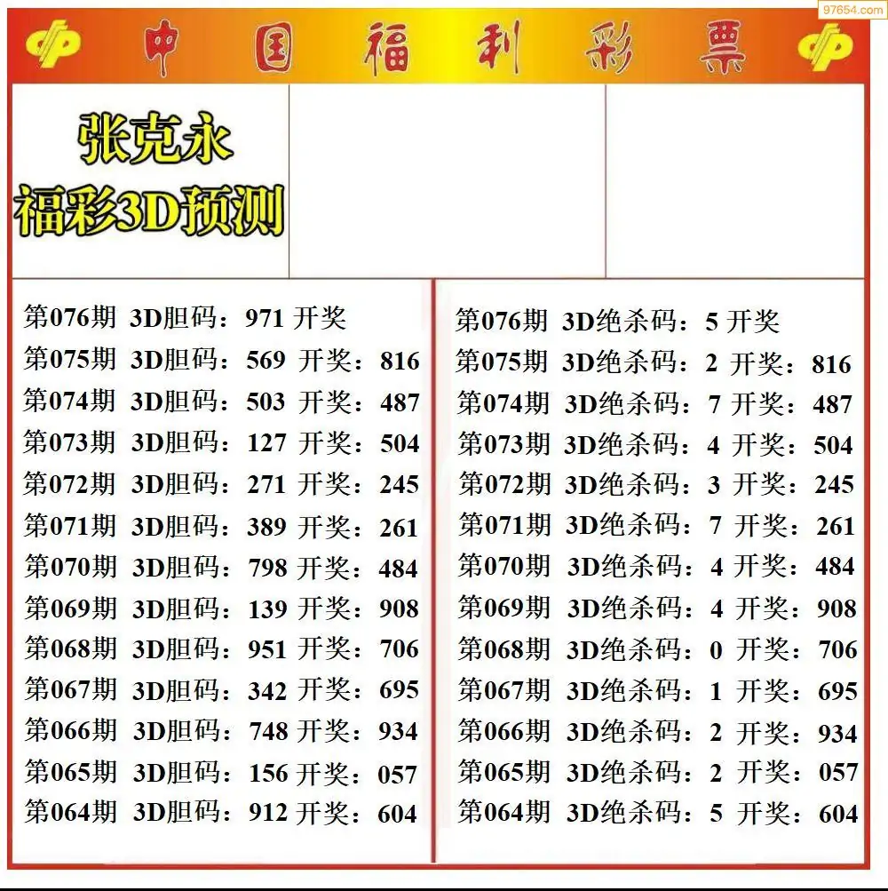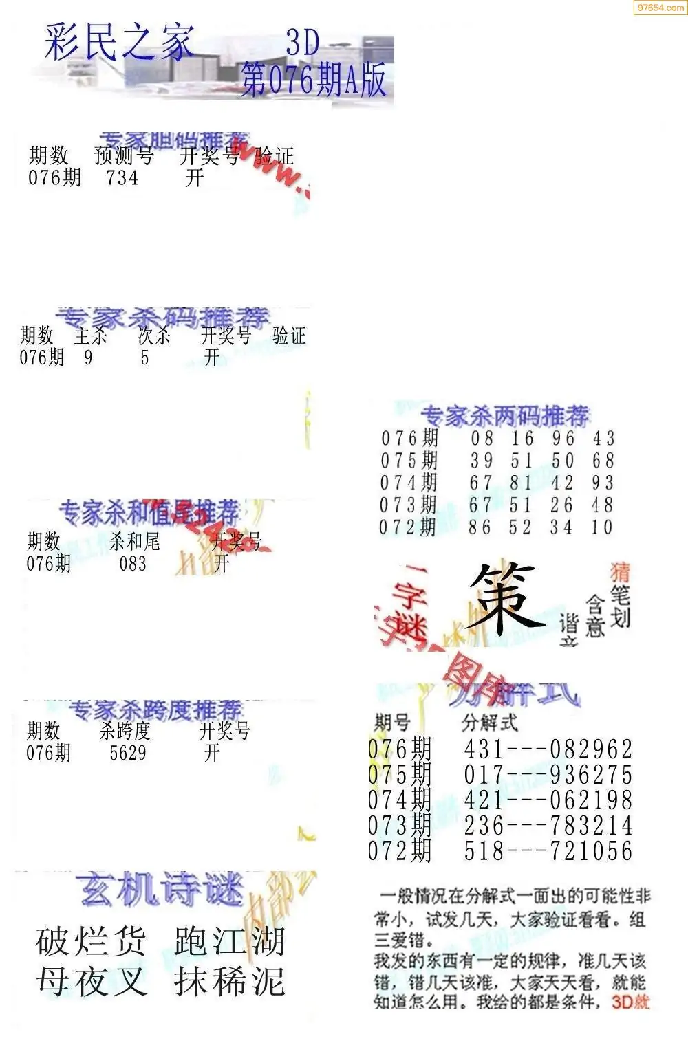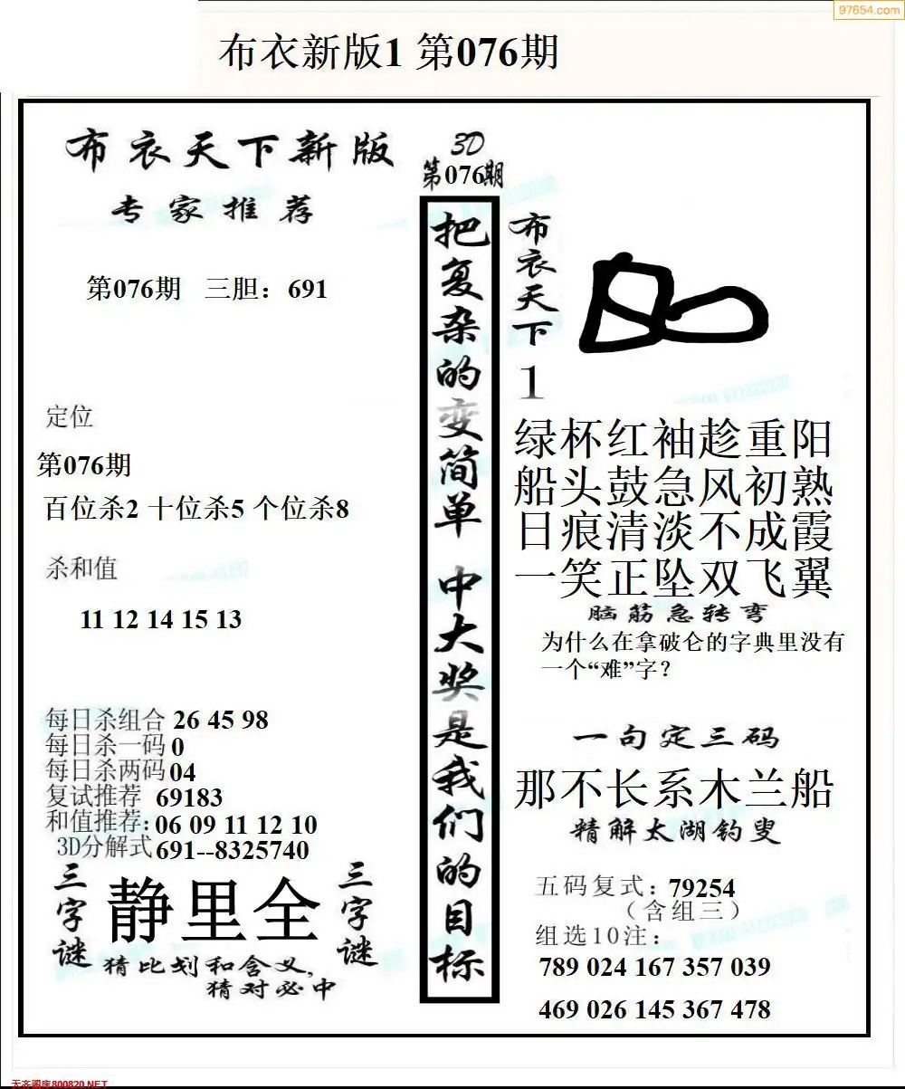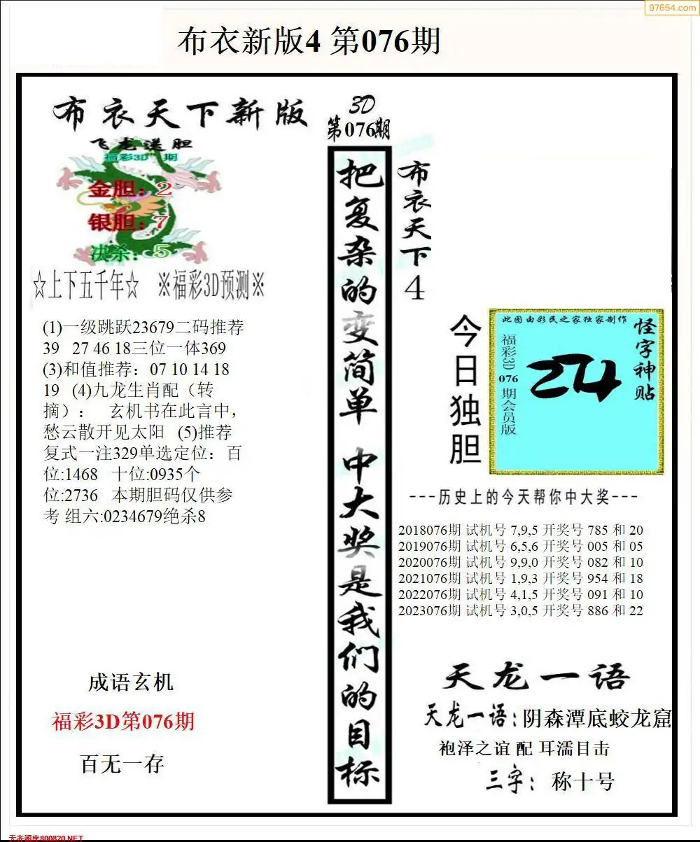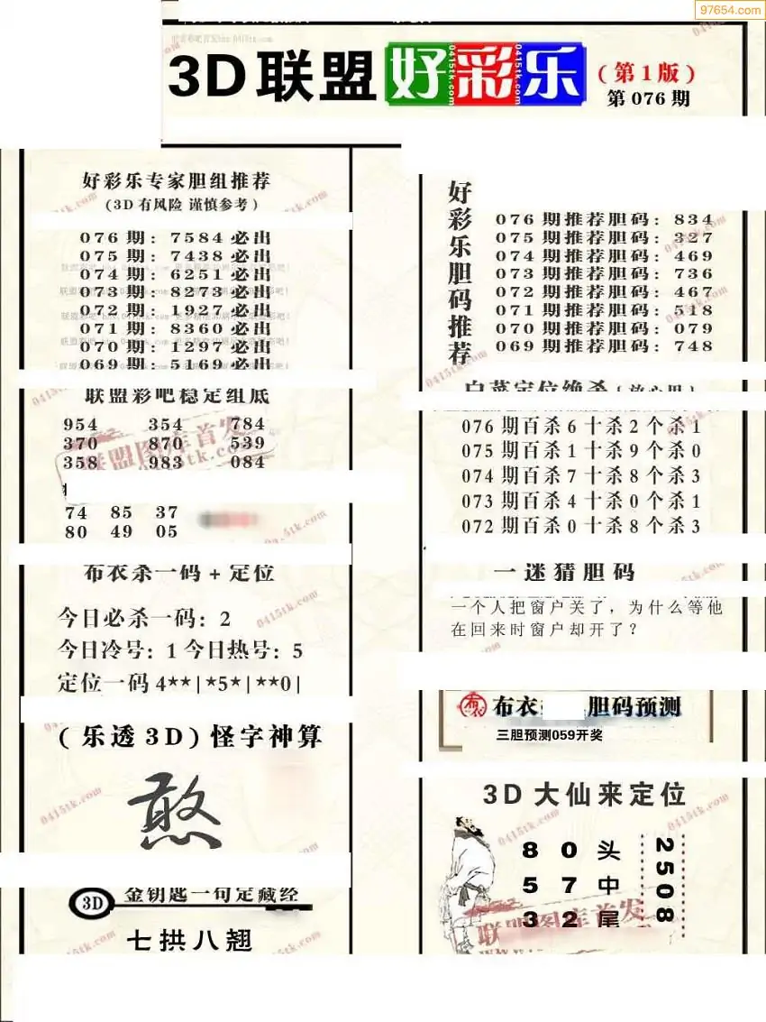 (8)26年076期今日3d各类彩报汇总