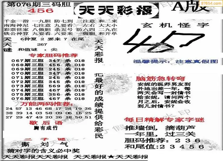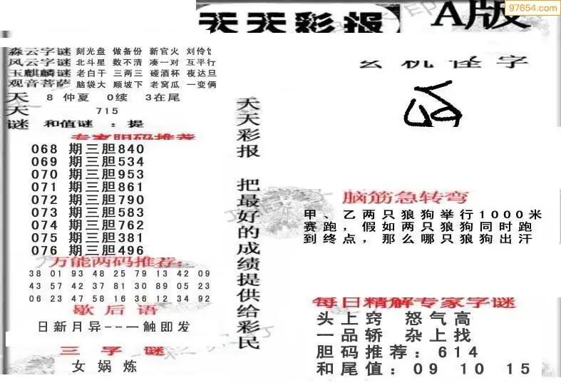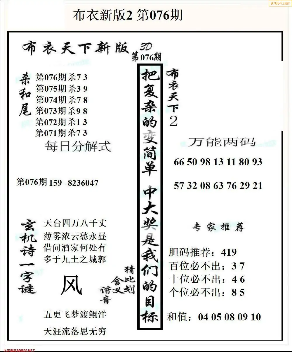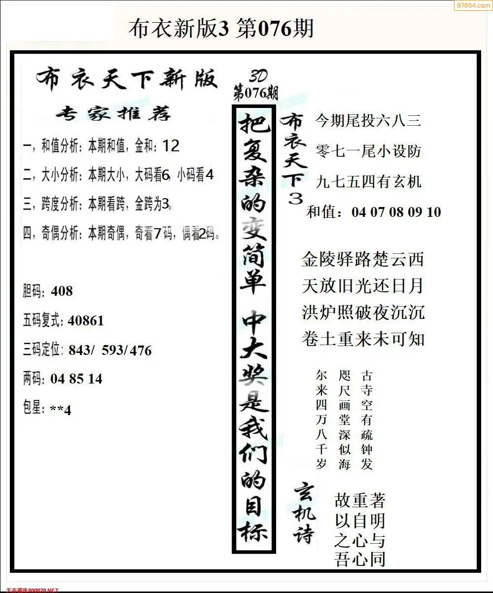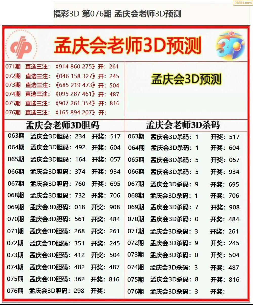 (8)26年076期今日3d各类彩报汇总