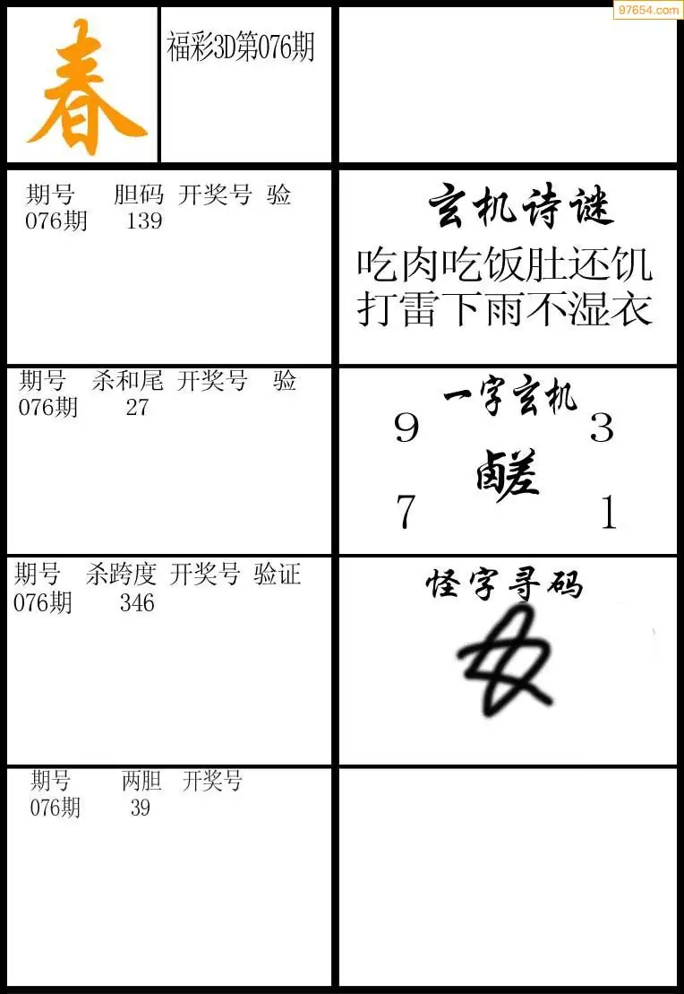 (5)26年076期福彩字谜图谜总汇