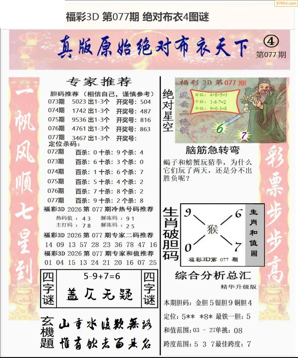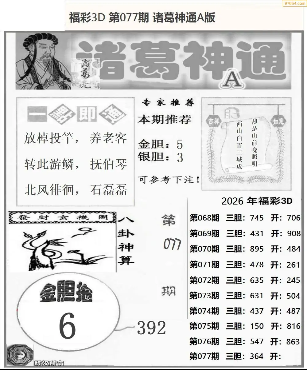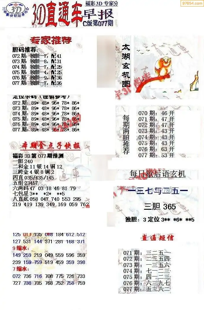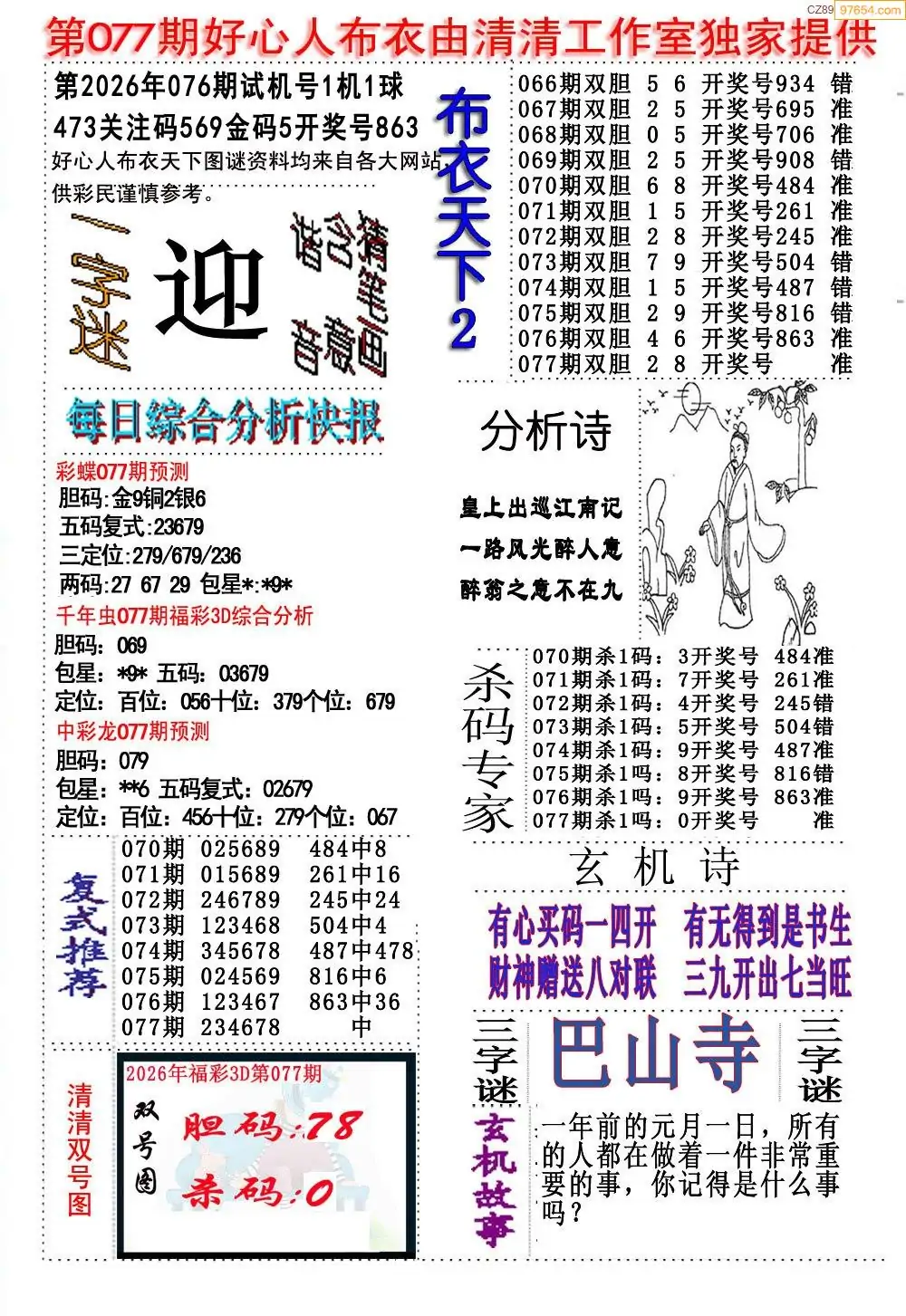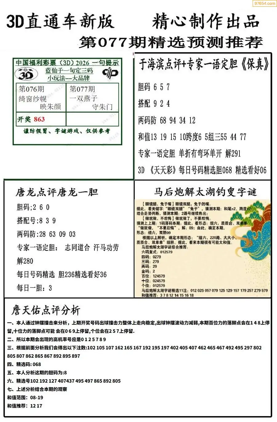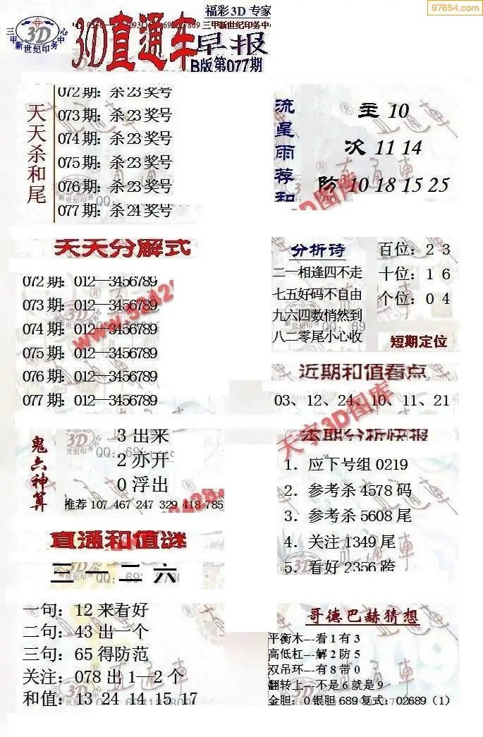 (8)26年077期今日3d各类彩报汇总