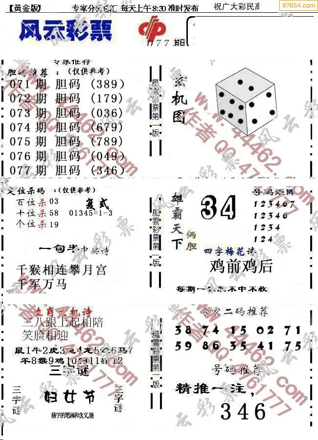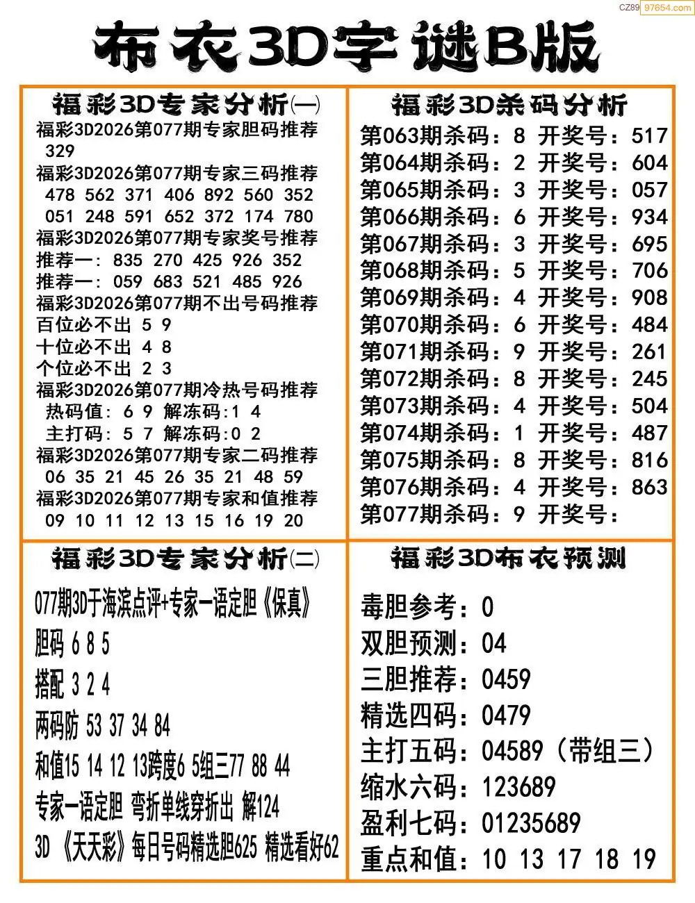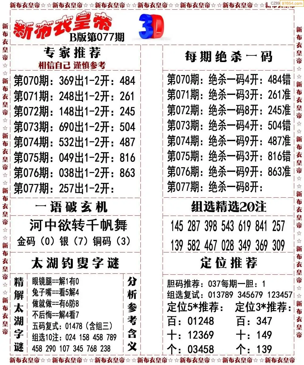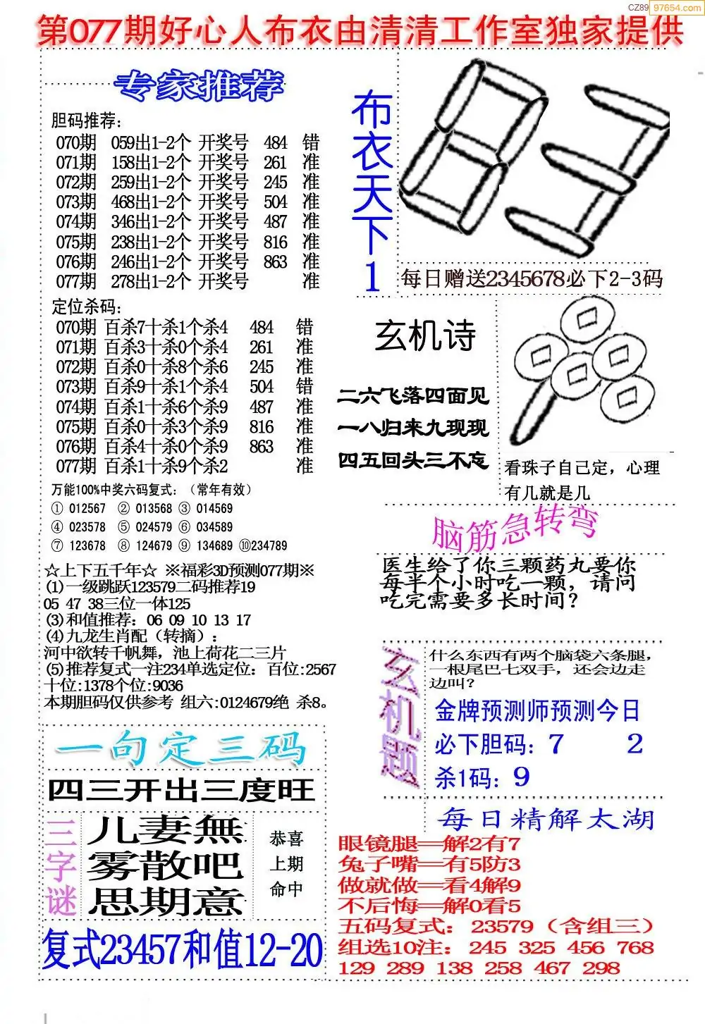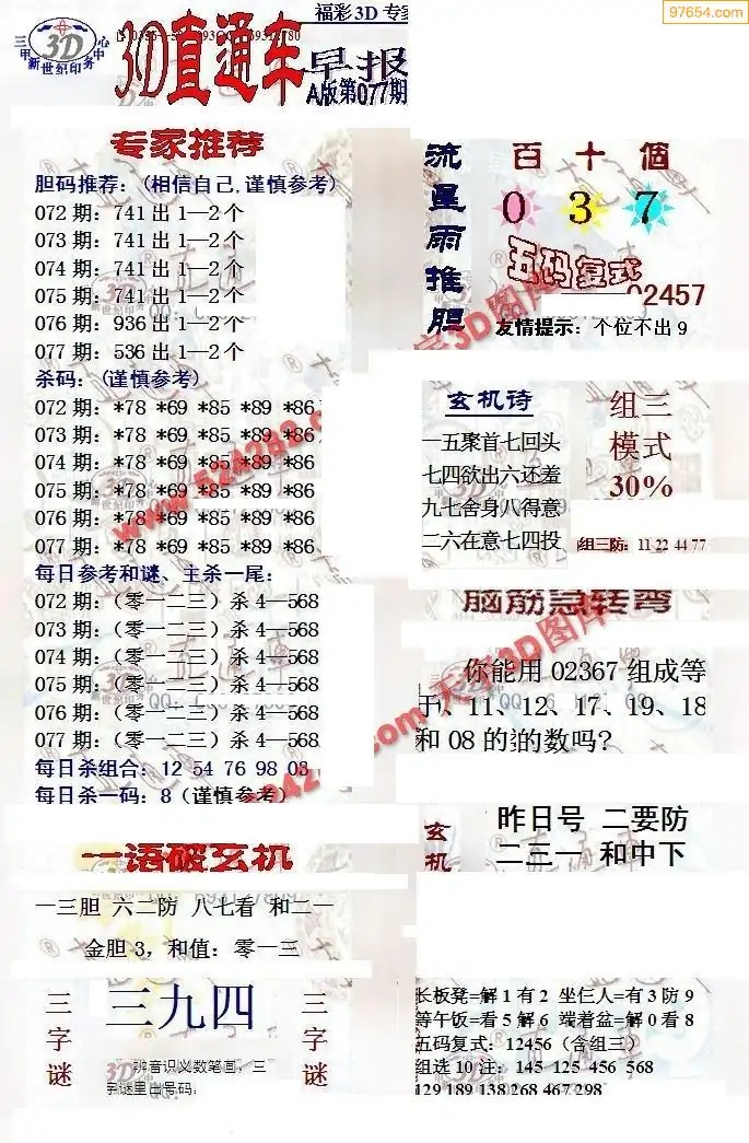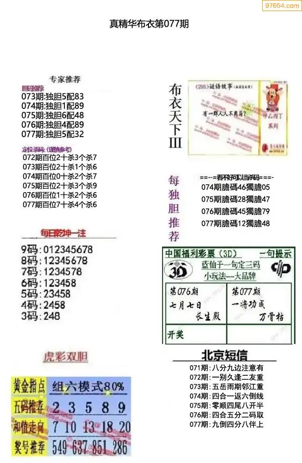 (8)26年077期今日3d各类彩报汇总