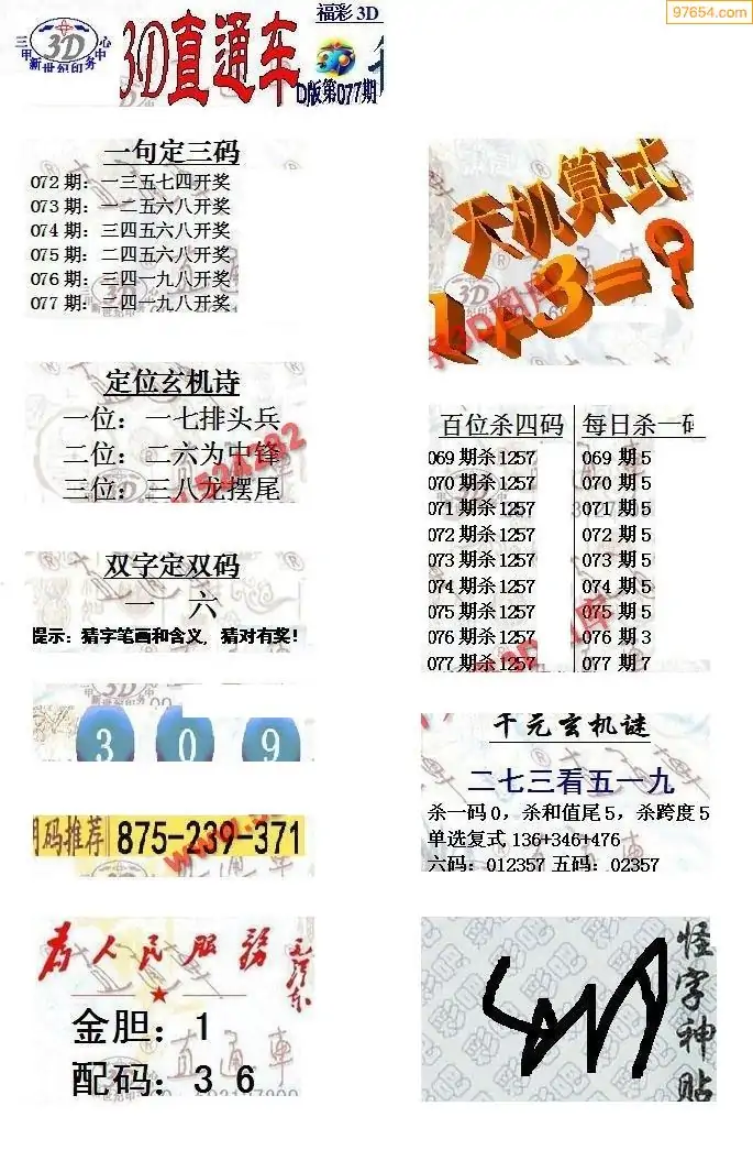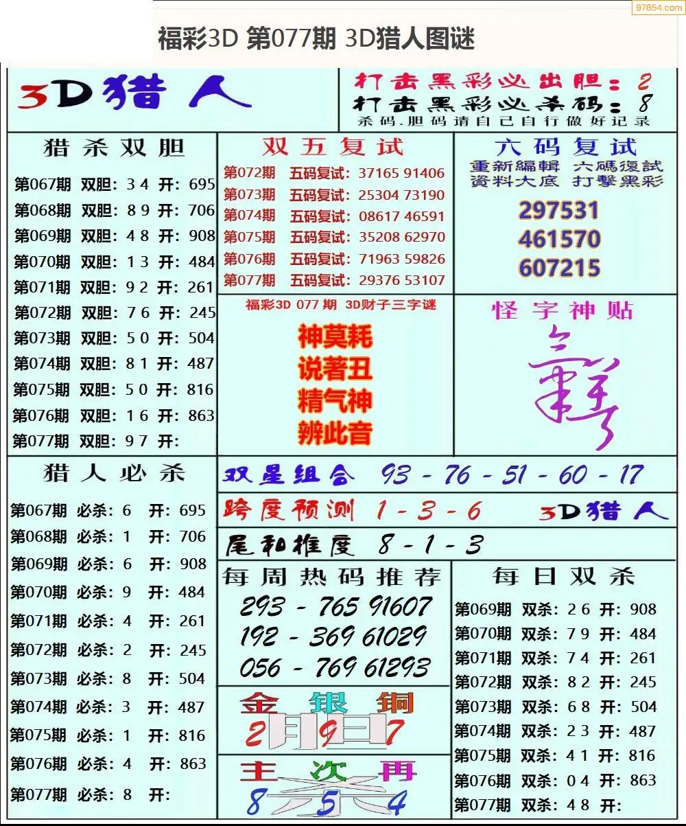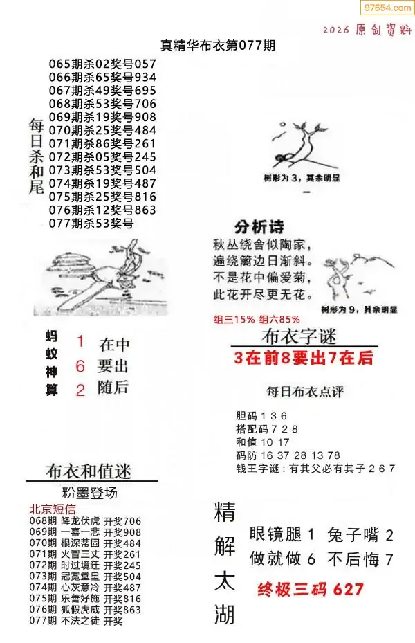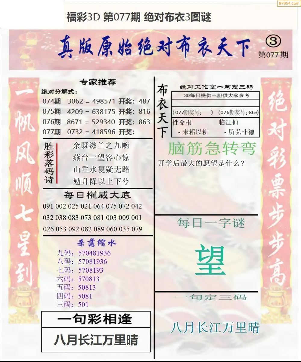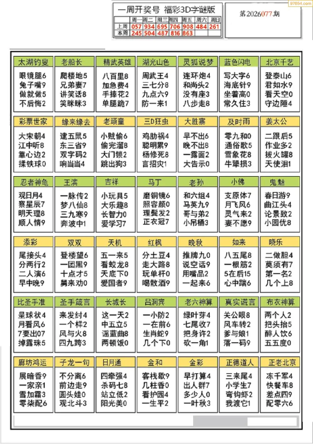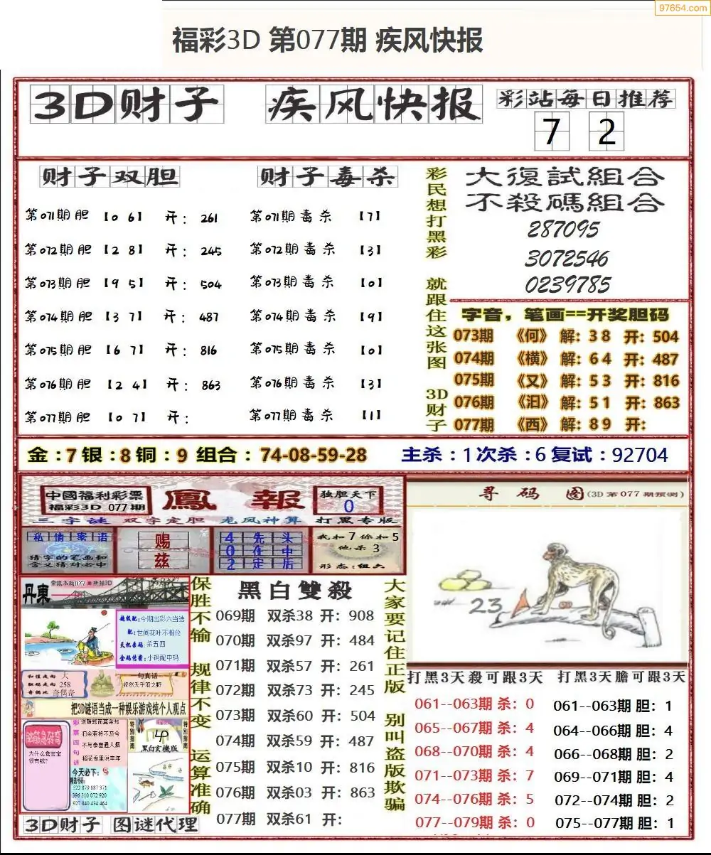 (8)26年077期今日3d各类彩报汇总