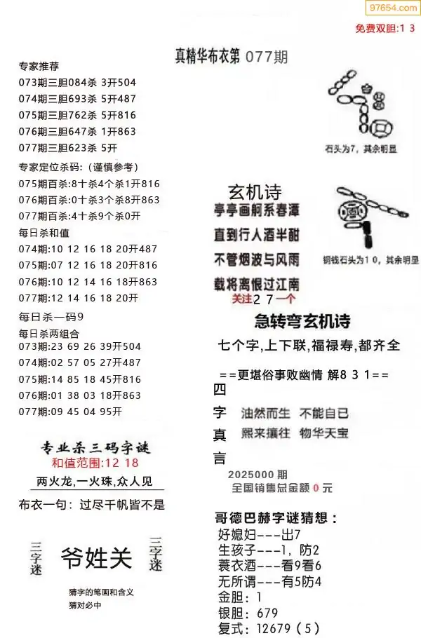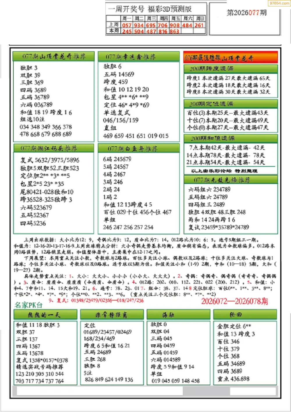 (9)26年077期当期全站杀号定胆图