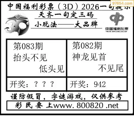 (8)26年083期今日3d各类彩报汇总
