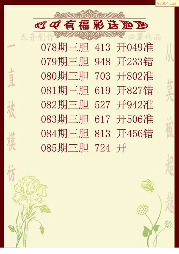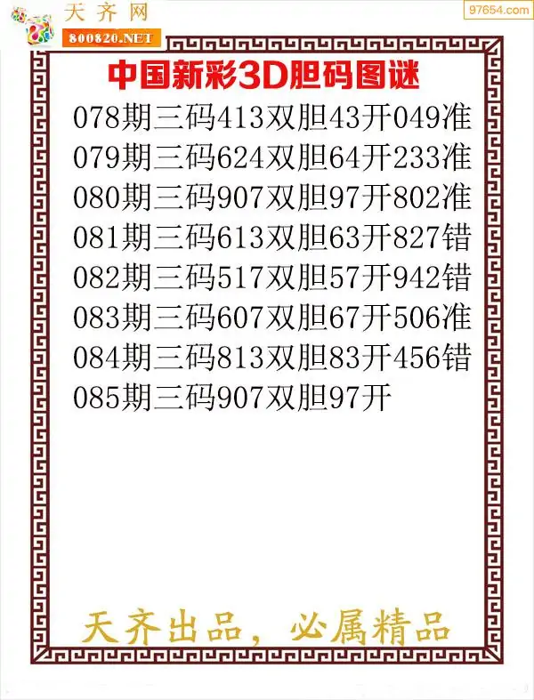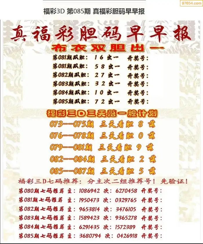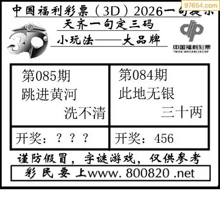 (8)26年085期今日3d各类彩报汇总