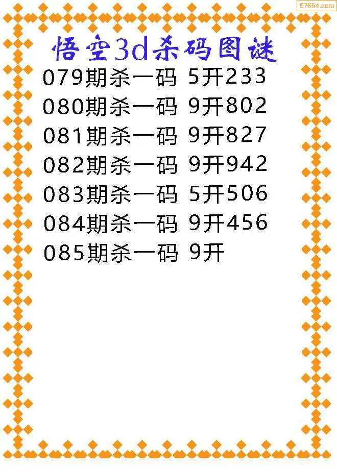 (9)26年085期当期全站杀号定胆图