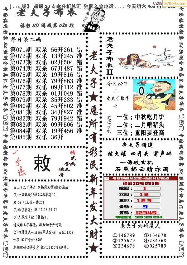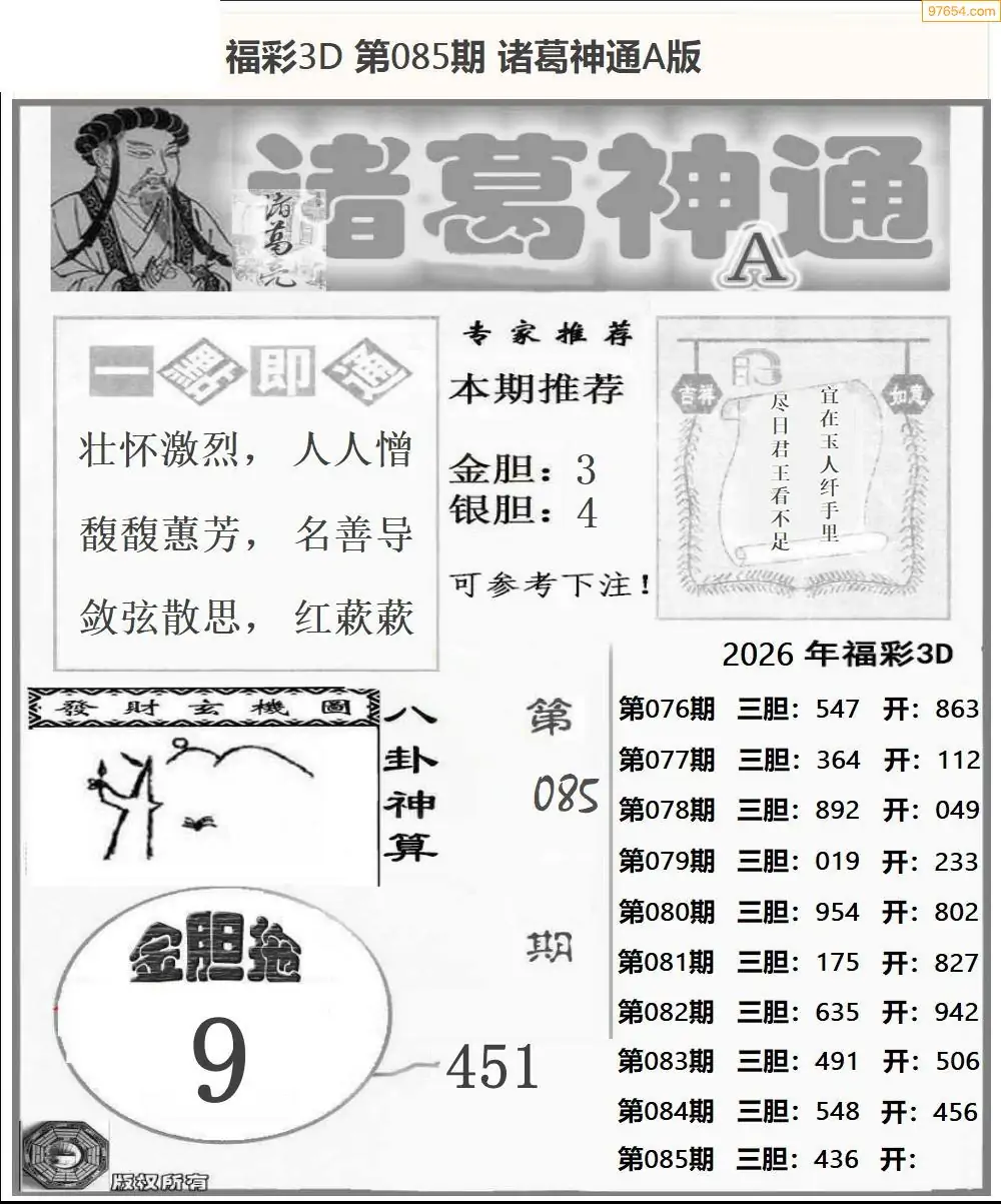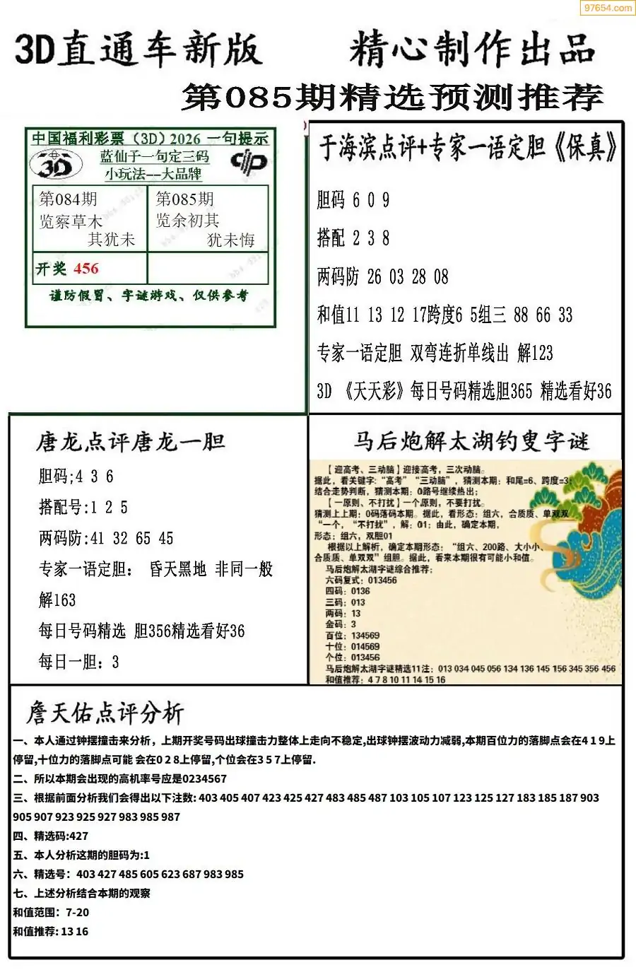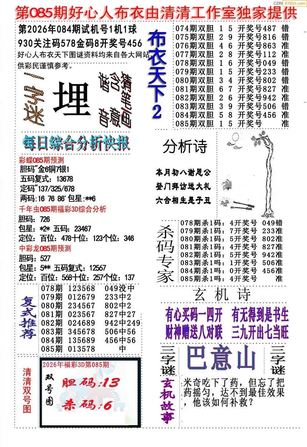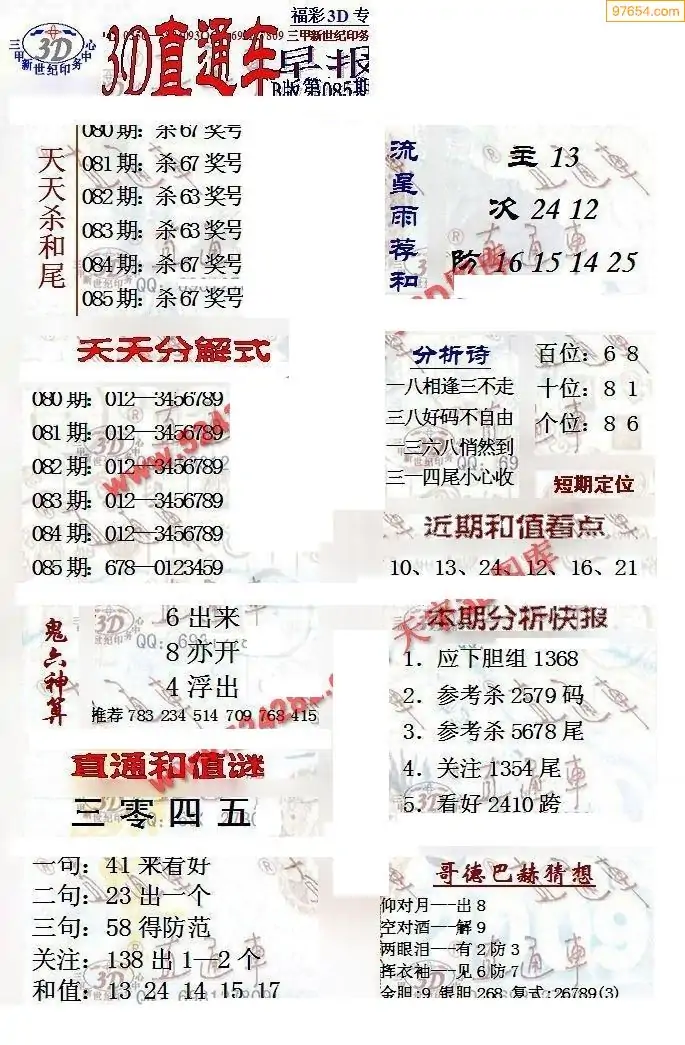 (8)26年085期今日3d各类彩报汇总
