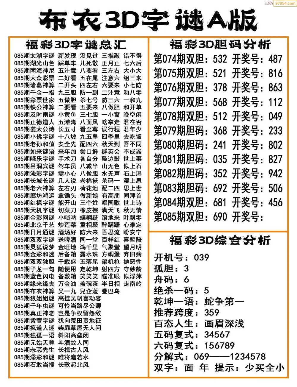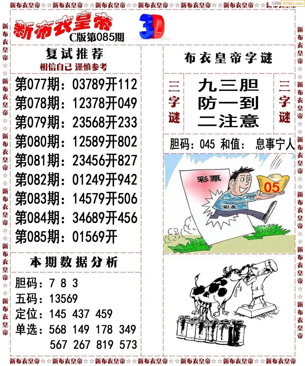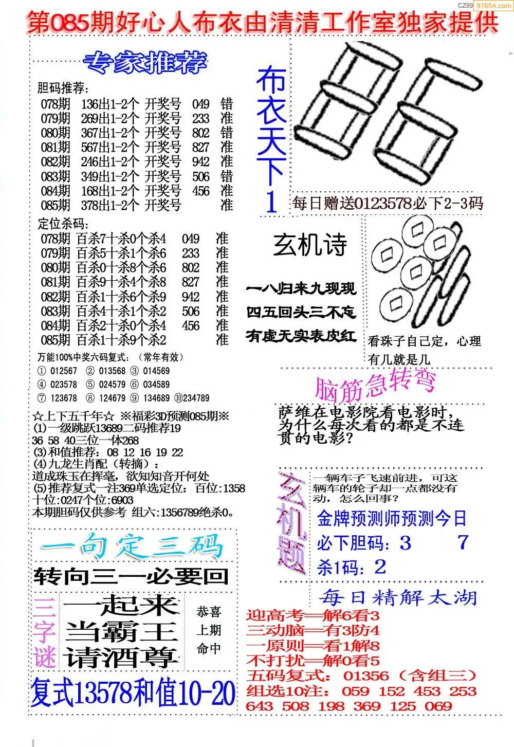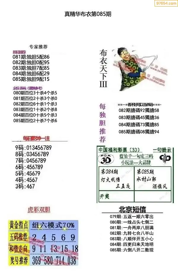 (8)26年085期今日3d各类彩报汇总