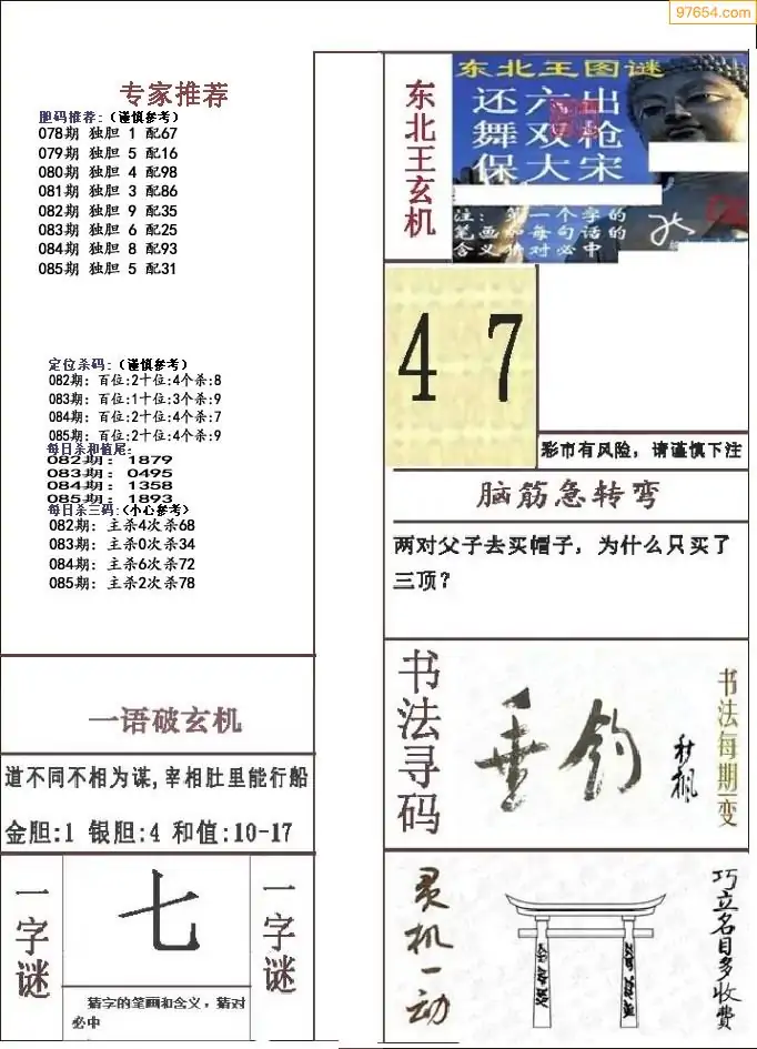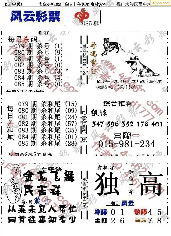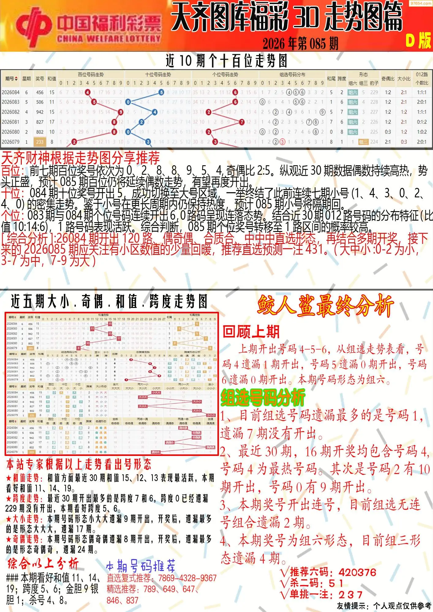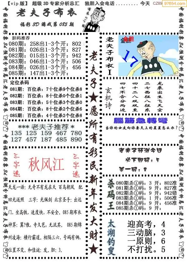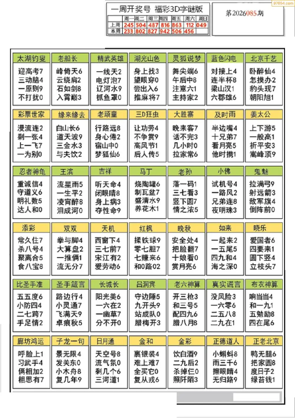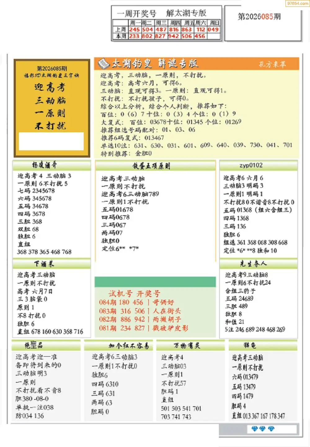 (8)26年085期今日3d各类彩报汇总
