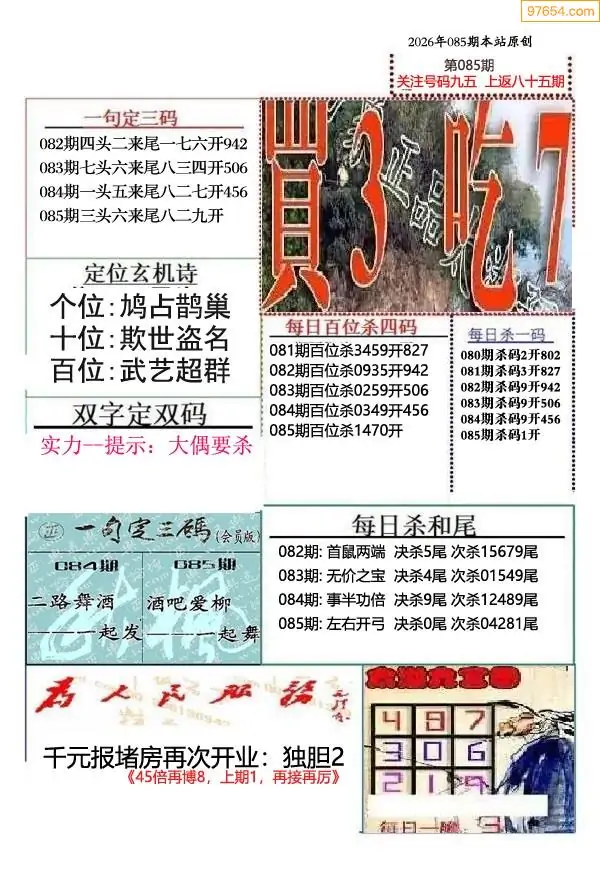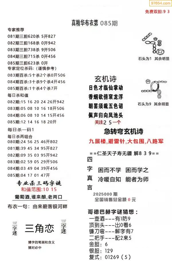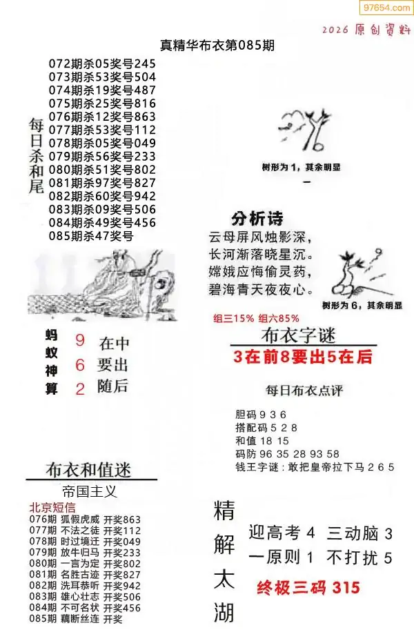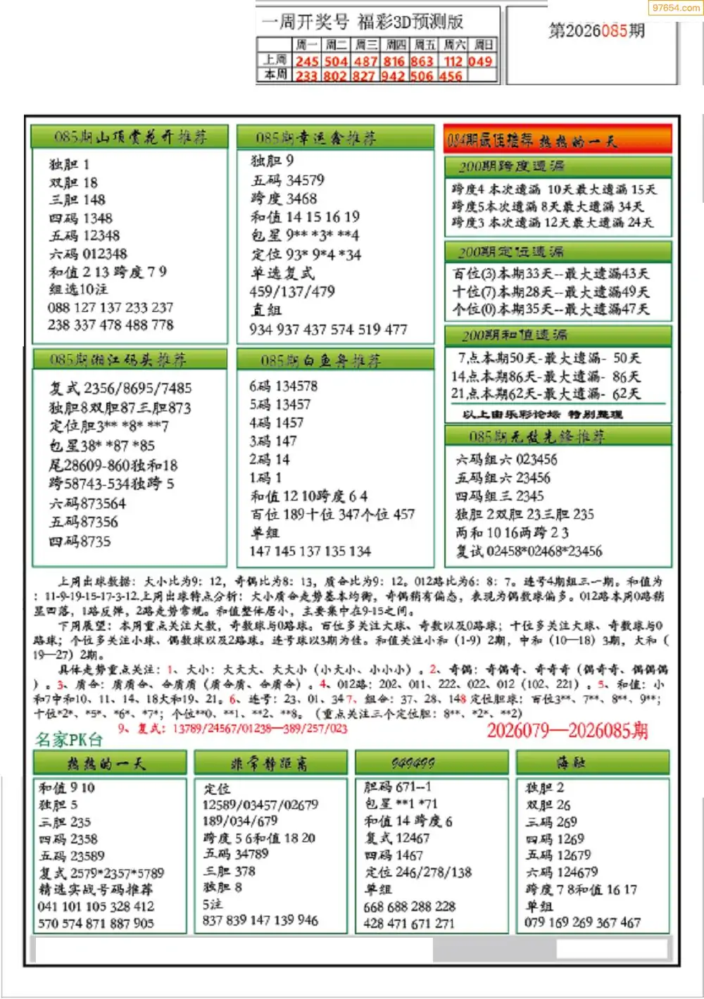 (9)26年085期当期全站杀号定胆图
