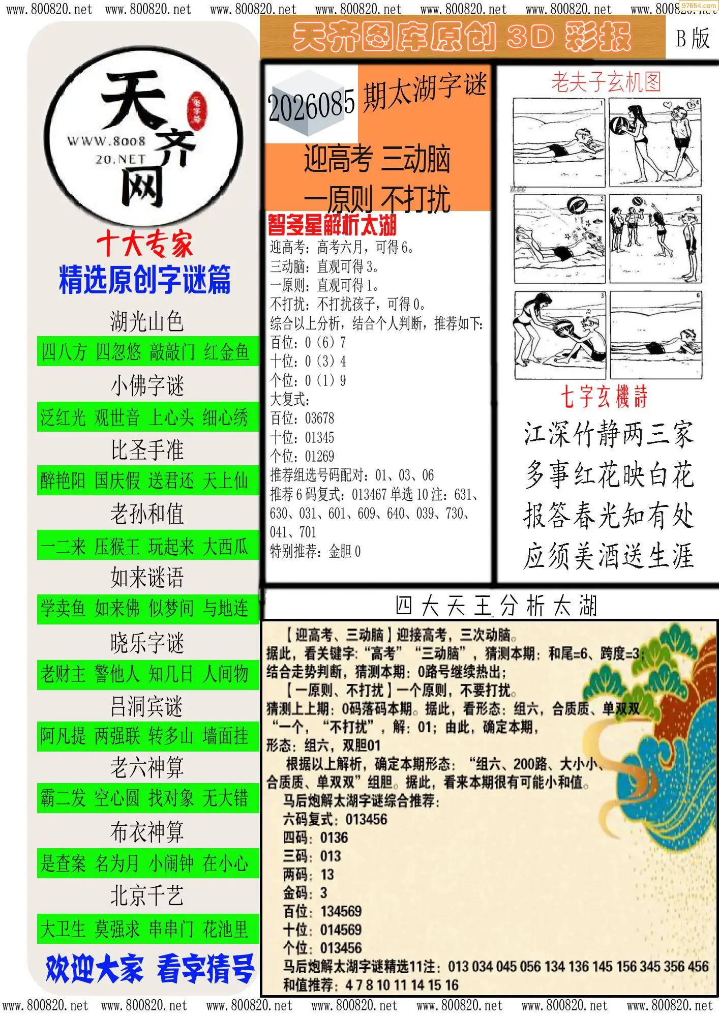 (7)26085期3D太湖图库图谜汇总