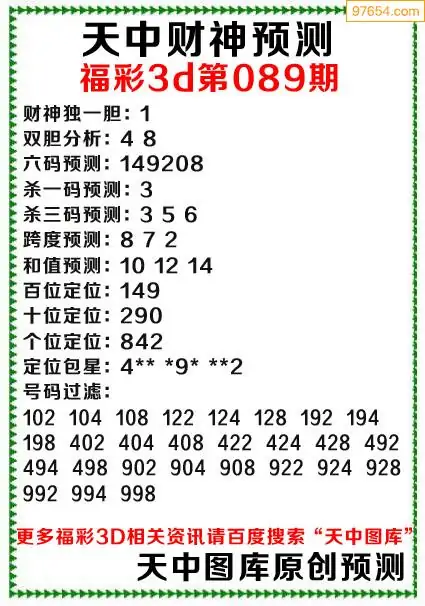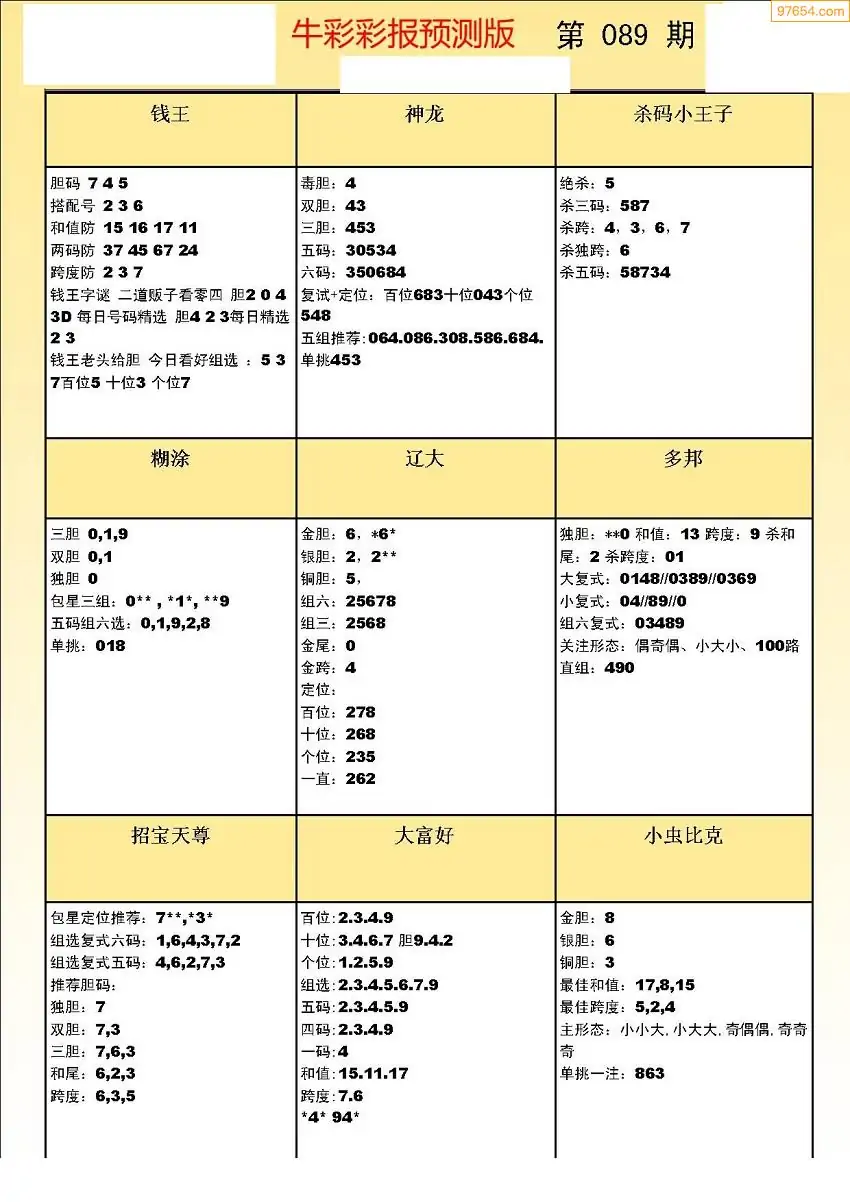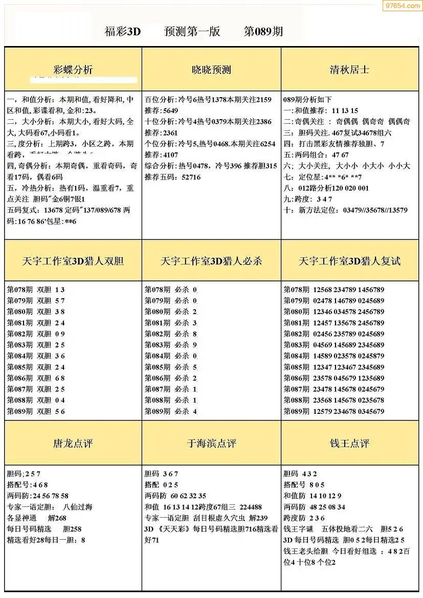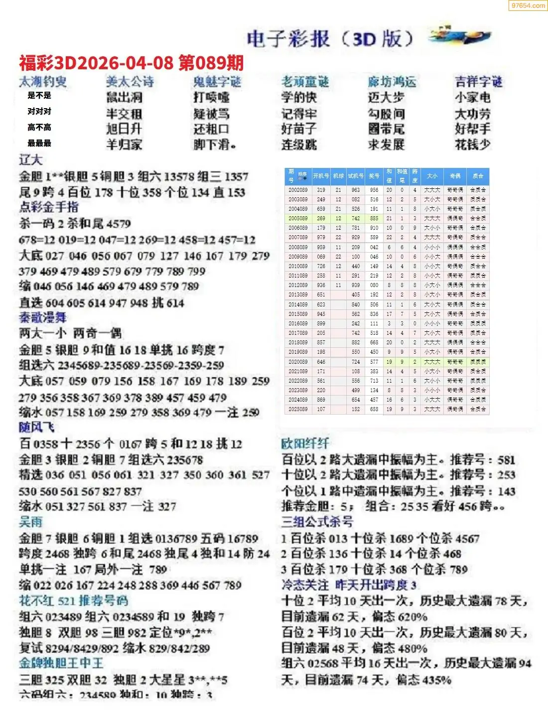 (8)26年089期今日3d各类彩报汇总