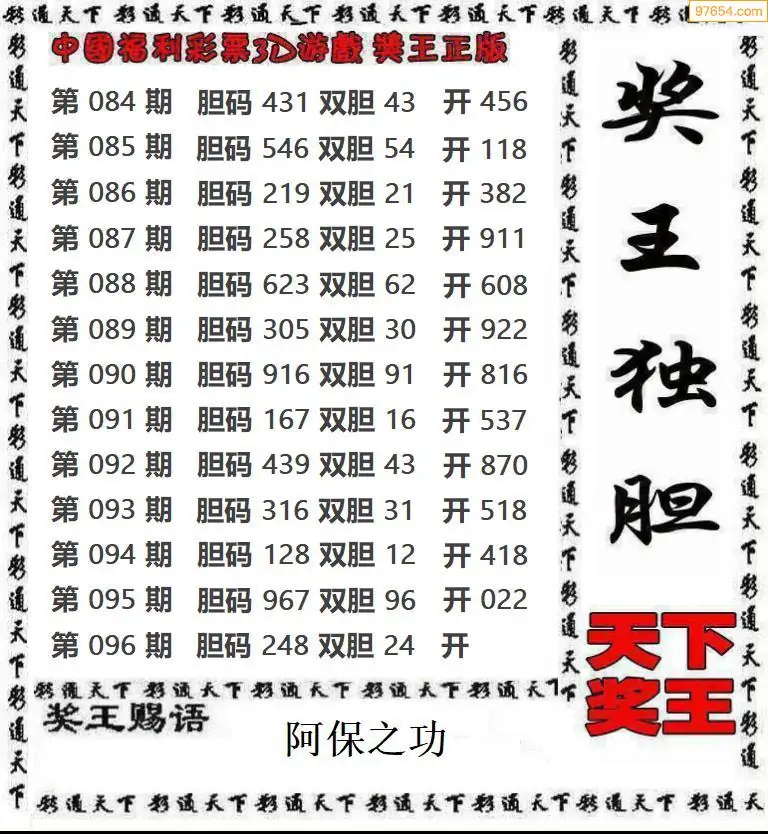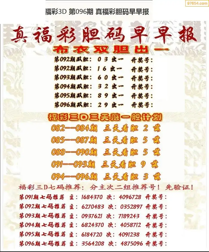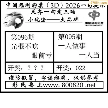 (8)26年096期今日3d各类彩报汇总