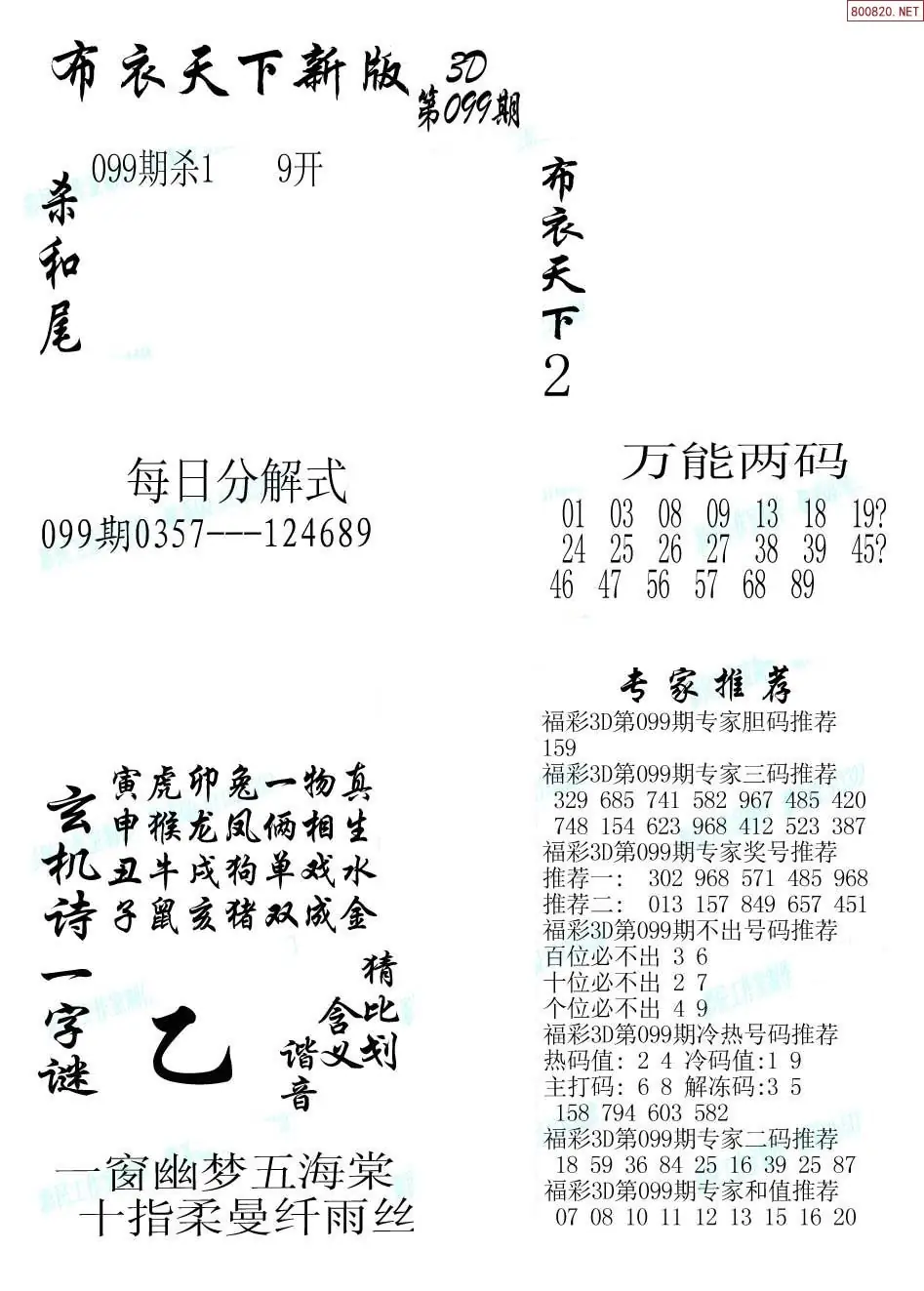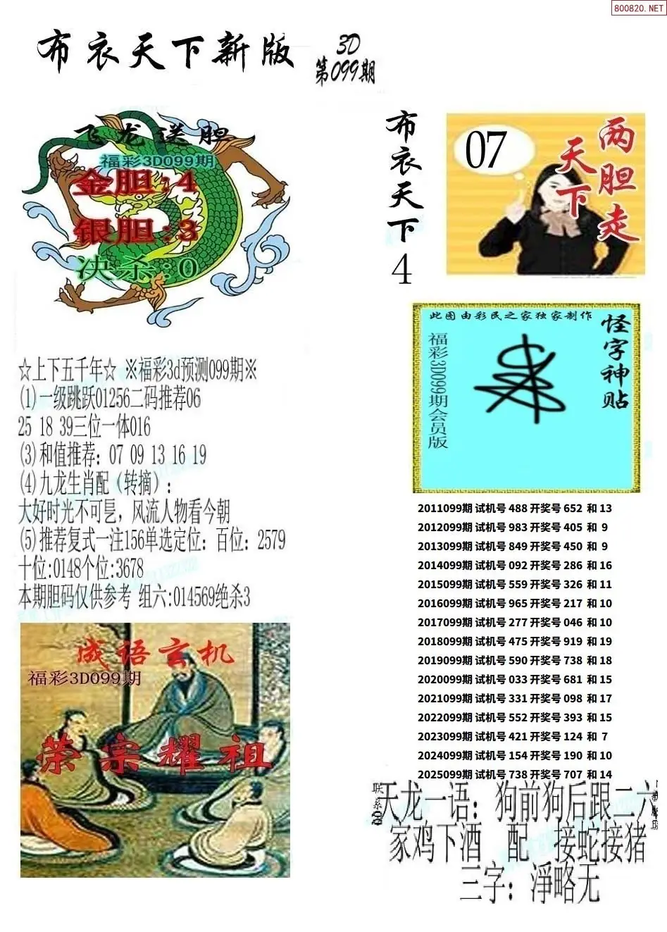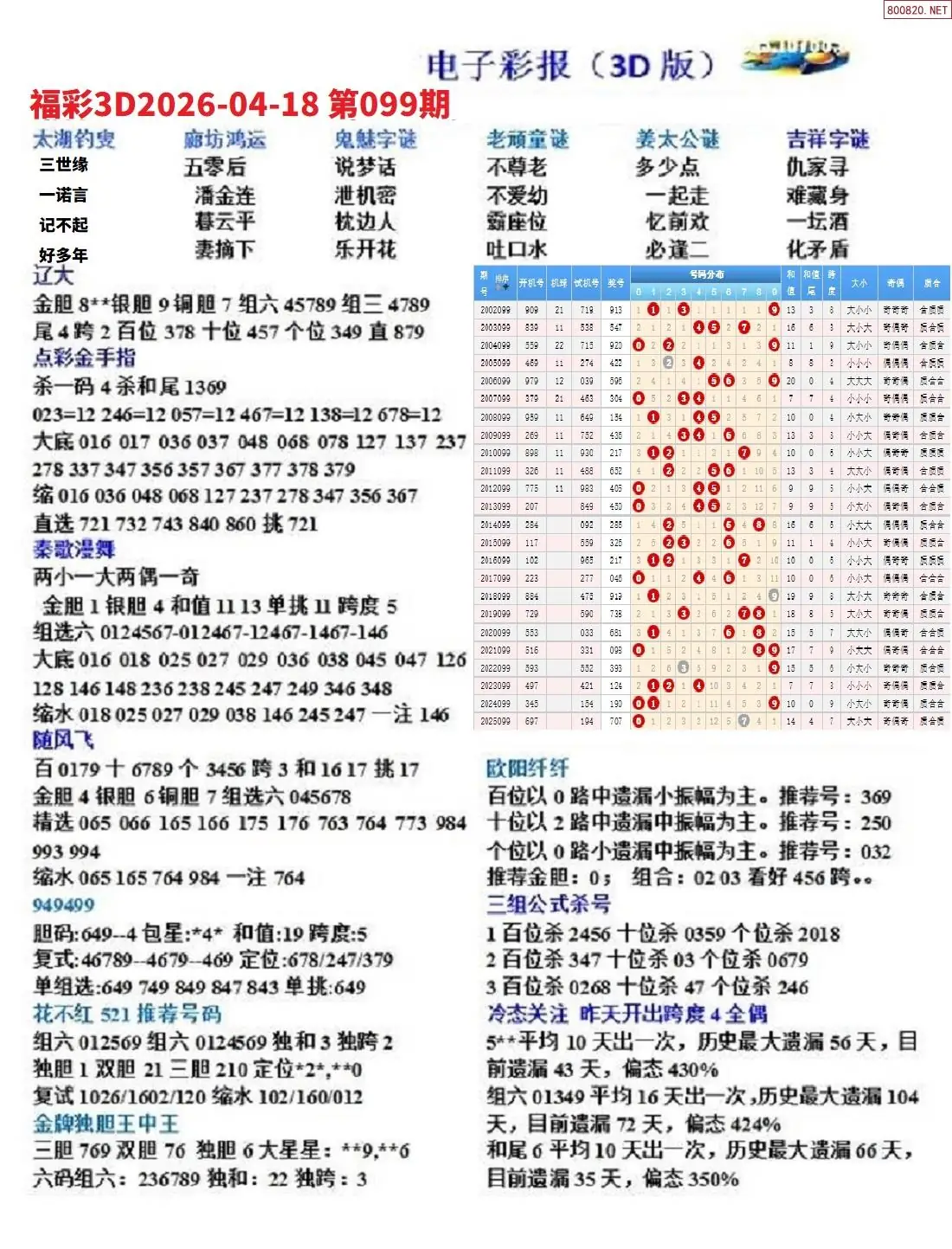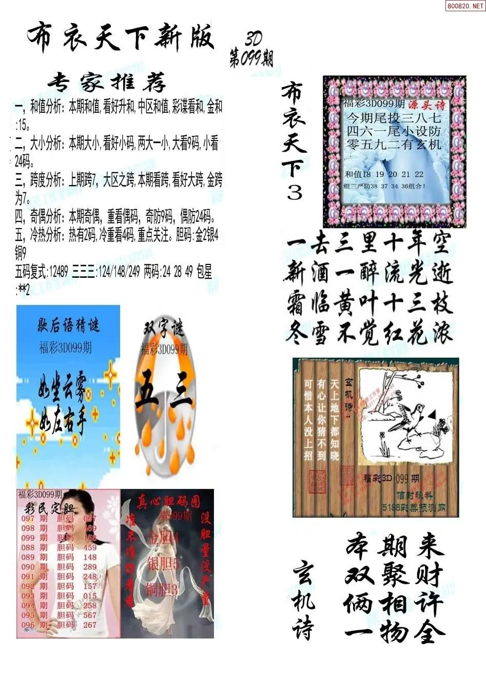 (8)26年099期今日3d各类彩报汇总