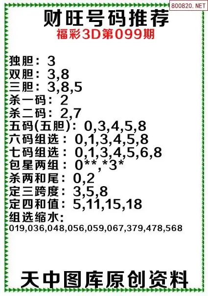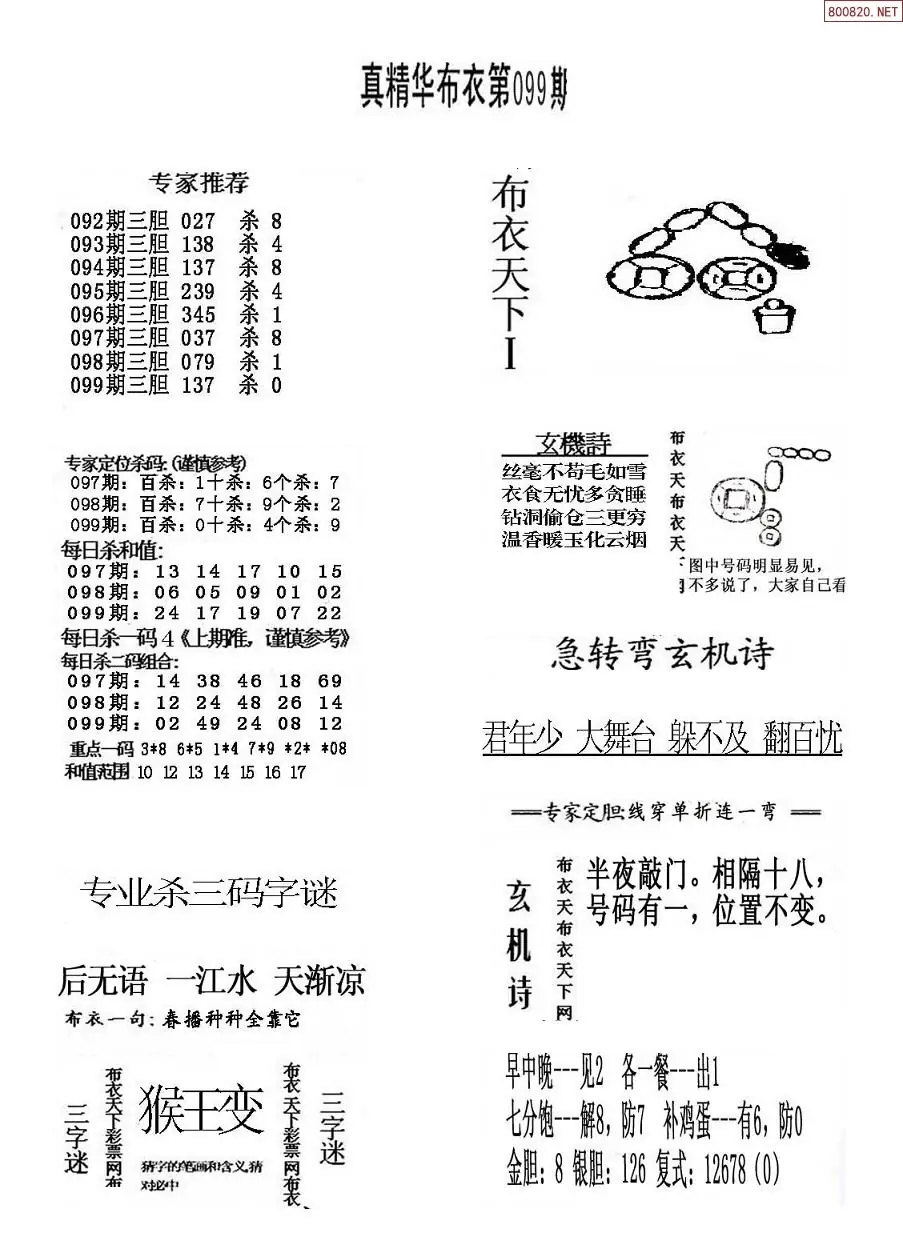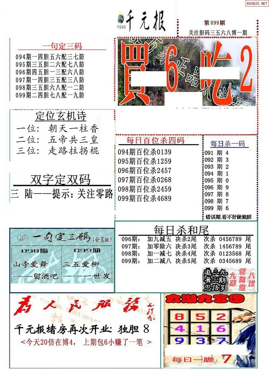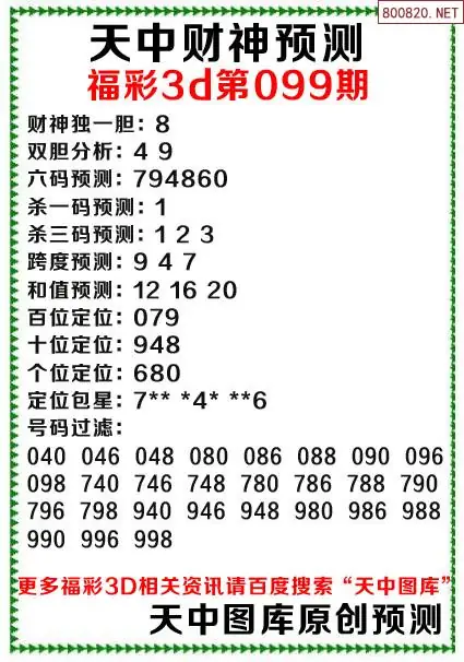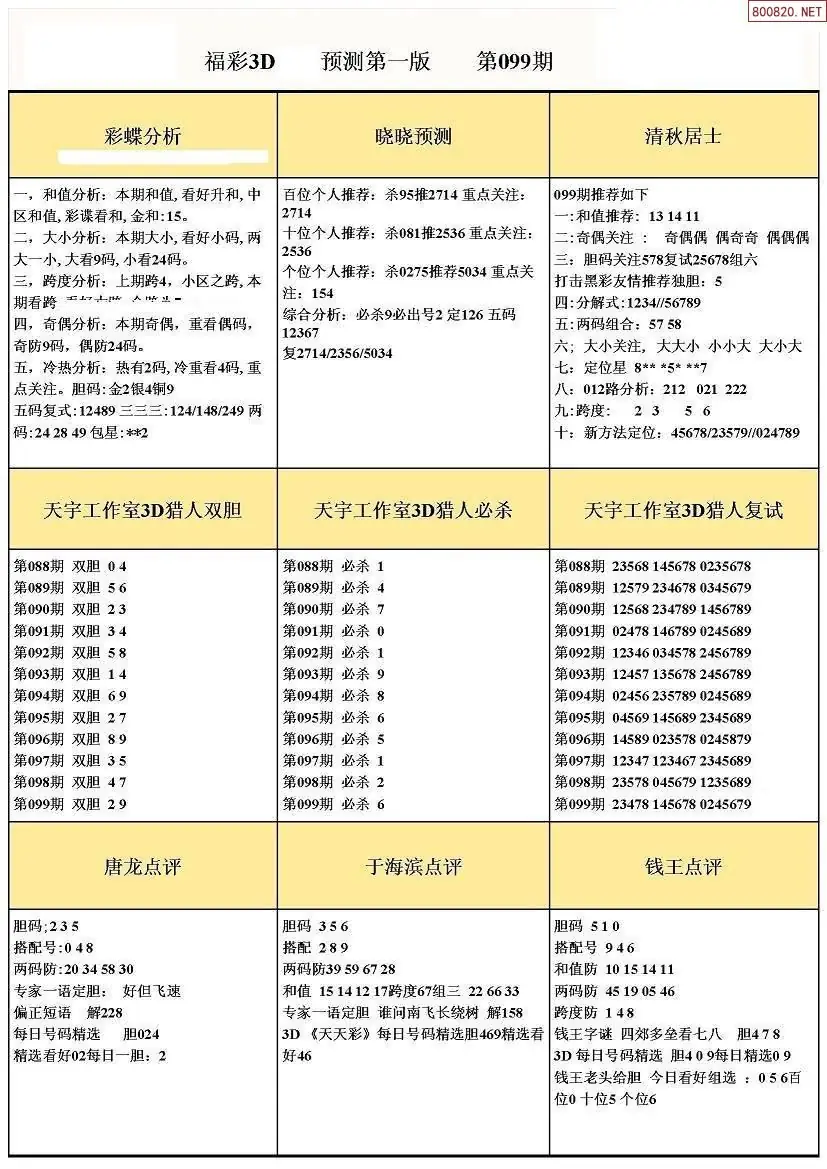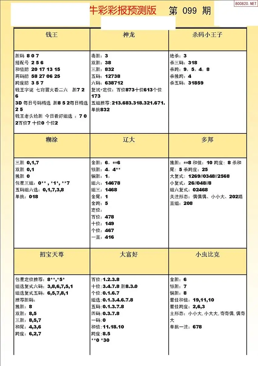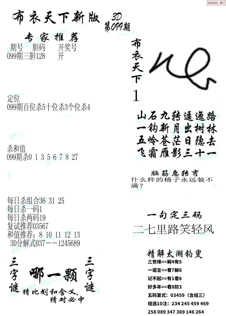 (8)26年099期今日3d各类彩报汇总