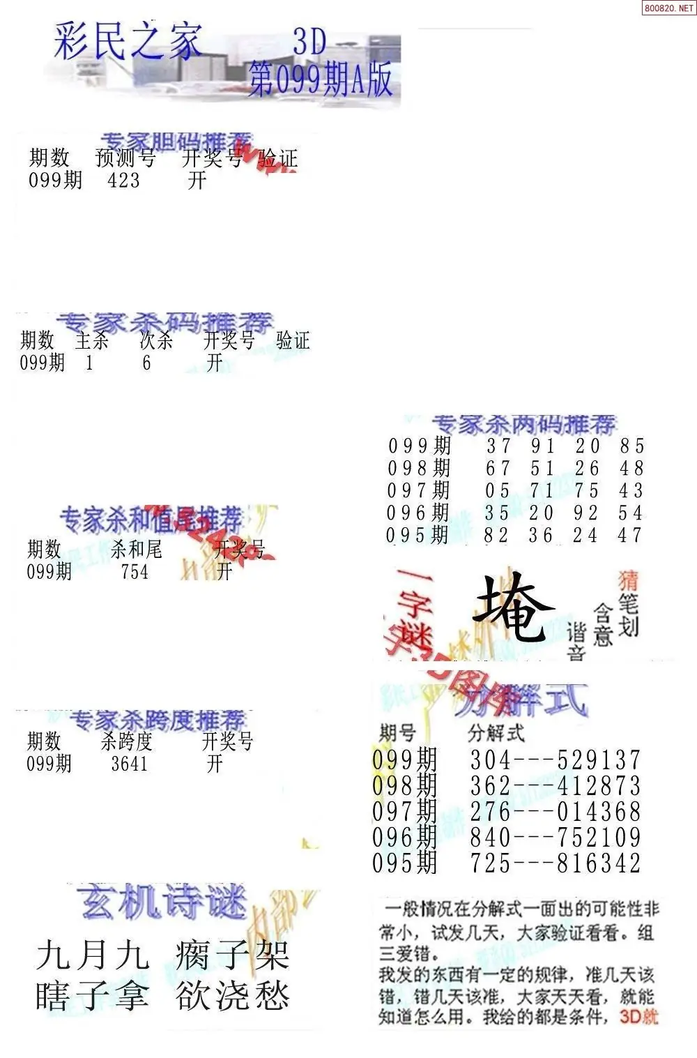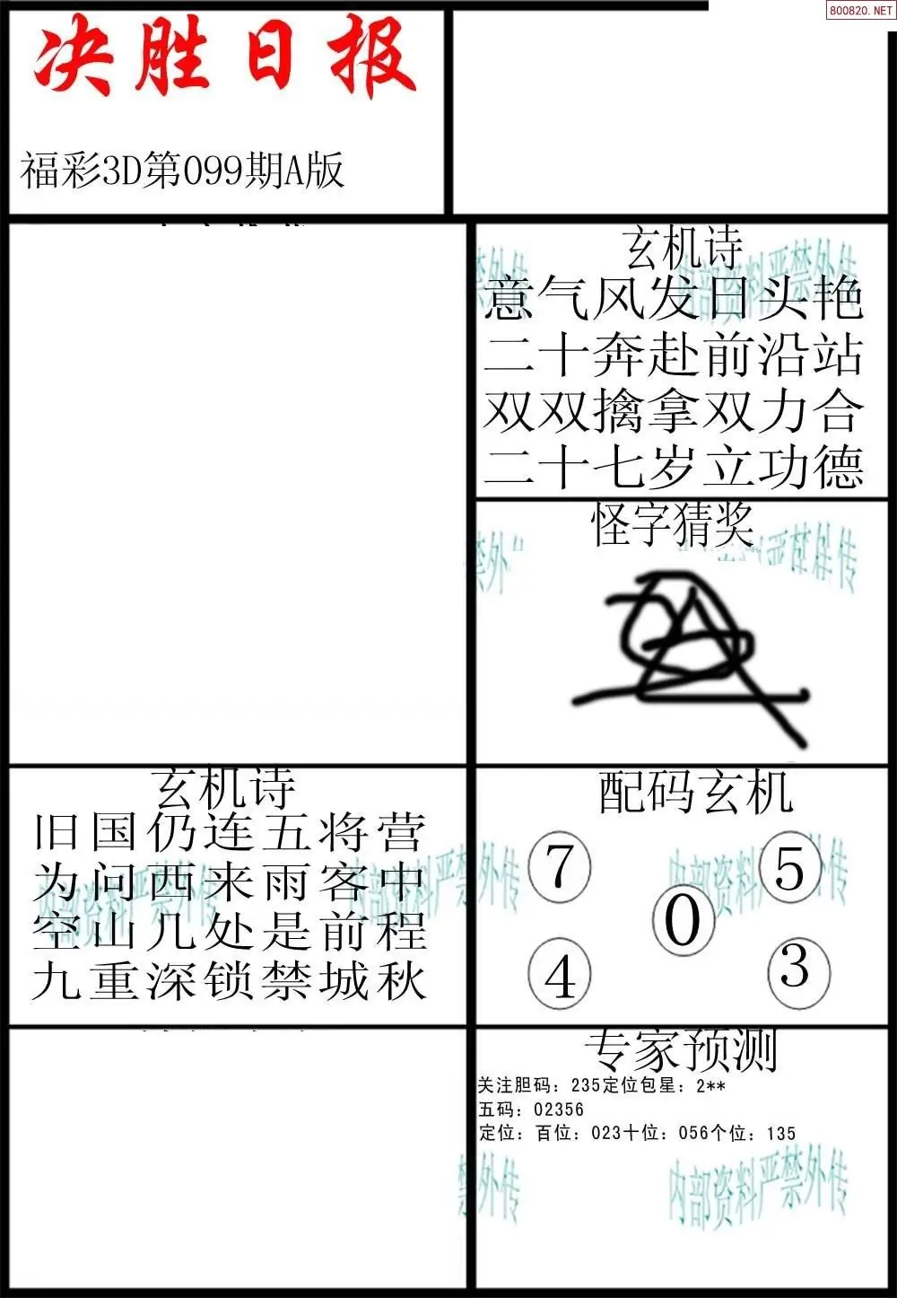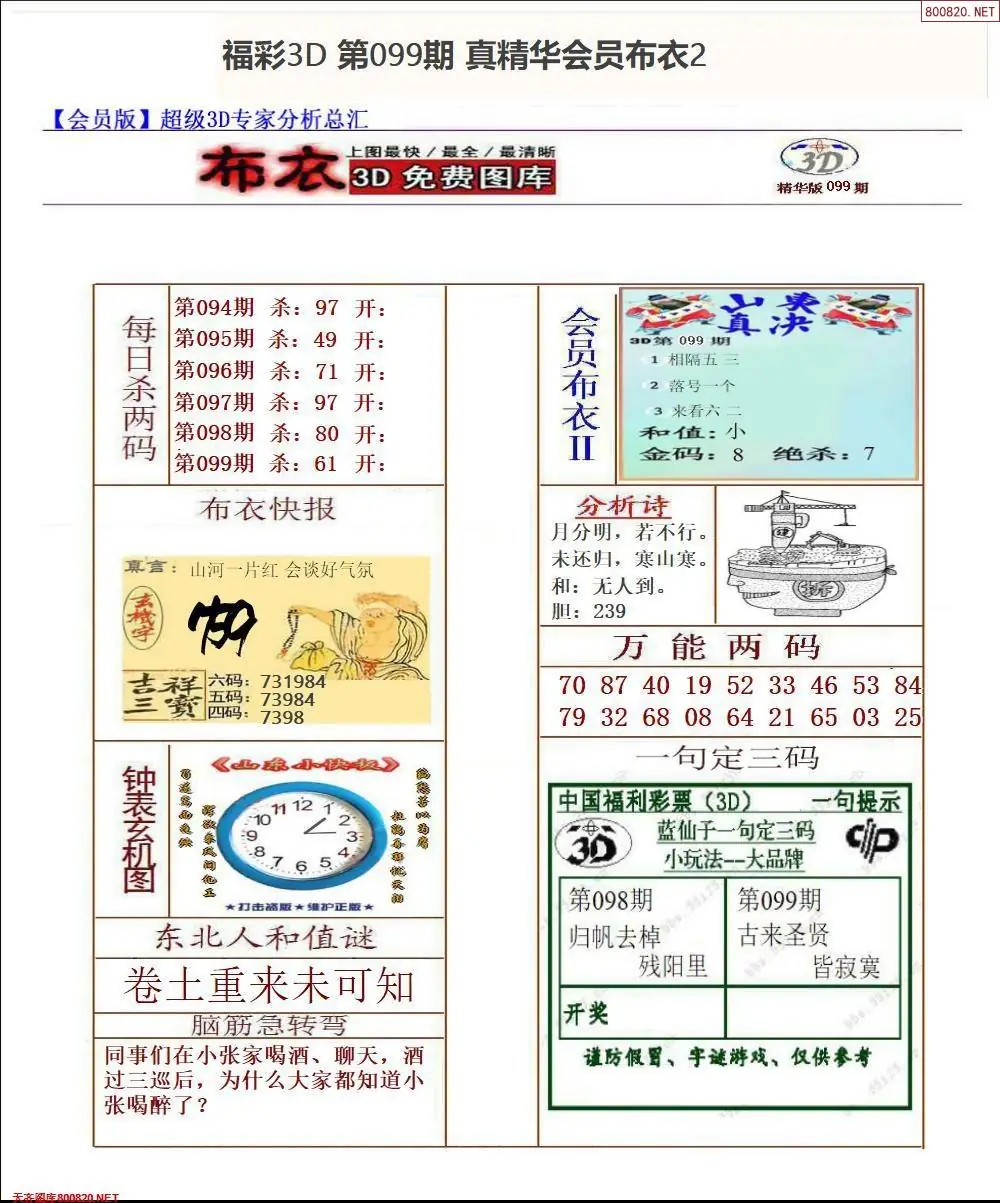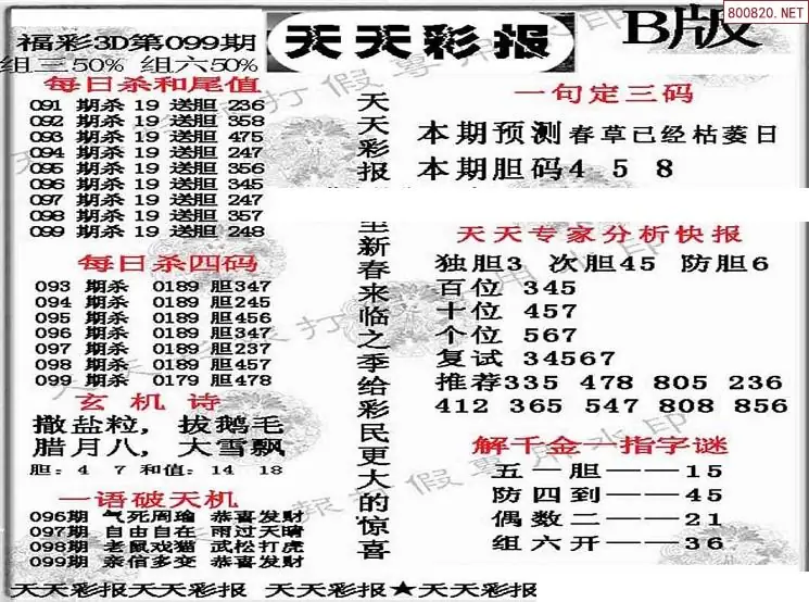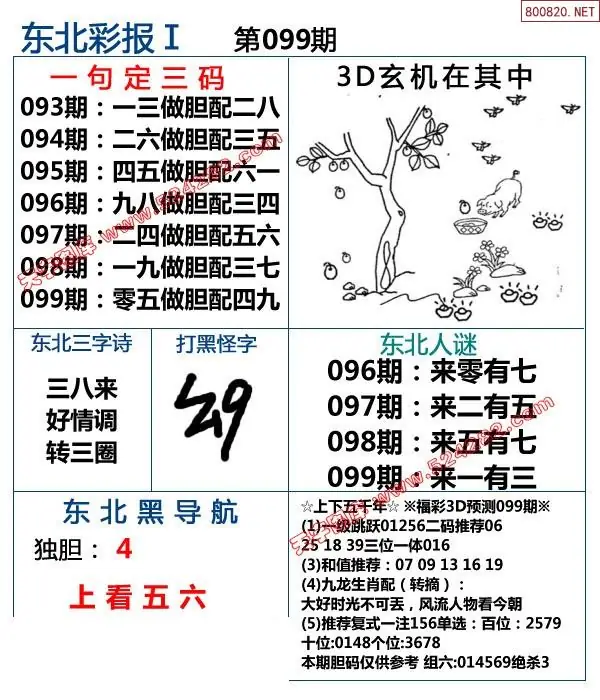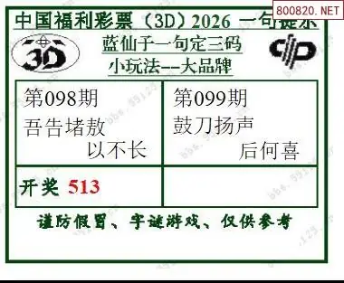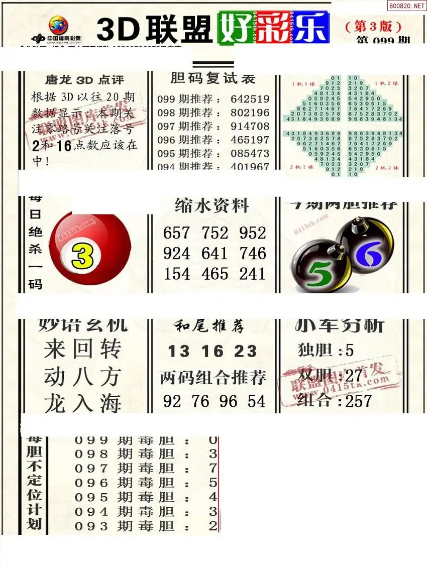 (8)26年099期今日3d各类彩报汇总